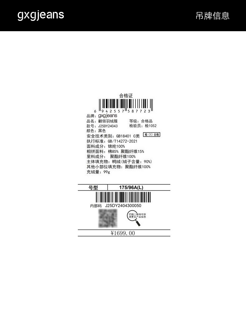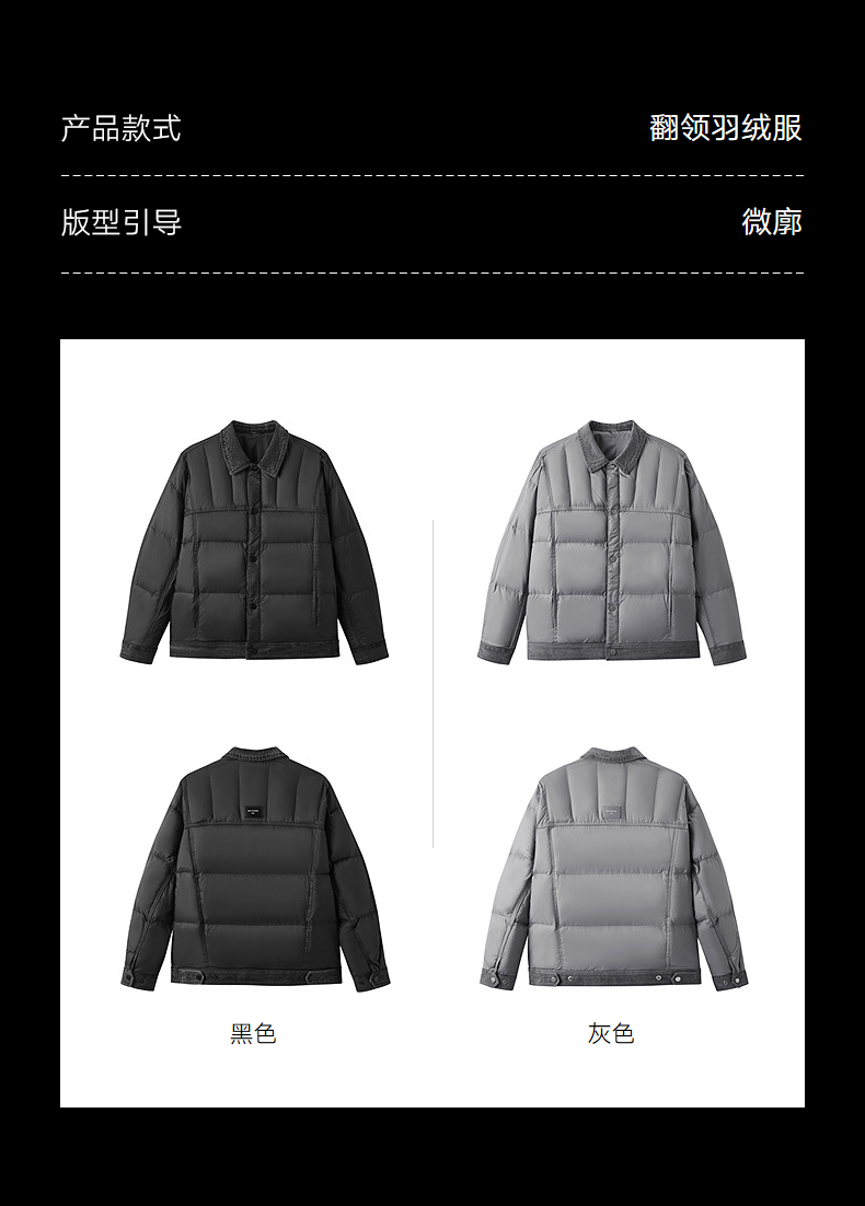 gxg.jeans男装 多色牛仔拼接保暖翻领羽绒服外套 25年冬新品
