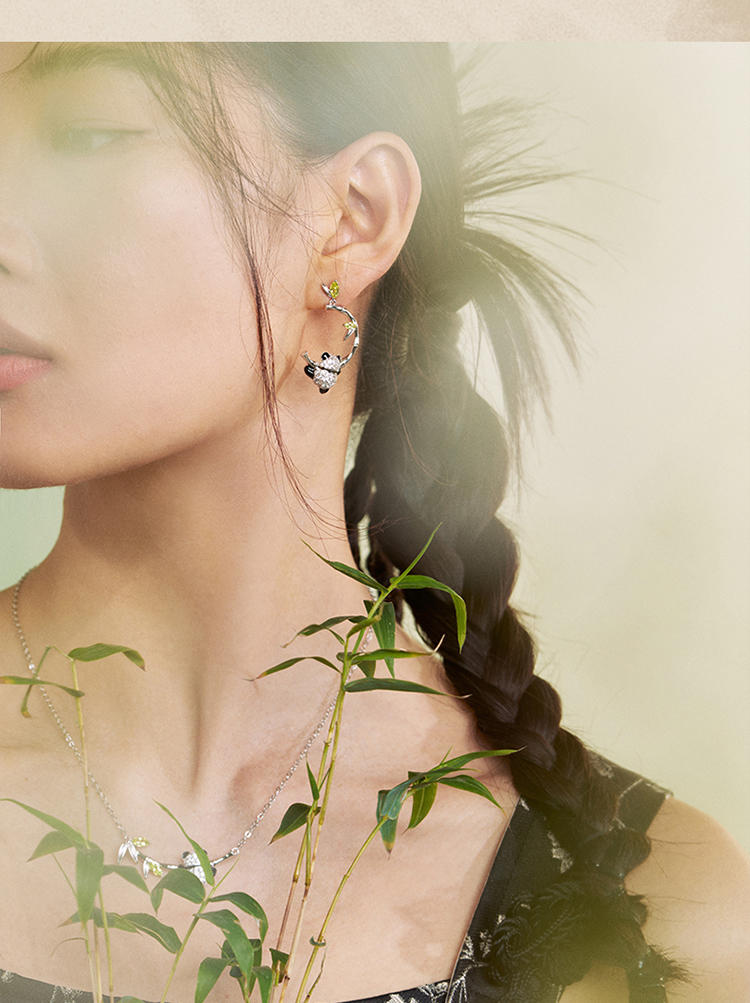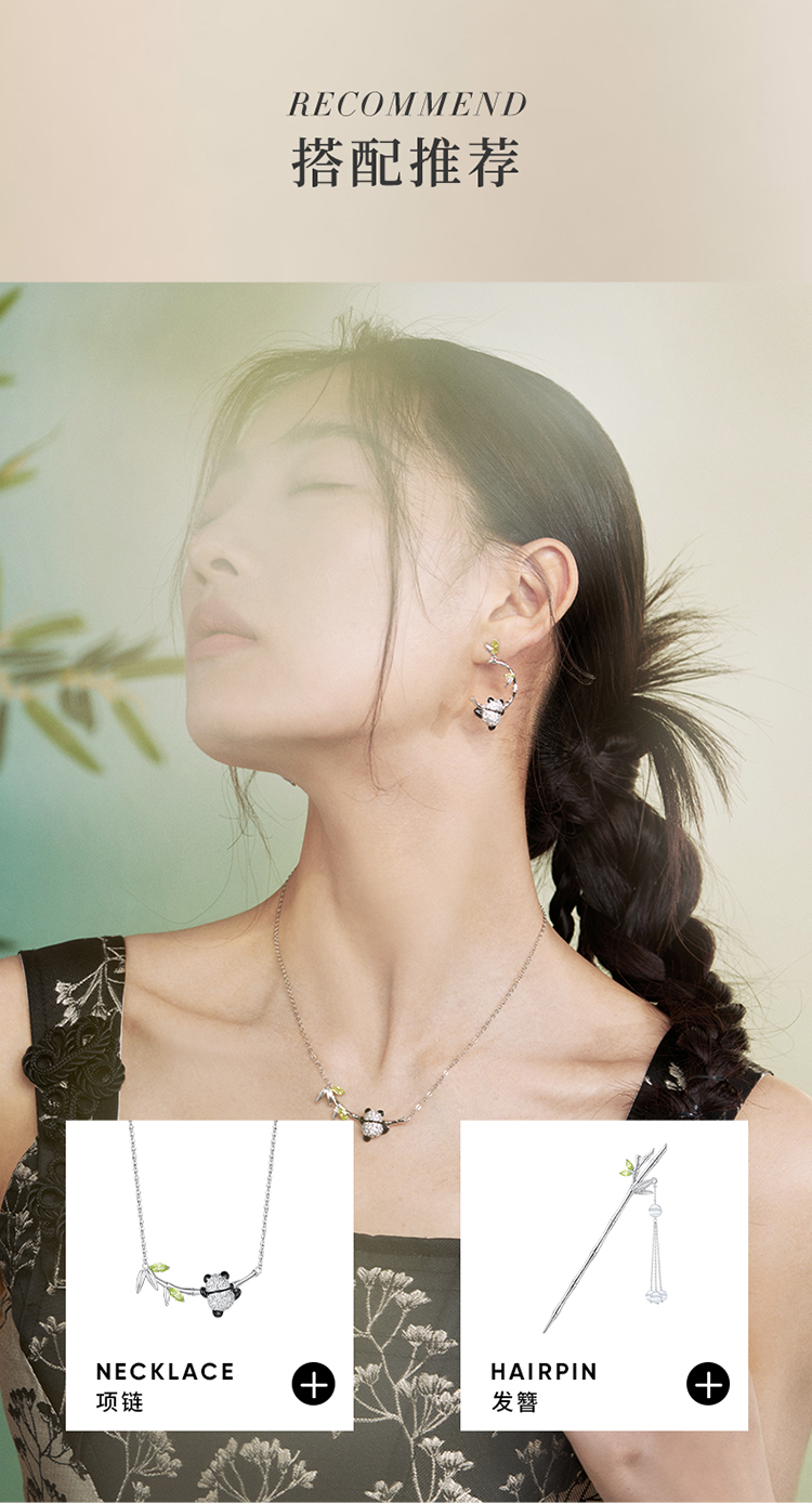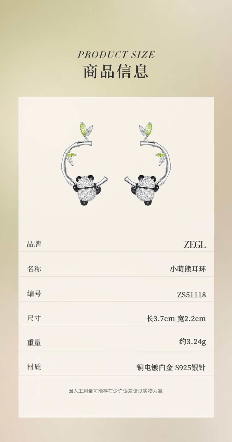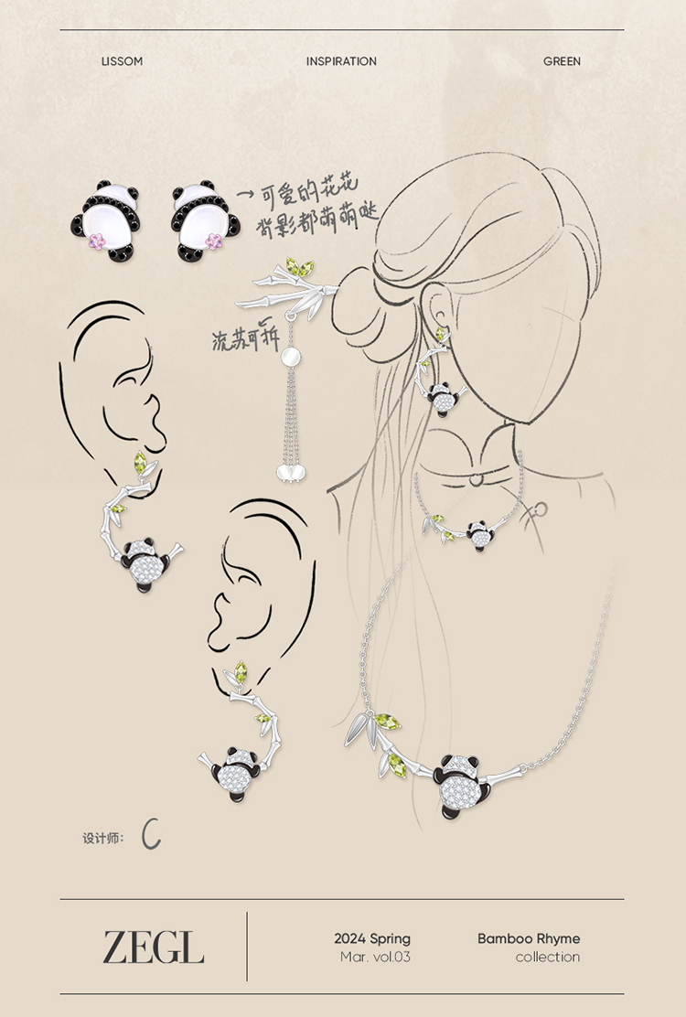 ZEGL设计师竹韵系列小熊猫竹节耳环女2024新款爆款耳钉竹子耳饰品