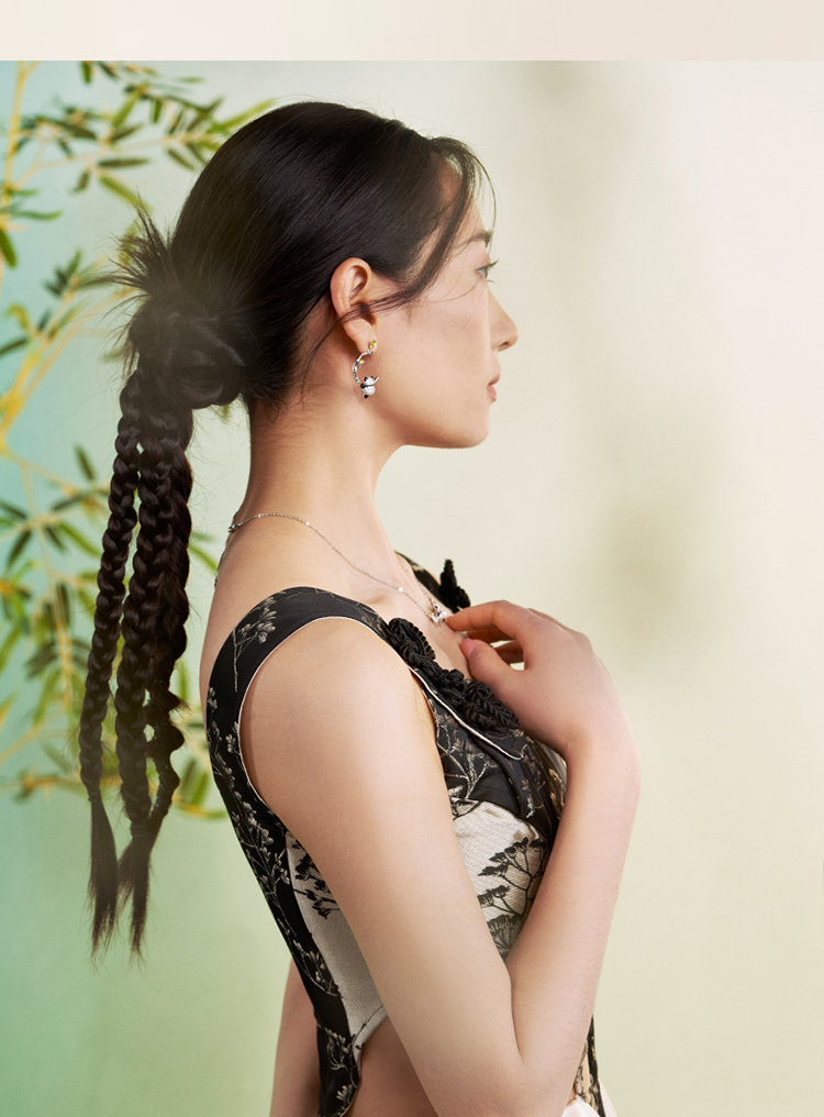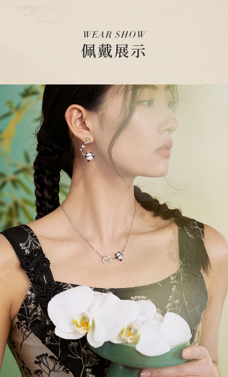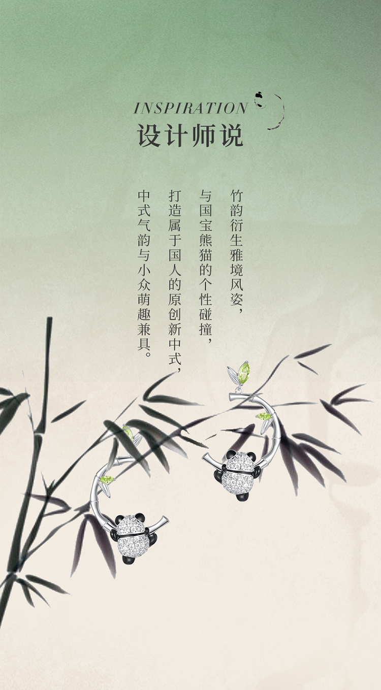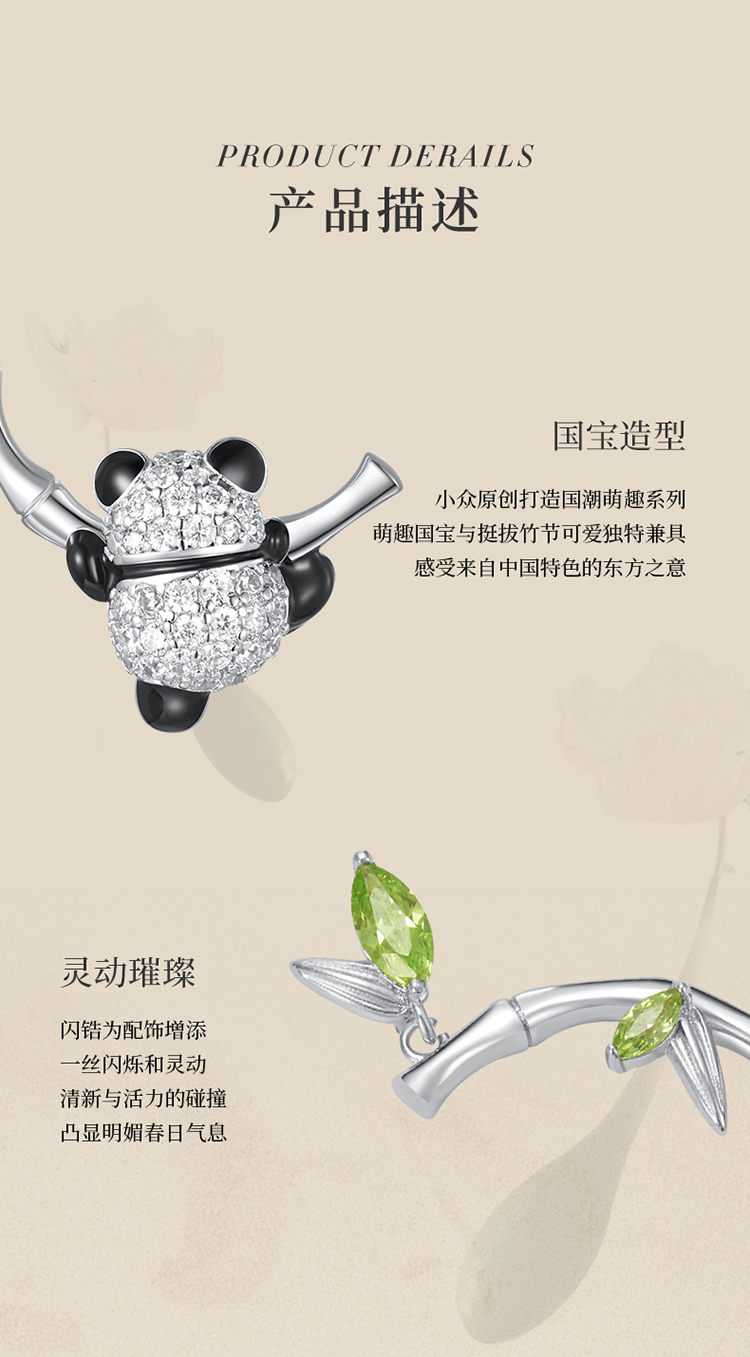 ZEGL设计师竹韵系列小熊猫竹节耳环女2024新款爆款耳钉竹子耳饰品