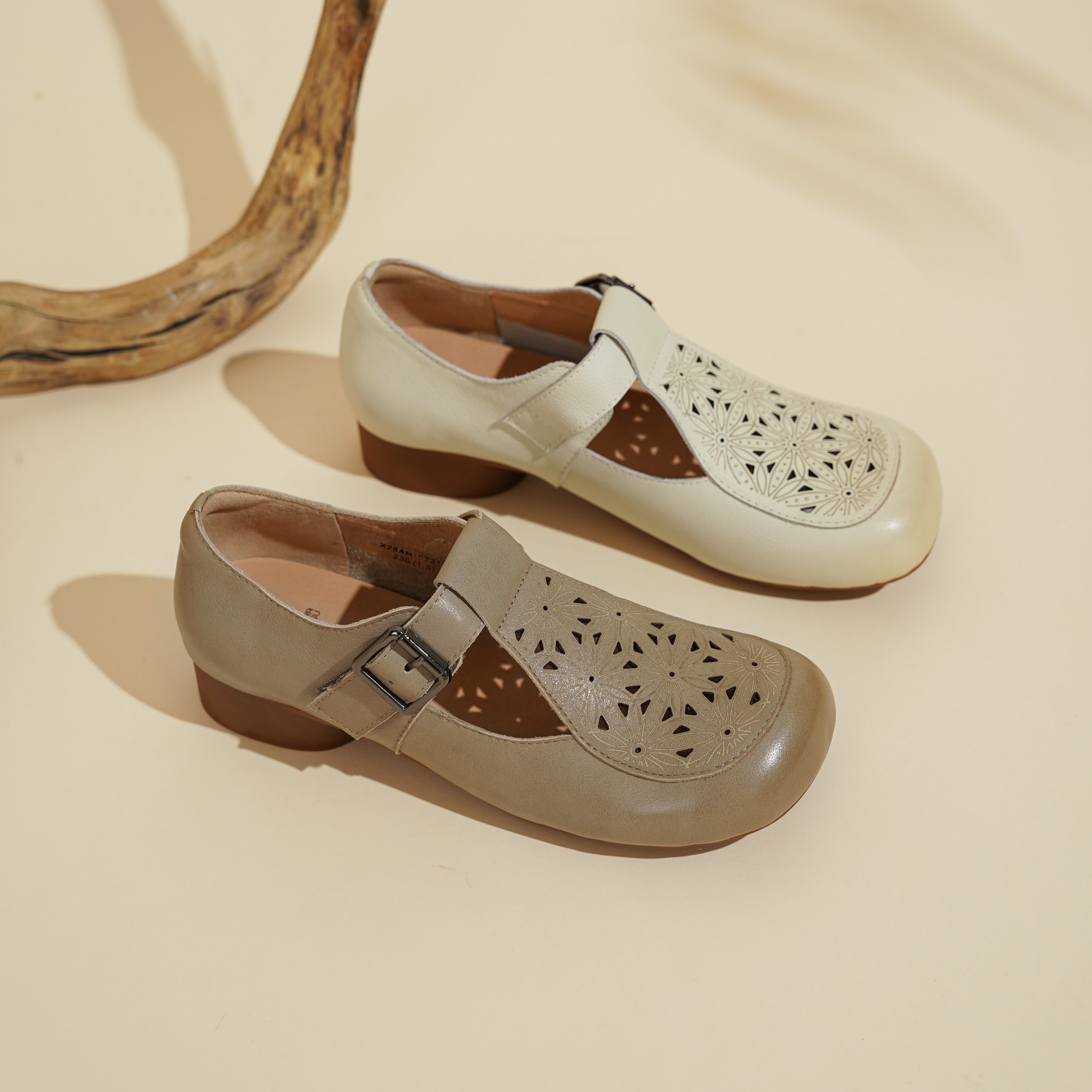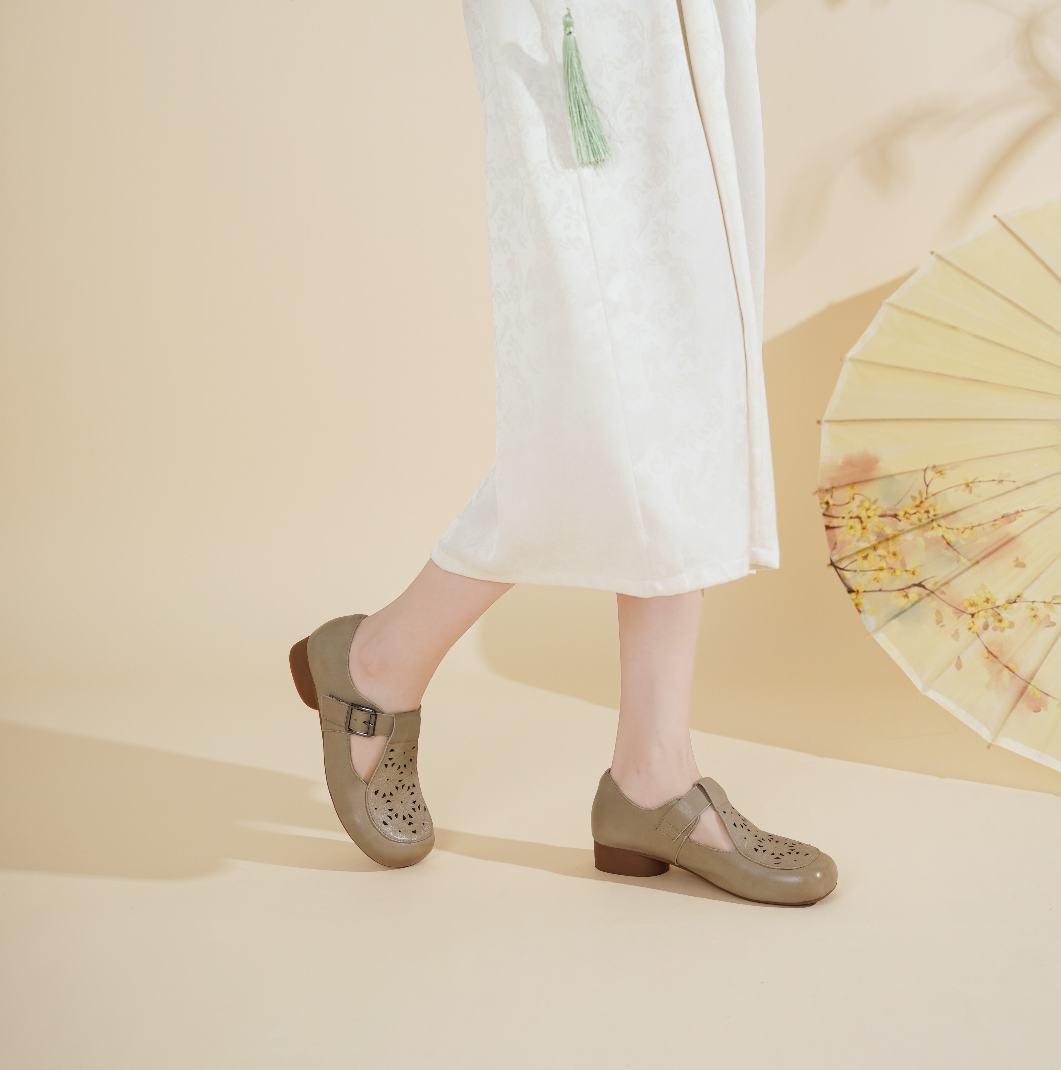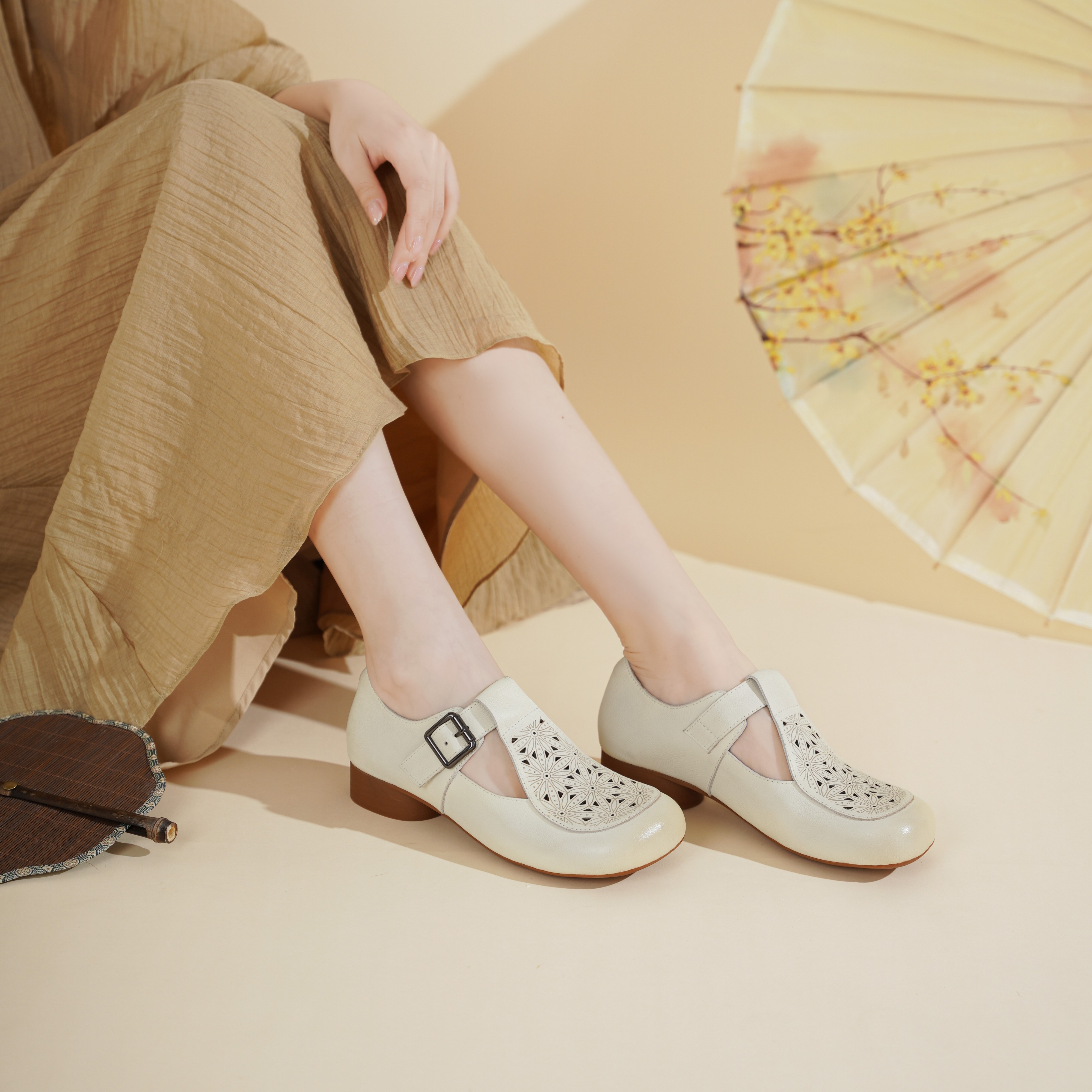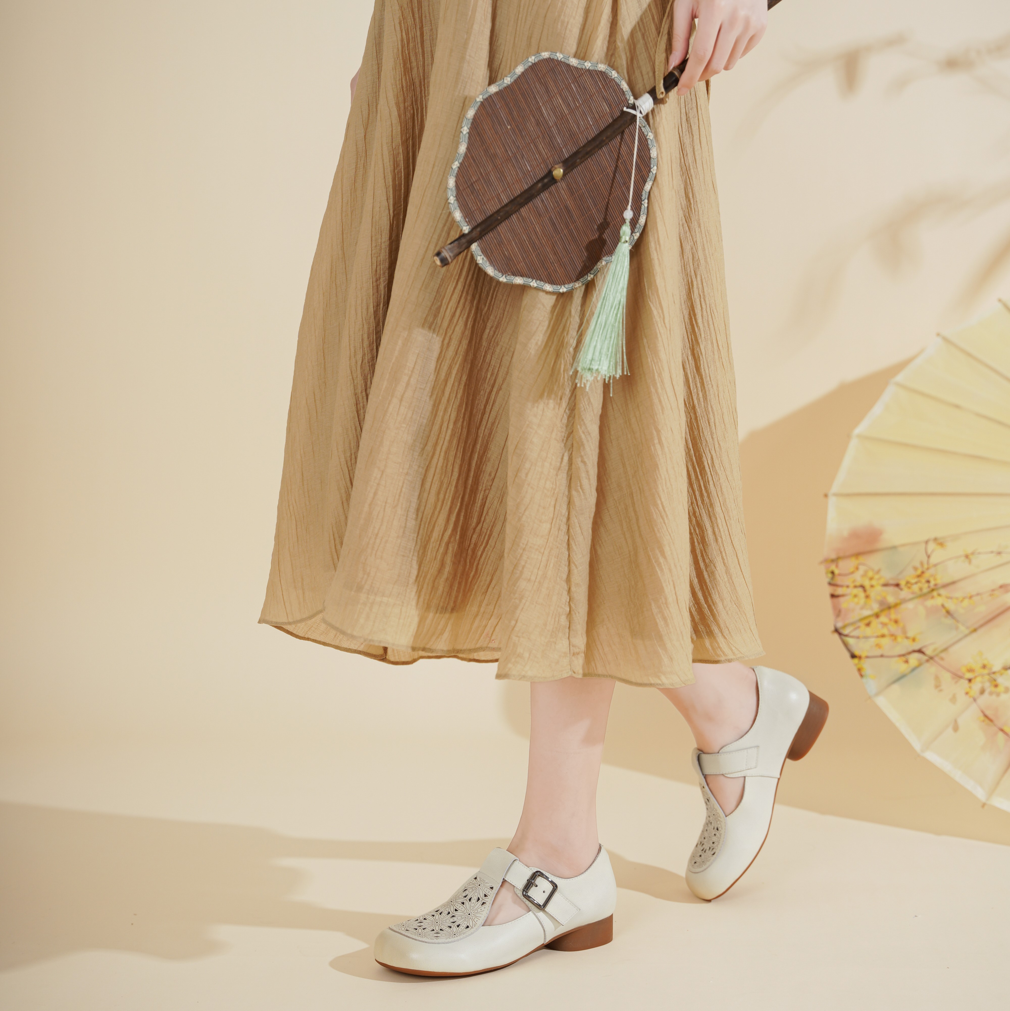 西村名物2025年夏季新款舒适低跟新中式风优雅玛丽珍单鞋洞洞鞋X25AH15791