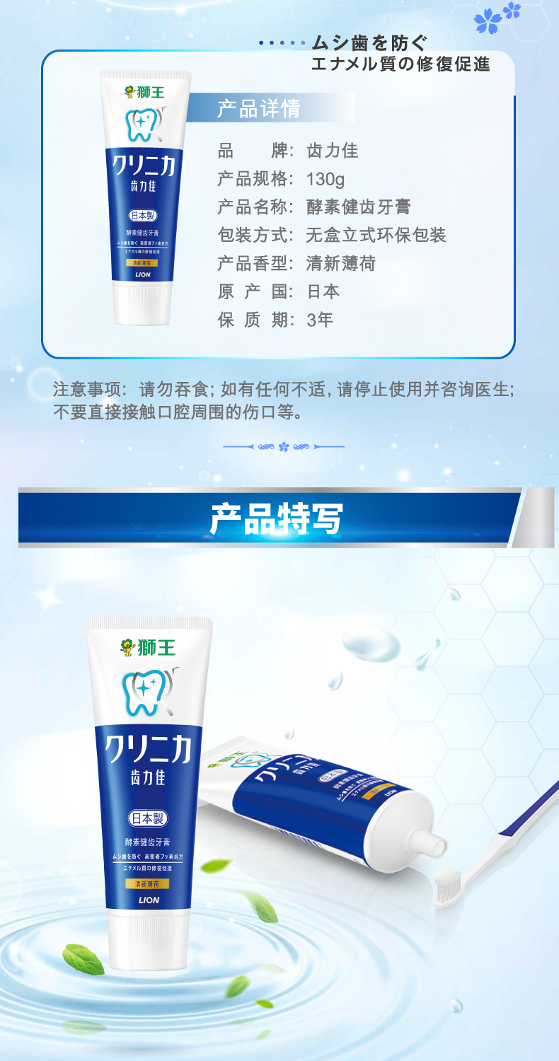 狮王齿力佳酵素健齿牙膏(清新薄荷)立式130g