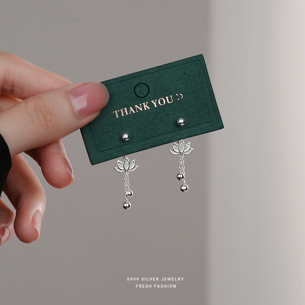 【冰莲】S999银足银圆珠螺丝莲花流苏耳饰【YXS-E3827】