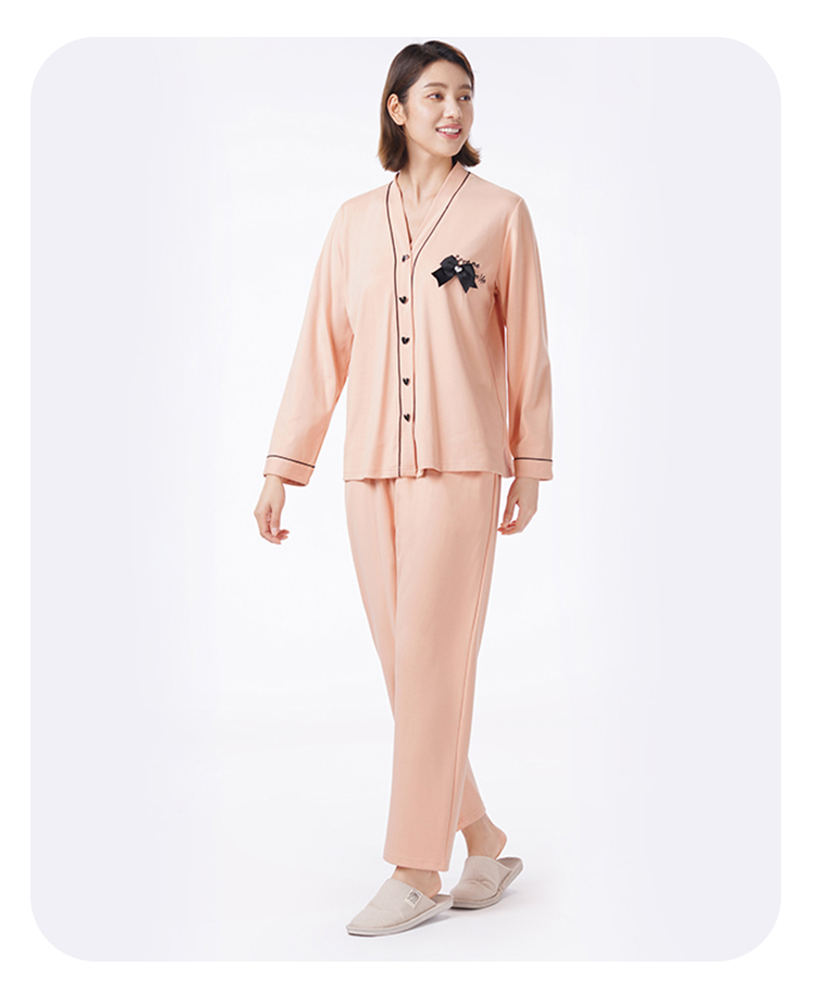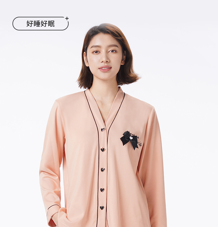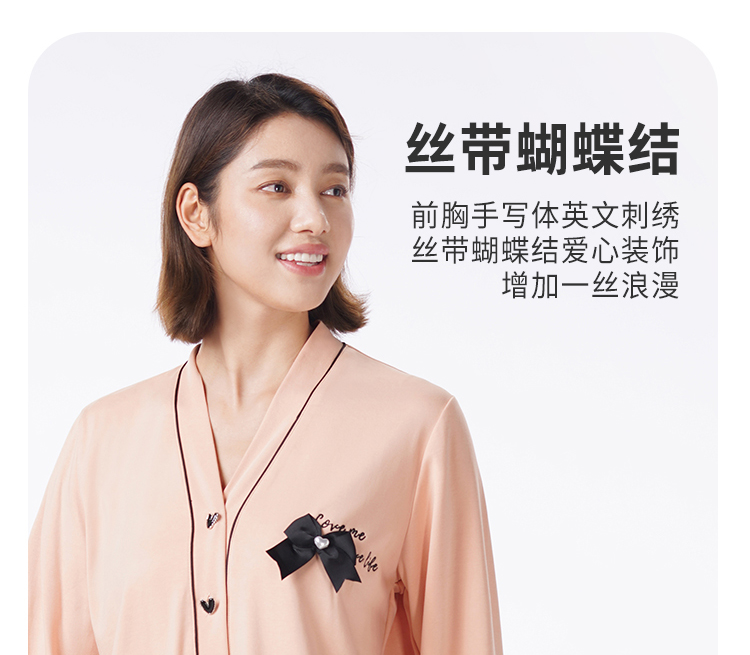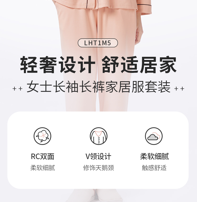 都市丽人睡衣好睡好眠长袖家居服RC50/50双面薄女士棉质套装LHT1M5