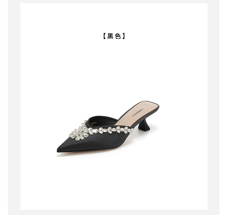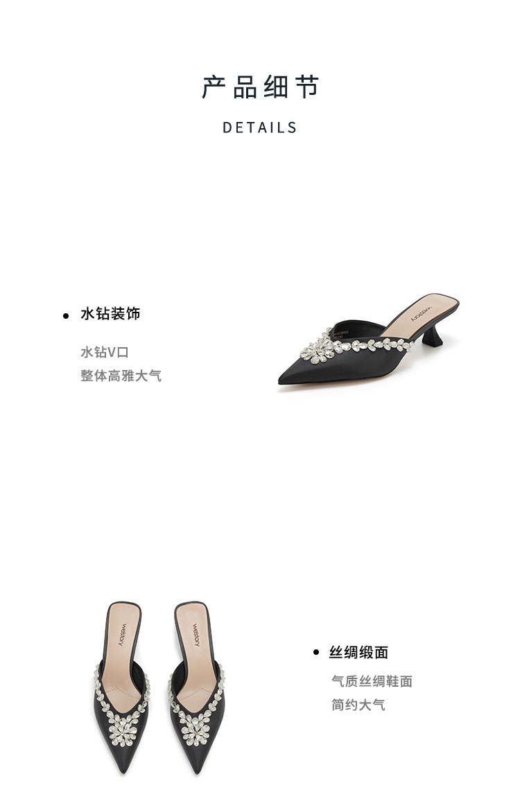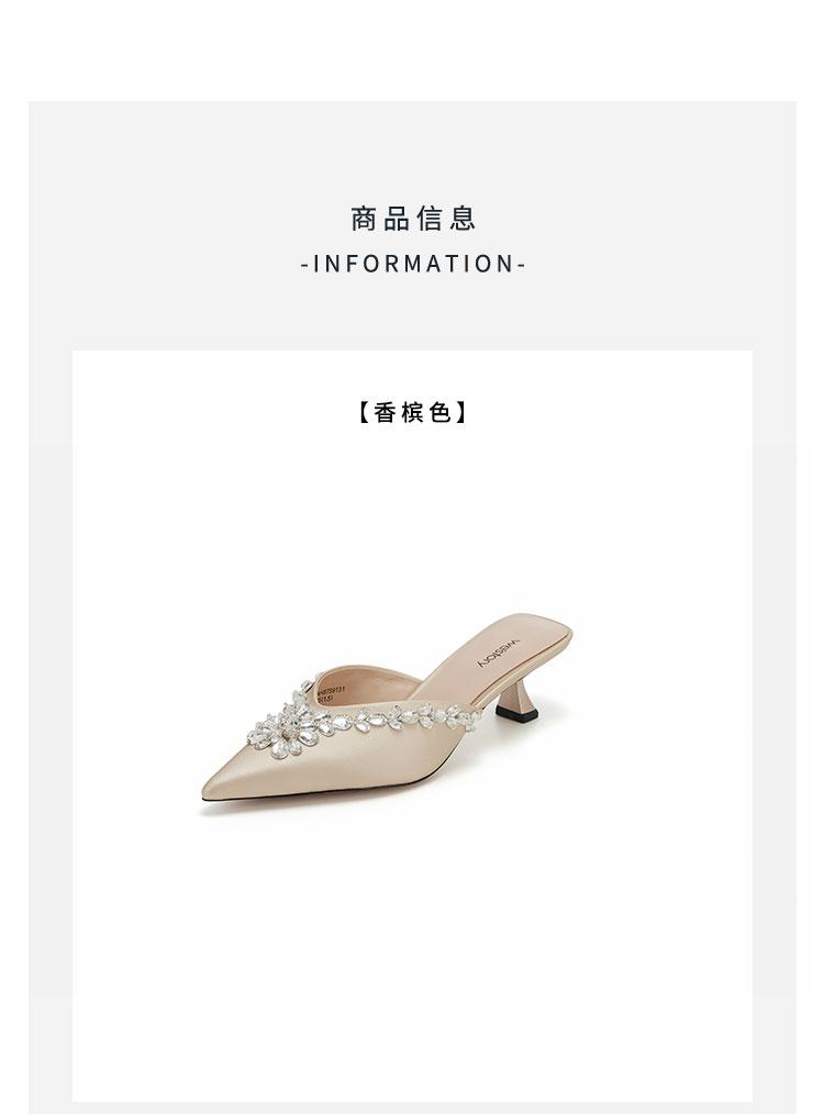 westory春季新款法式尖头小低跟后空鞋礼服鞋新娘婚鞋W24AH57591