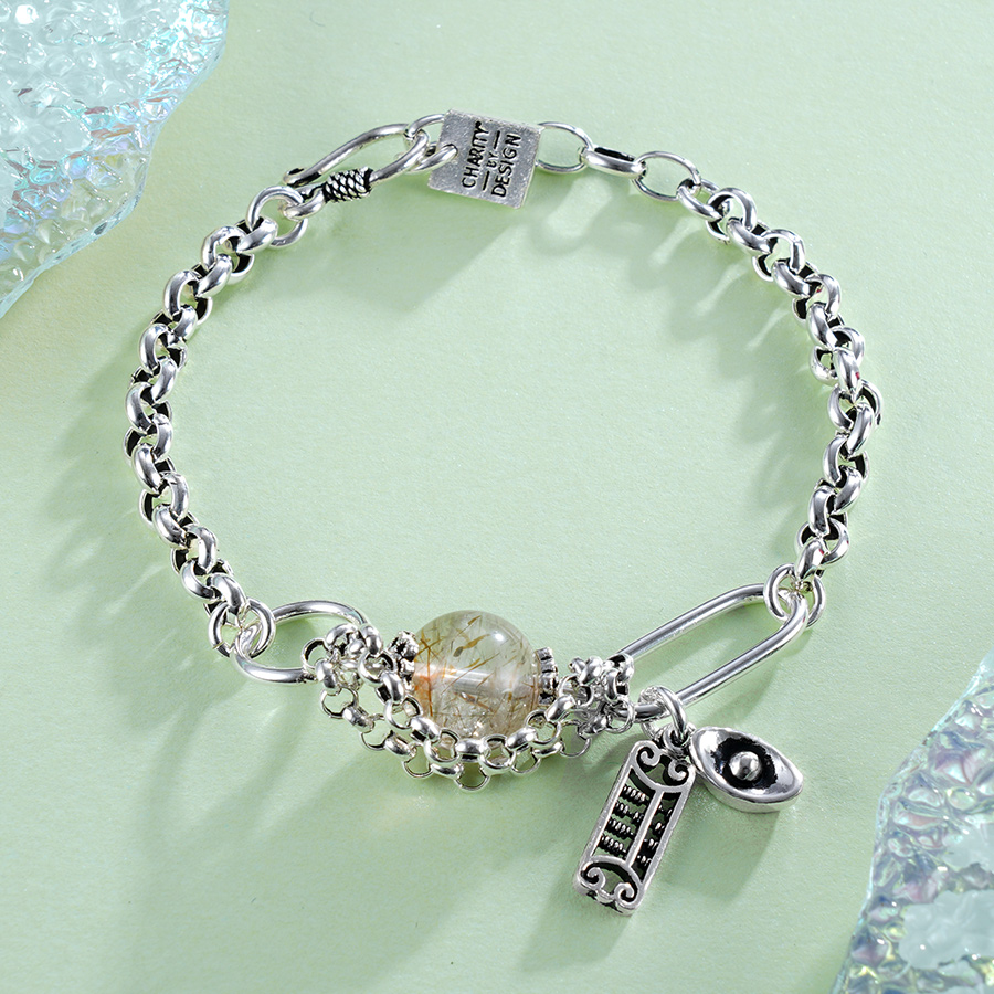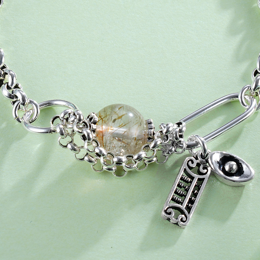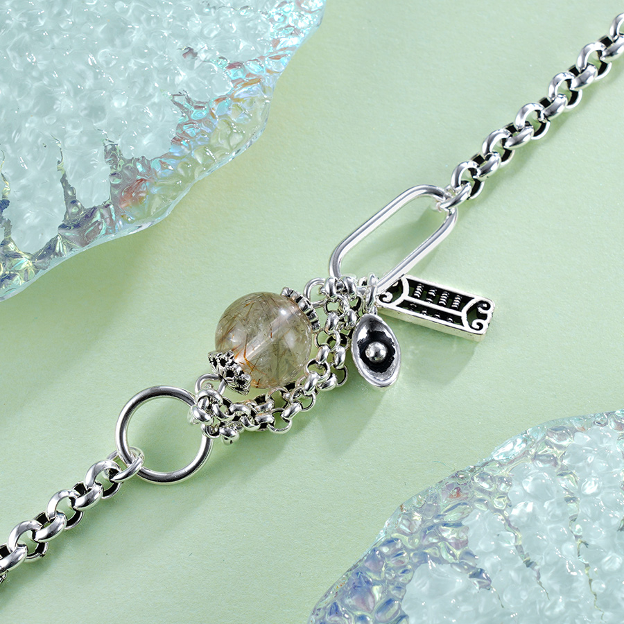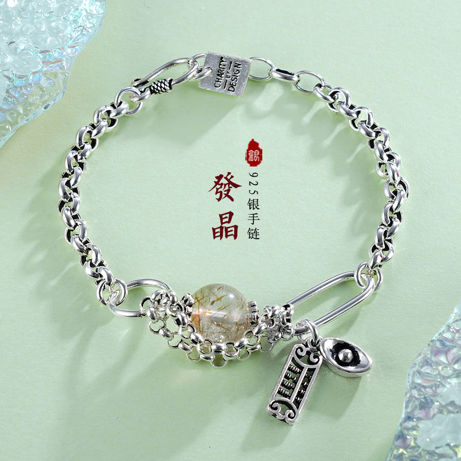【寓意】:纯银手链点缀发晶小圆珠,似山水画般朦胧诗意,散发着独特的自然美。不仅可以增强自信,还有招财纳金的作用哦。
