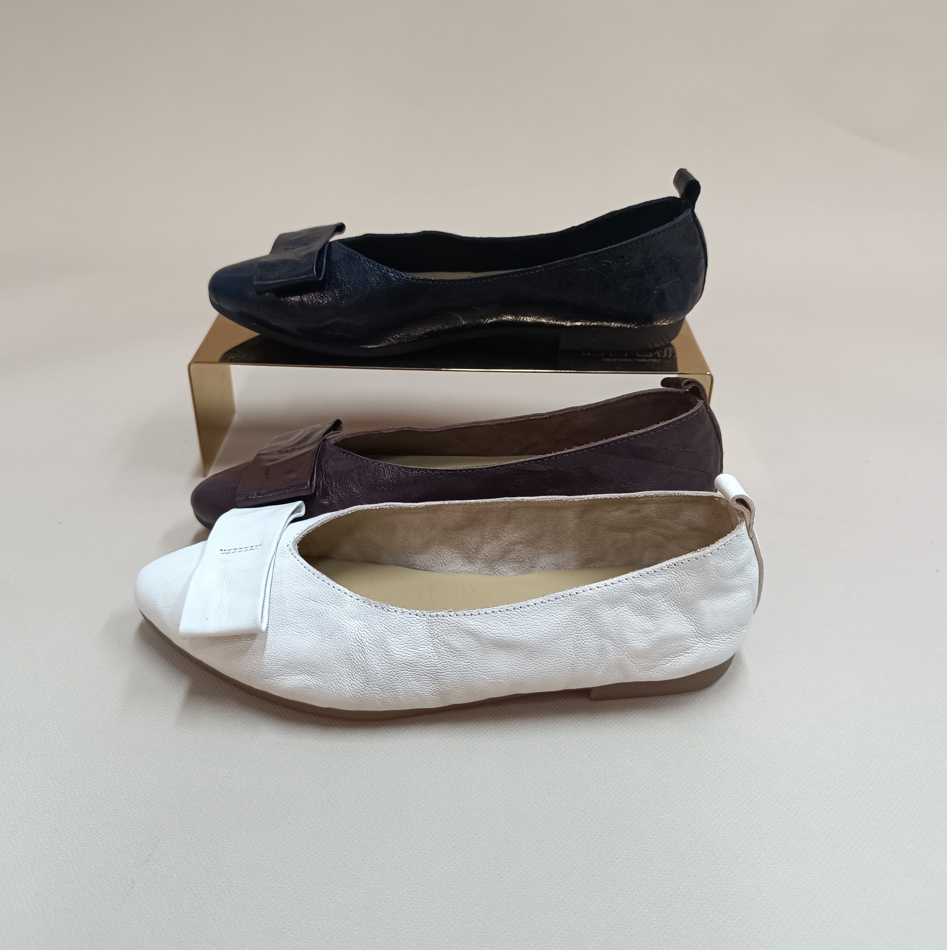 西村名物2025年秋季新款舒适平底软底小尖头蝴蝶结浅口单鞋X25CE31681