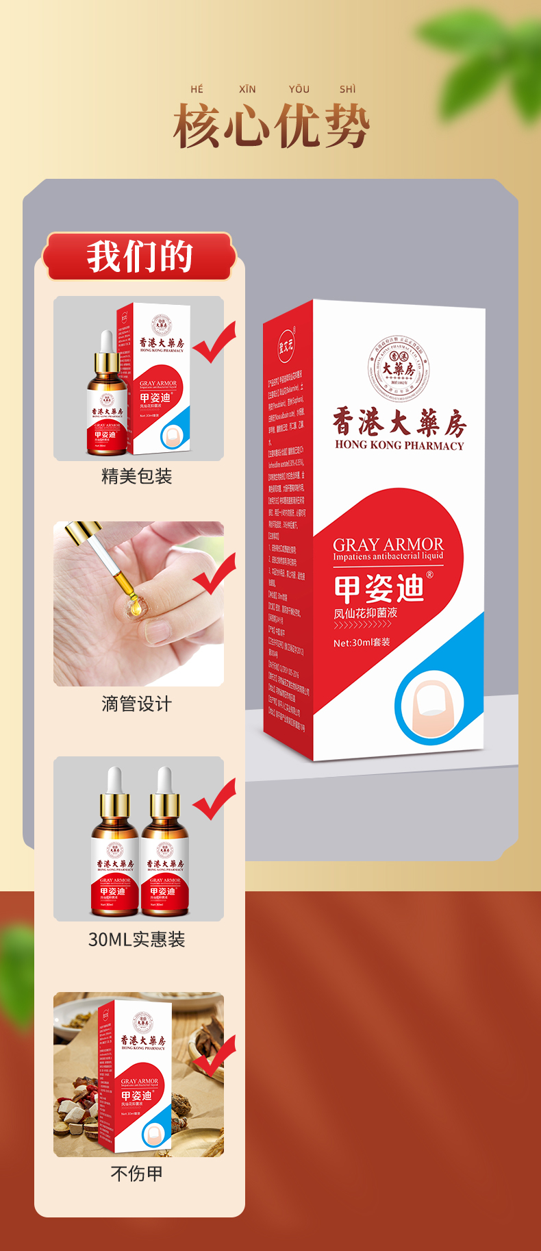 【买2送1】香港大药房甲姿迪灰指甲液体敷料 深层渗透 滋养甲床促养新甲 手足通用液体敷料灰甲液30ml/瓶