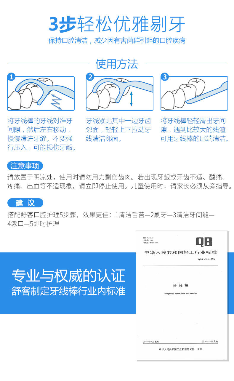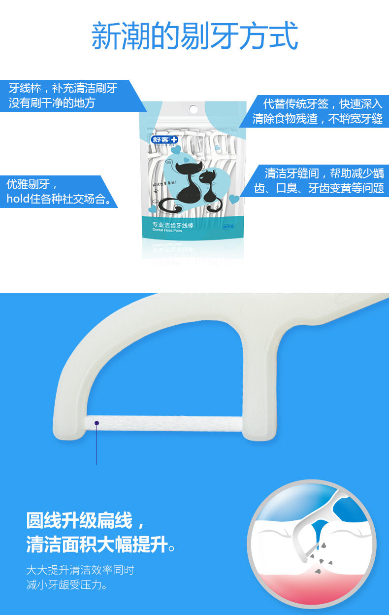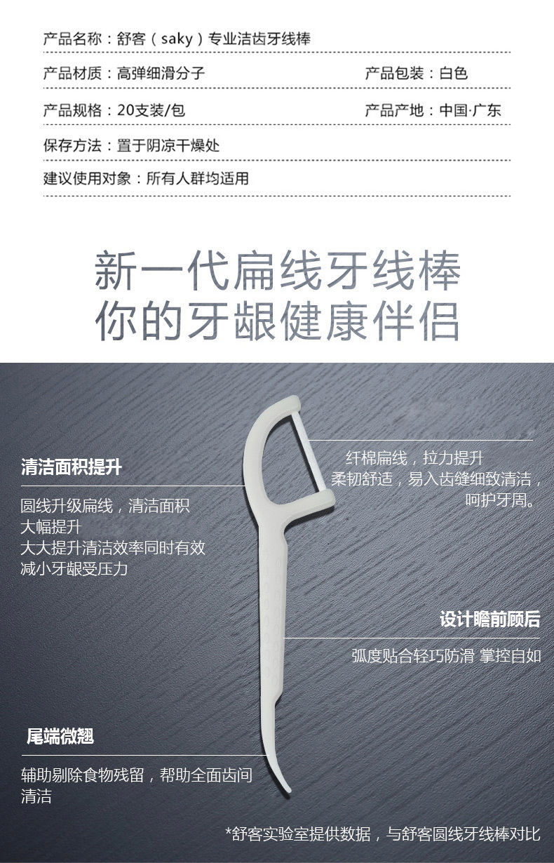 【舒客扁线牙线】袋装剔牙线家庭装口腔护理安全牙线棒牙签一次性