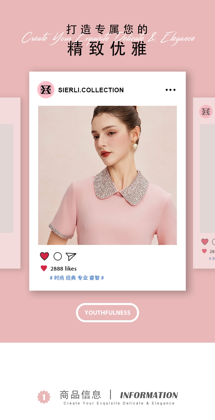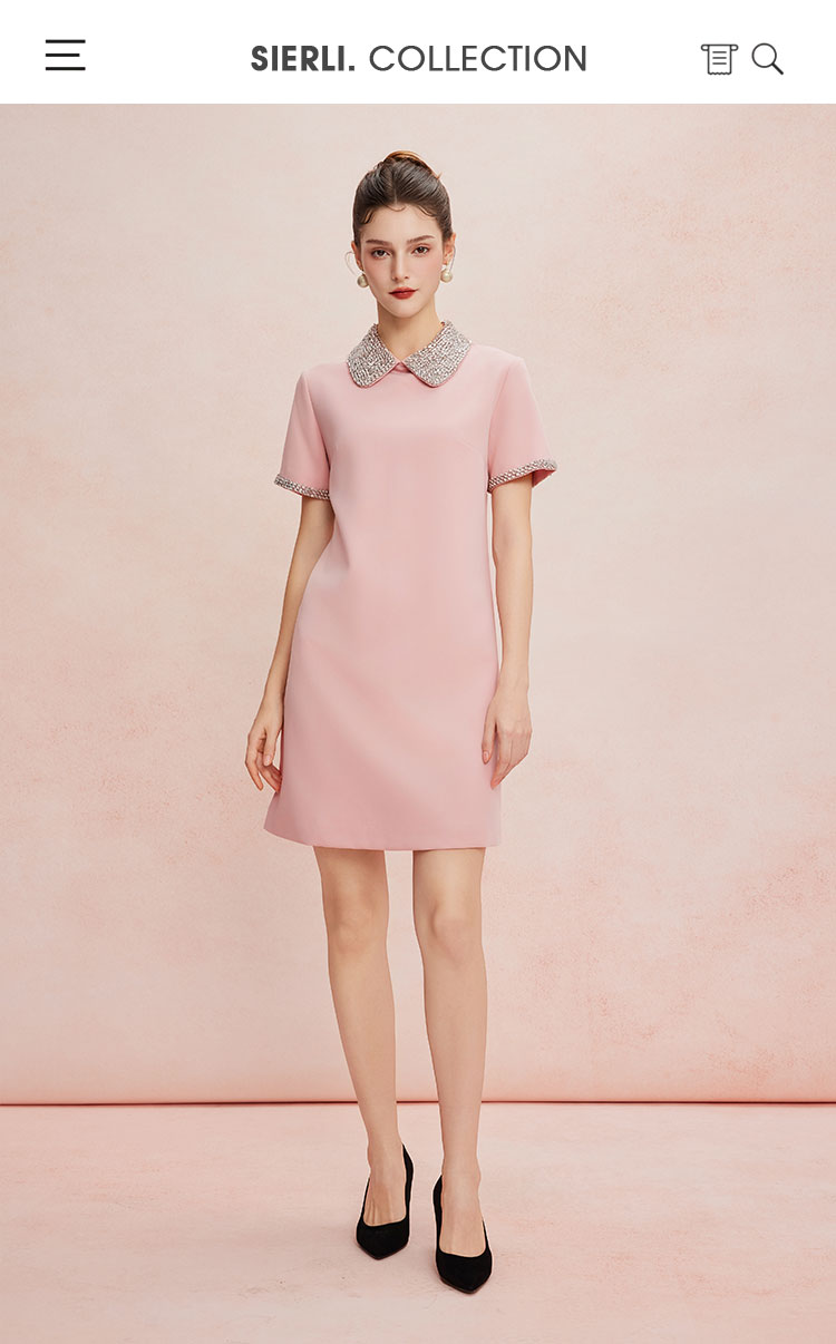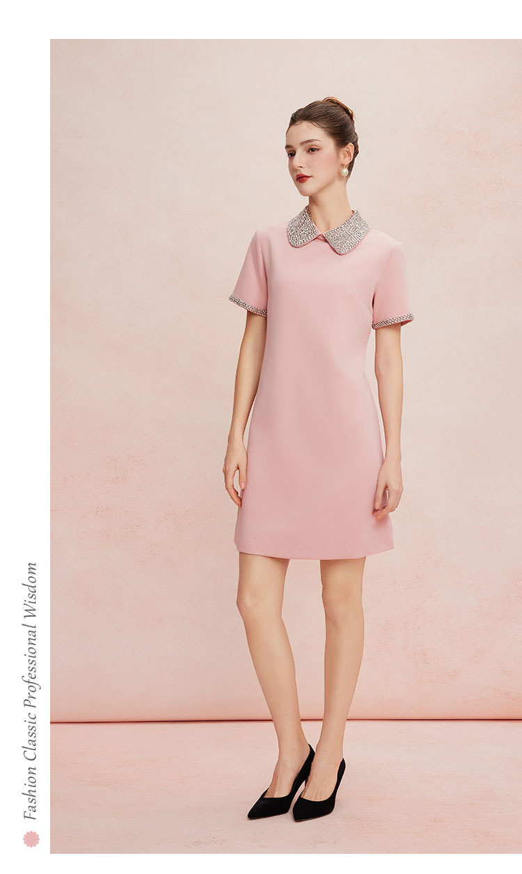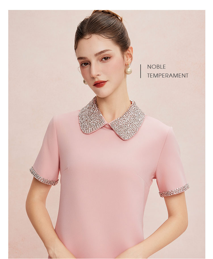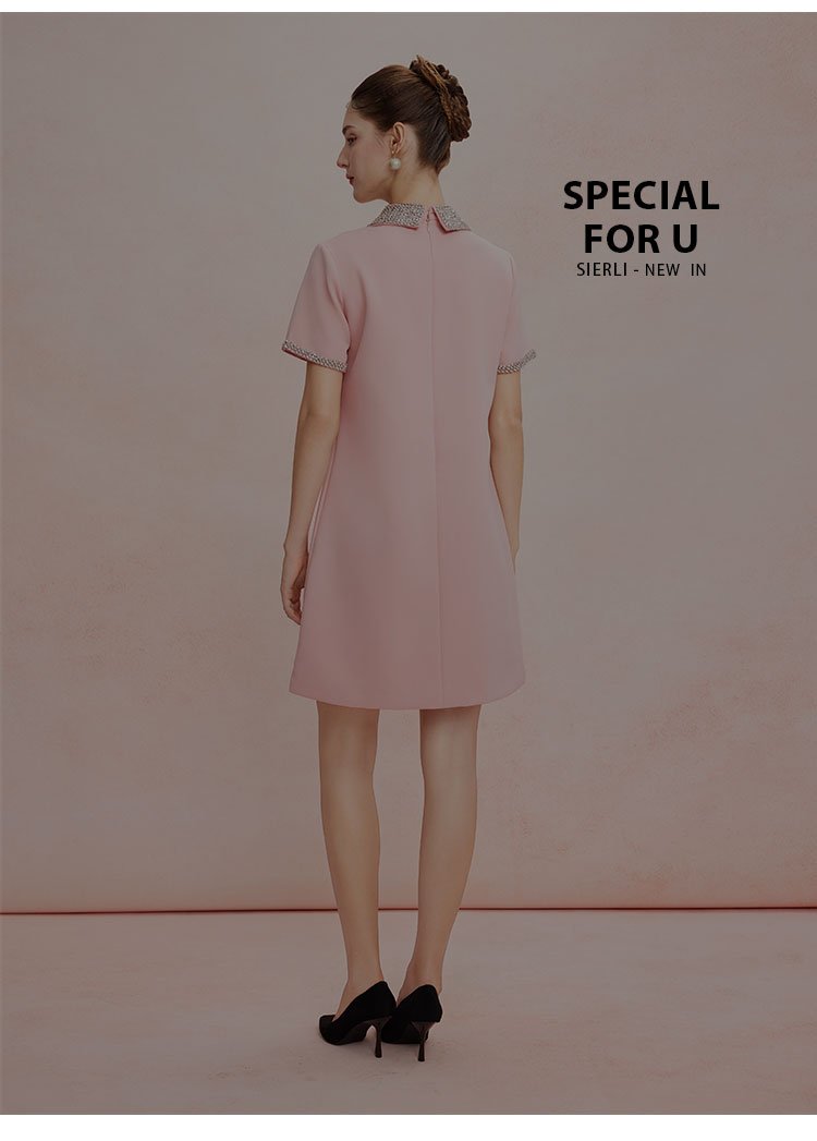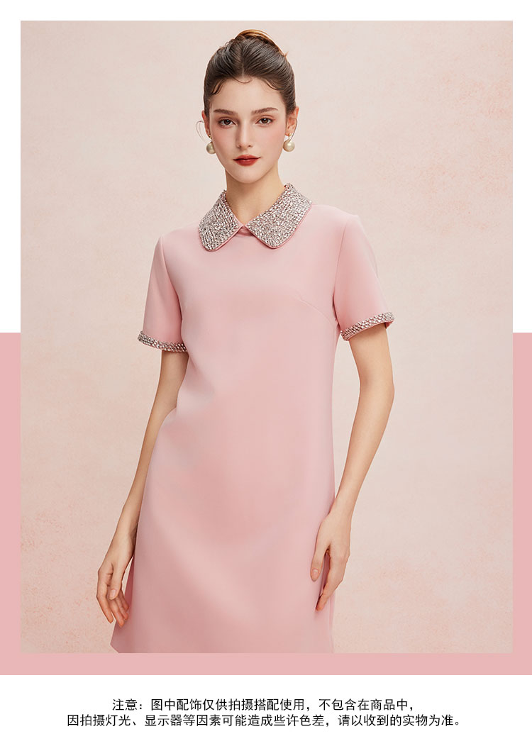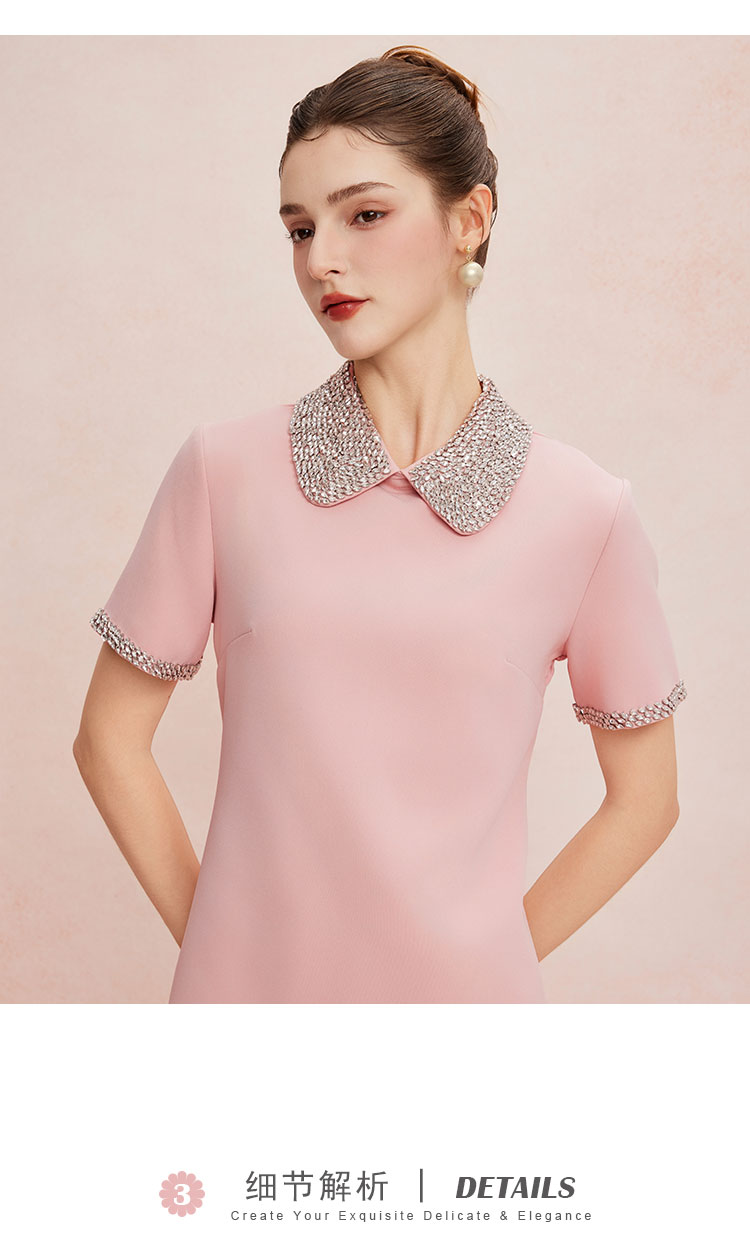 QF8D9斯尔丽25夏季新款名媛风精致镶钻减龄时尚H身型挡肚子连衣裙