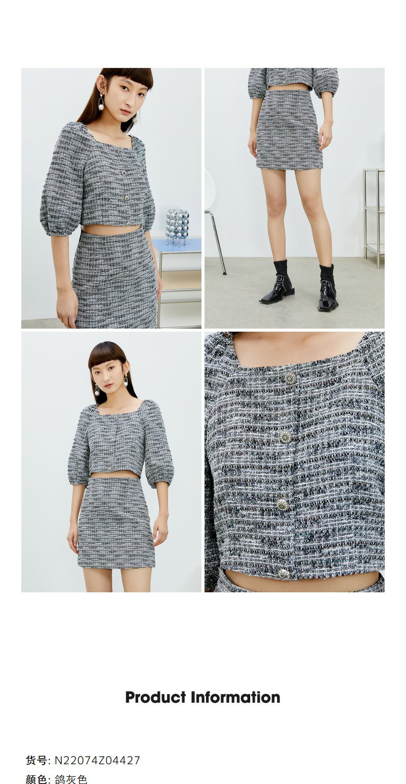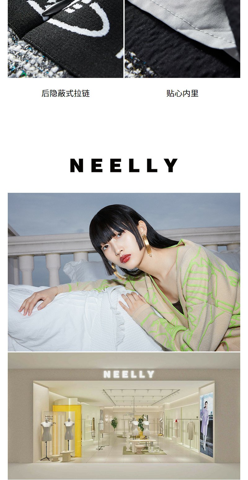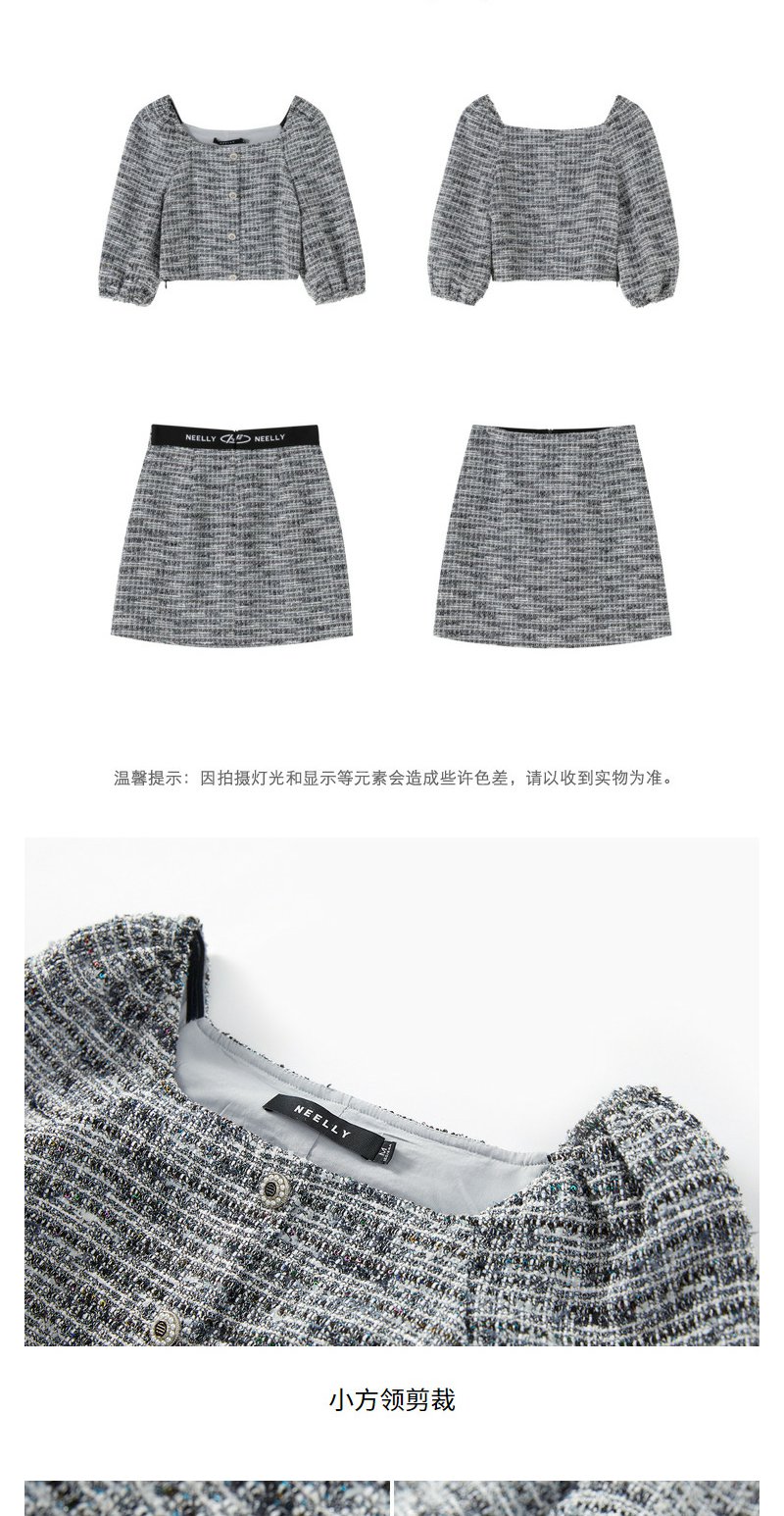 NEELLY纳俪套装女新款春装方领短款上衣两件套A字半身裙潮N22074Z04427