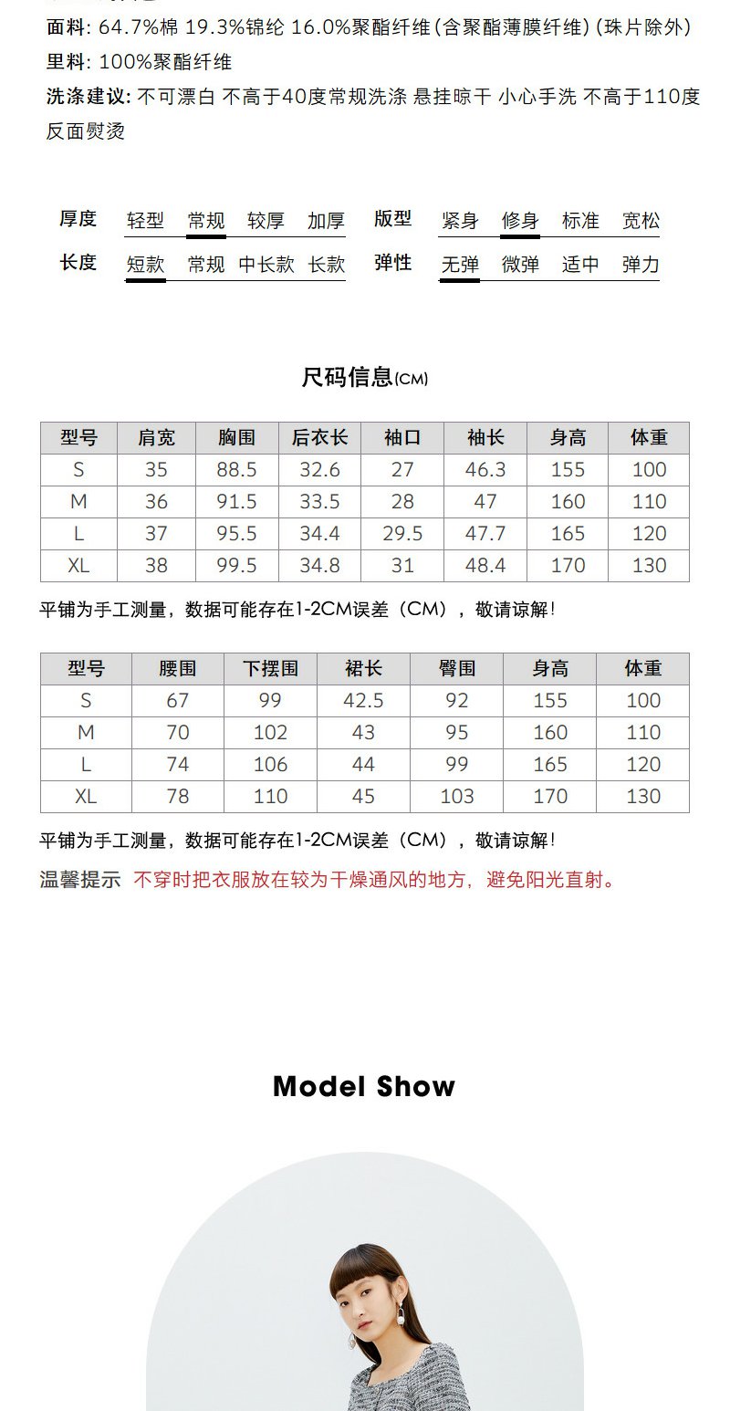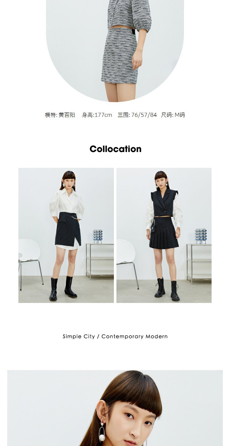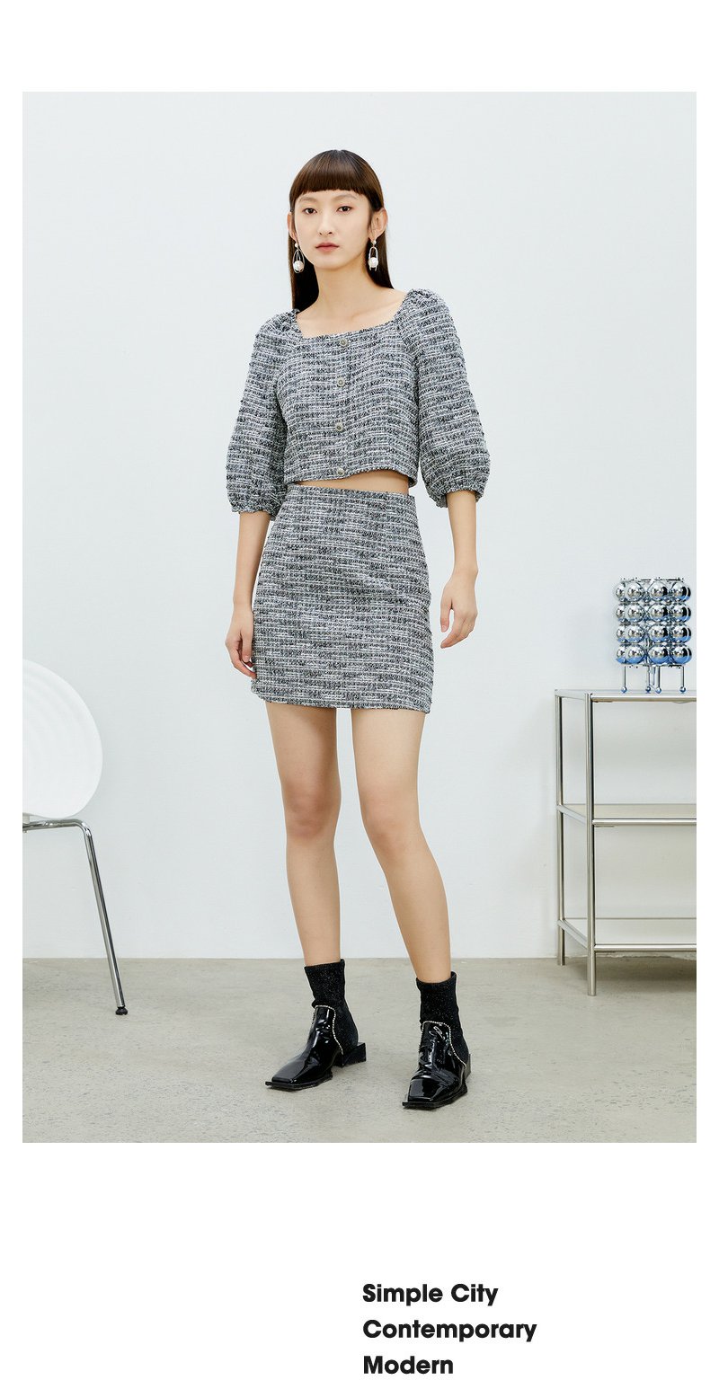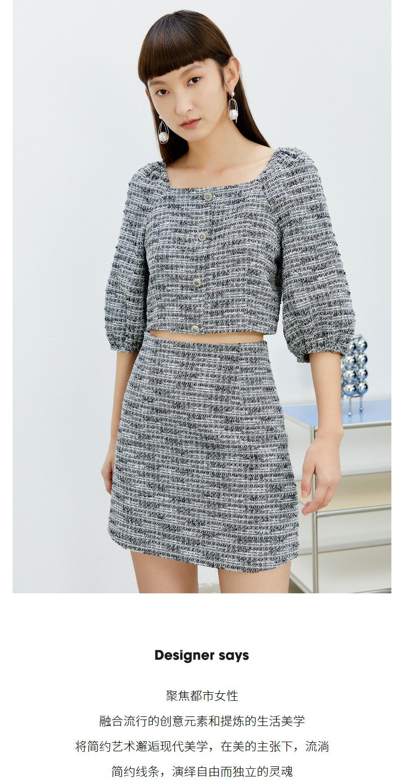 NEELLY纳俪套装女新款春装方领短款上衣两件套A字半身裙潮N22074Z04427