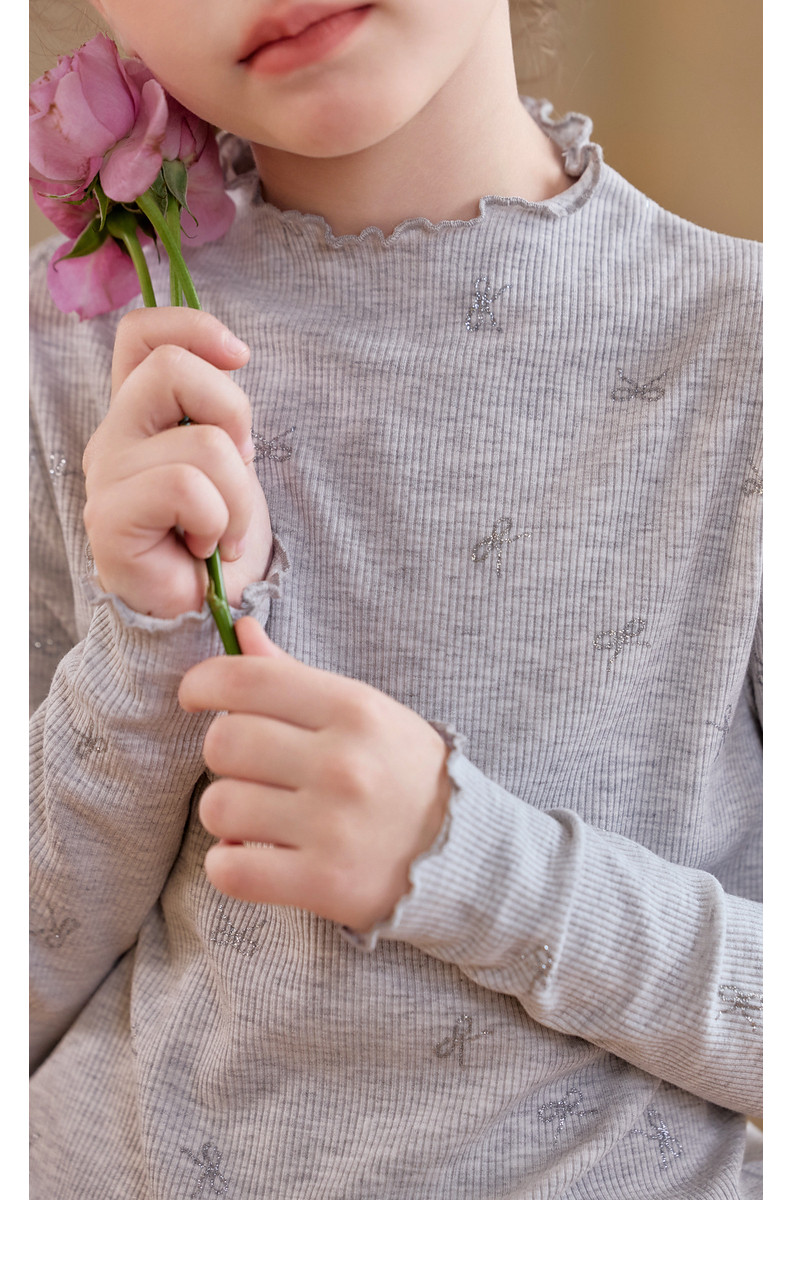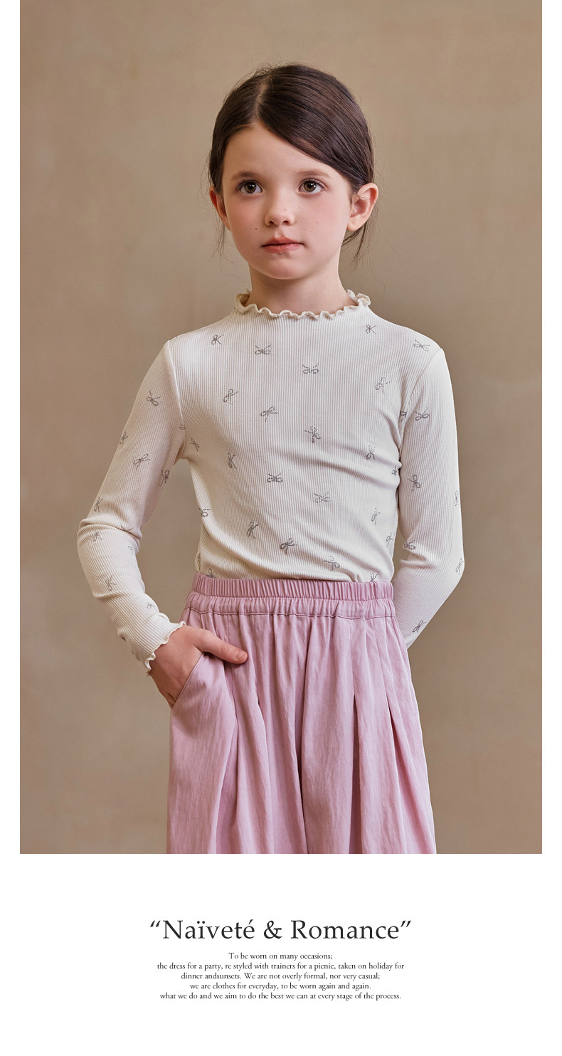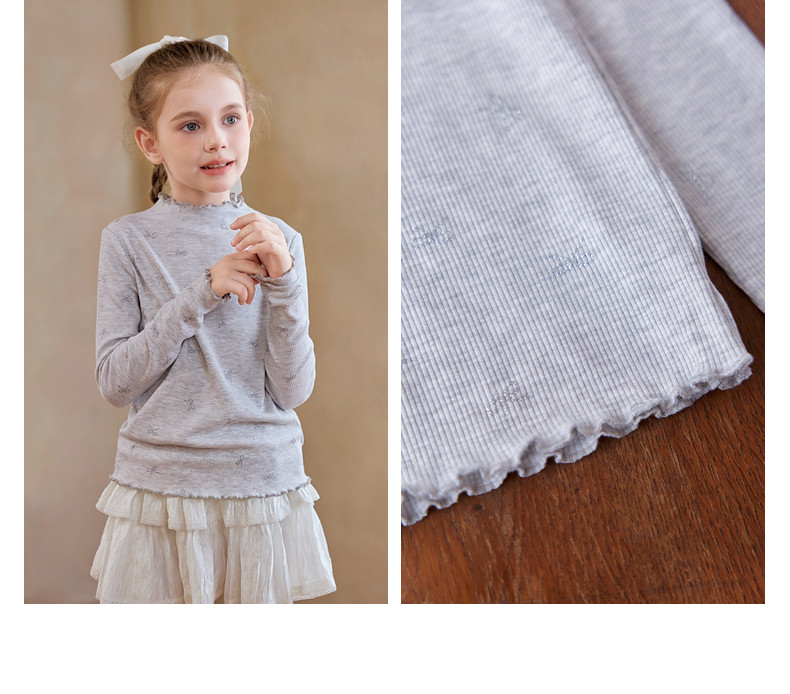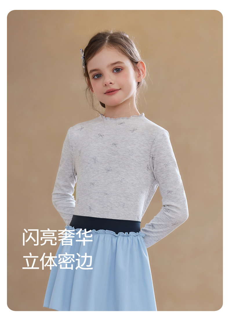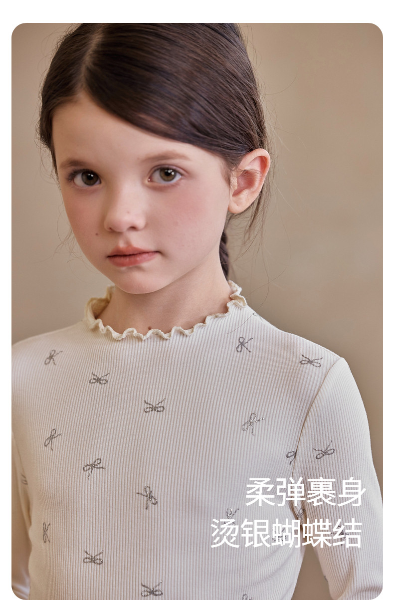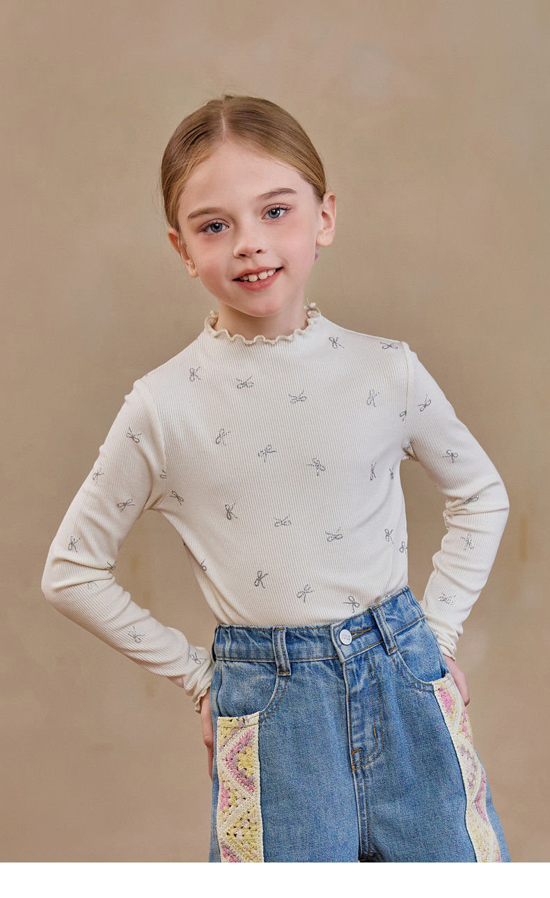 【云优选】Little Naive女童木耳边打底衫春款百搭甜美弹力t恤儿童内搭上衣