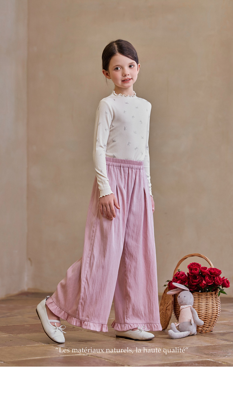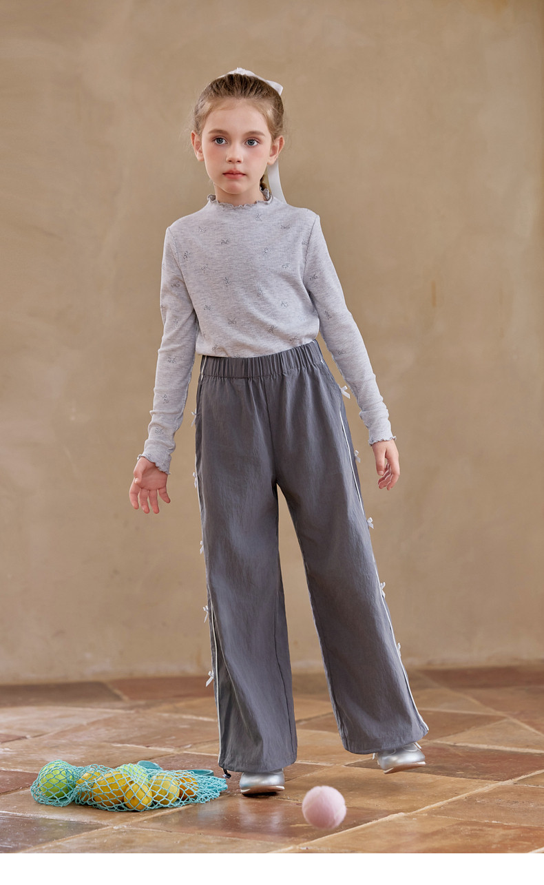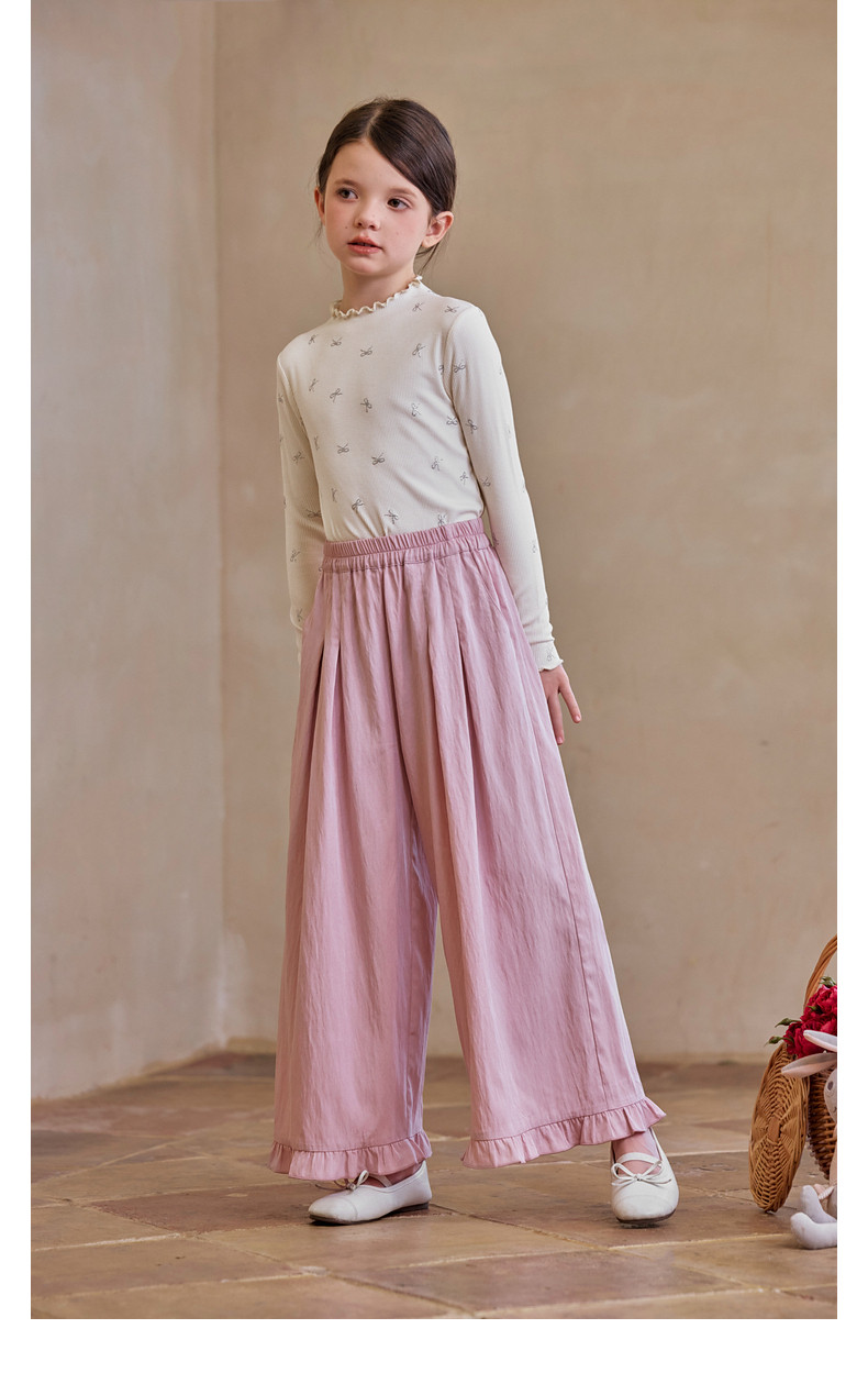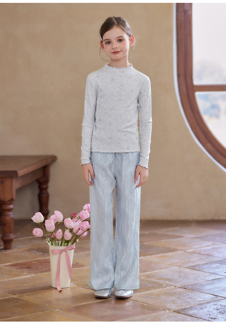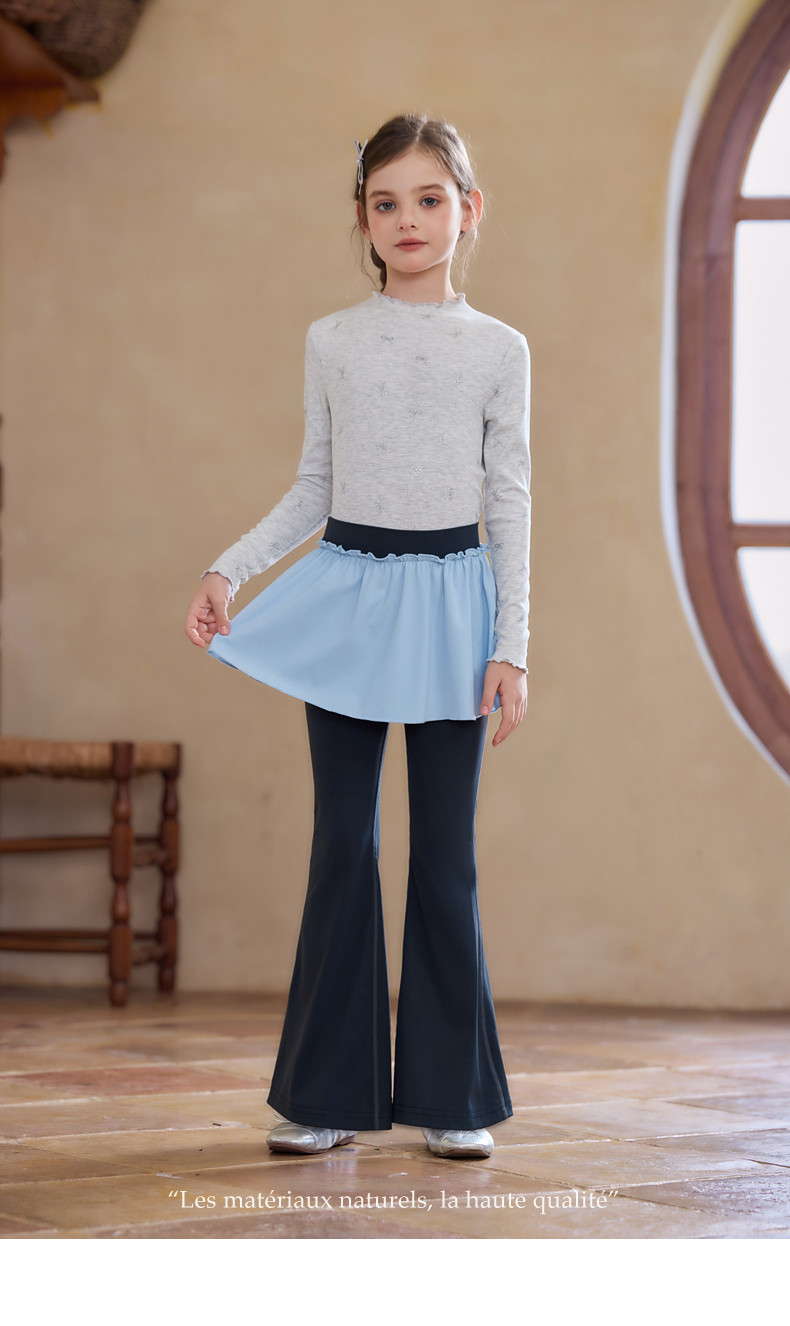 【云优选】Little Naive女童木耳边打底衫春款百搭甜美弹力t恤儿童内搭上衣