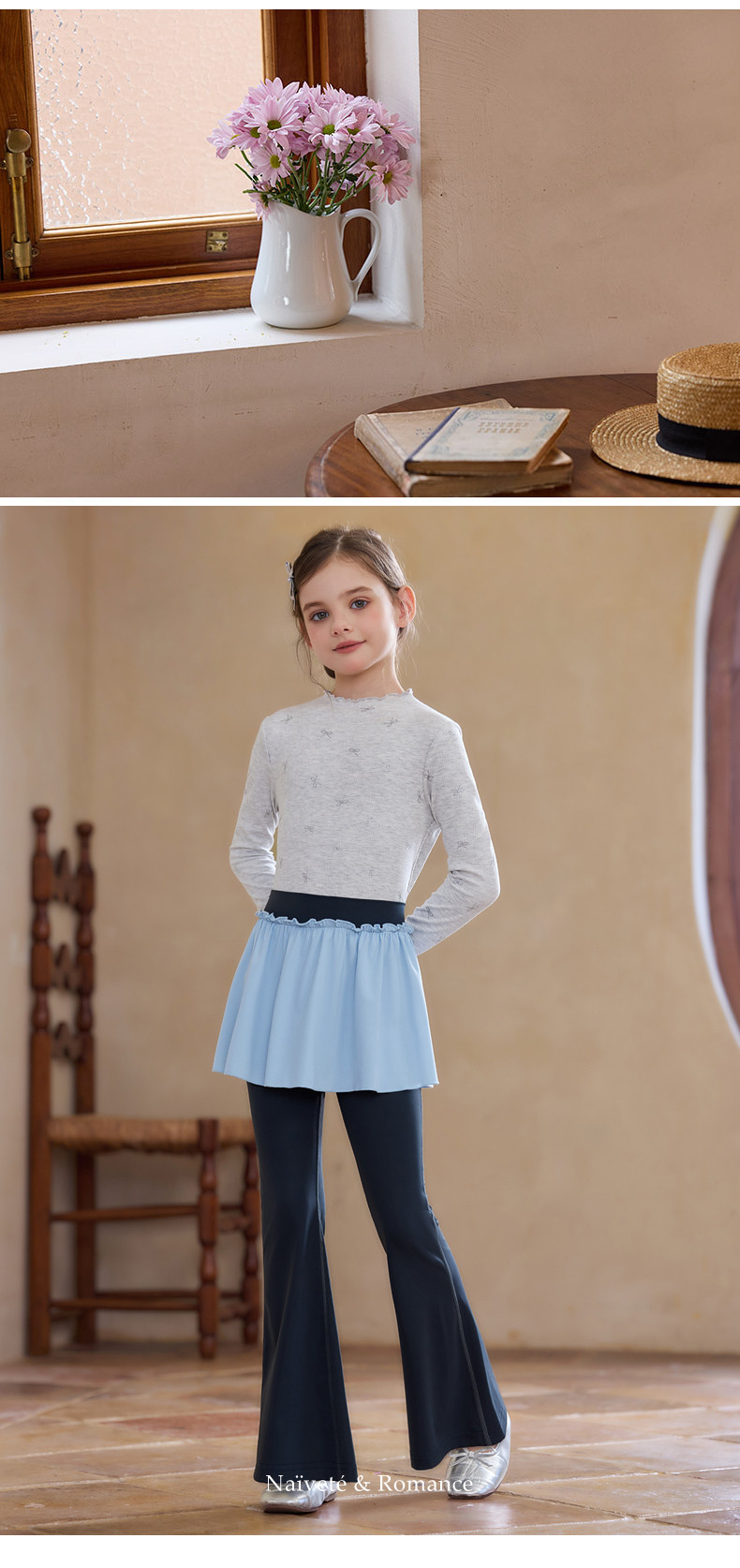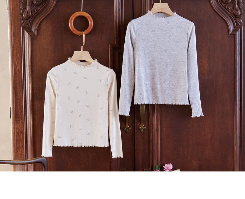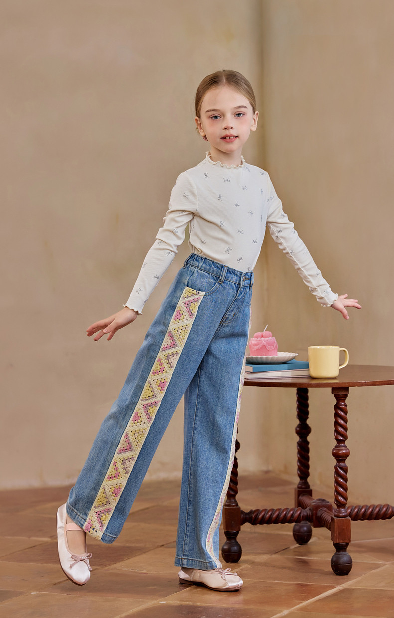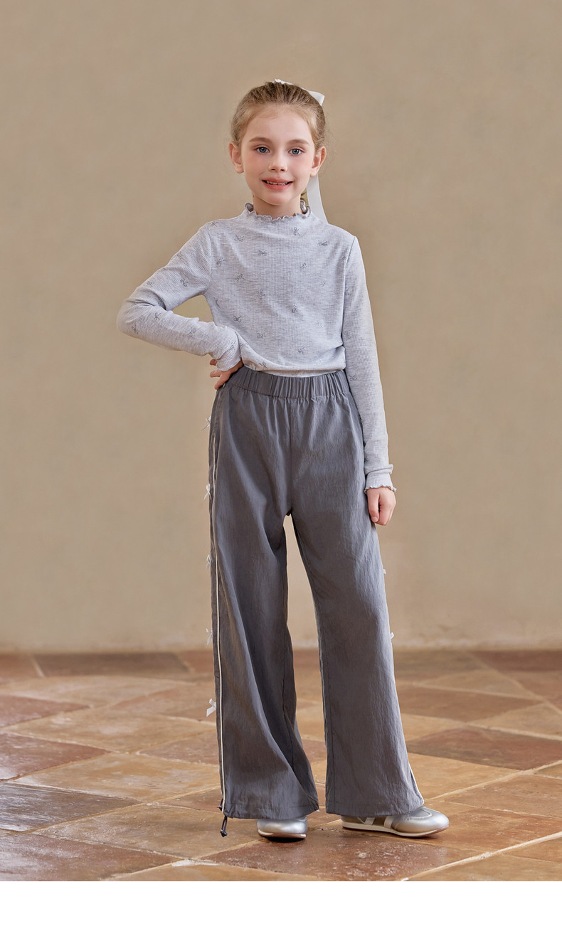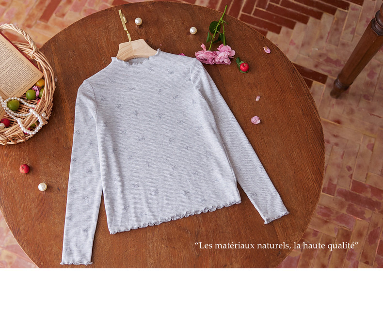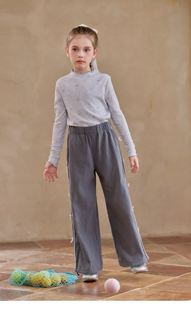 【云优选】Little Naive女童木耳边打底衫春款百搭甜美弹力t恤儿童内搭上衣
