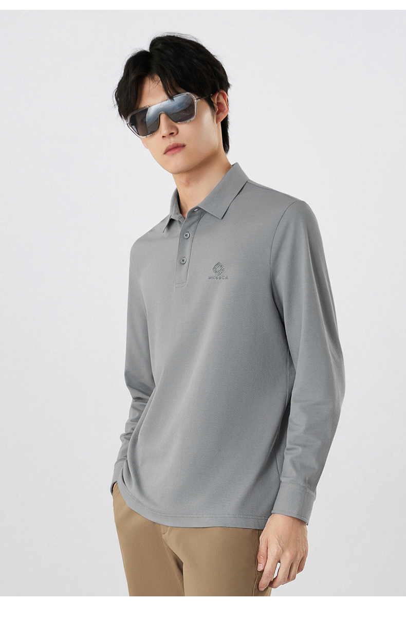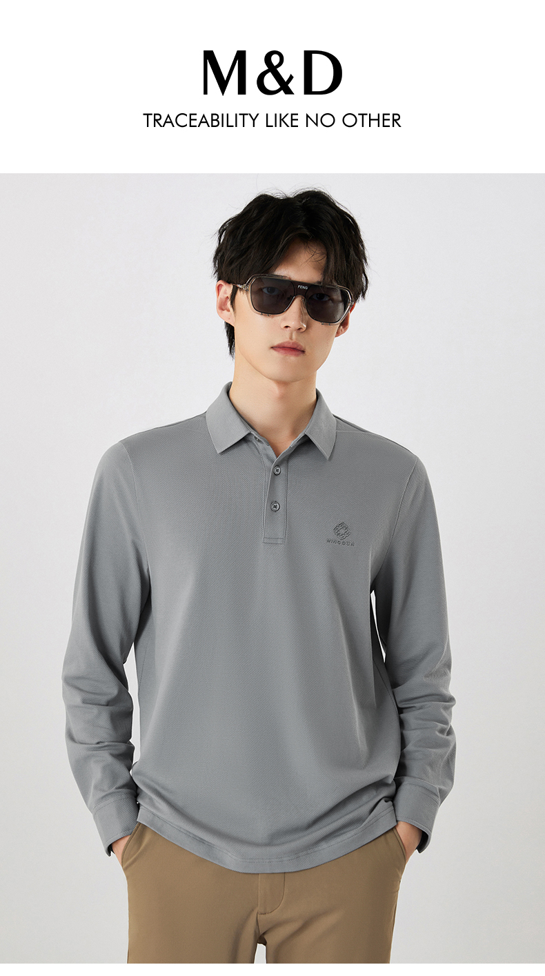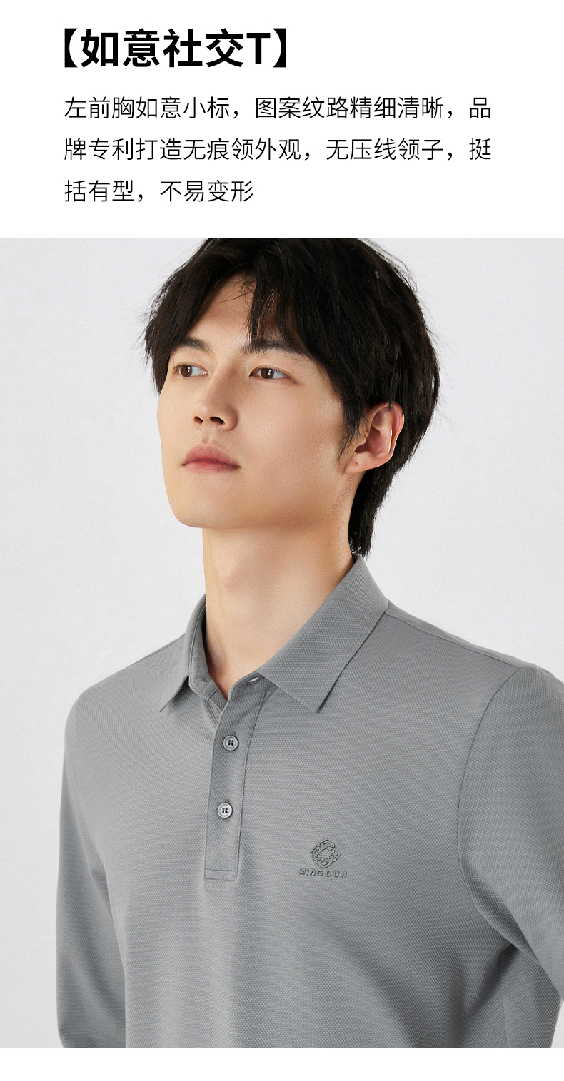MD名盾男士翻领长袖POLO衫商务休闲秋季新款修身桑蚕丝混纺打底衣