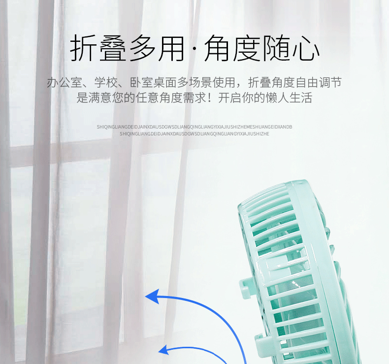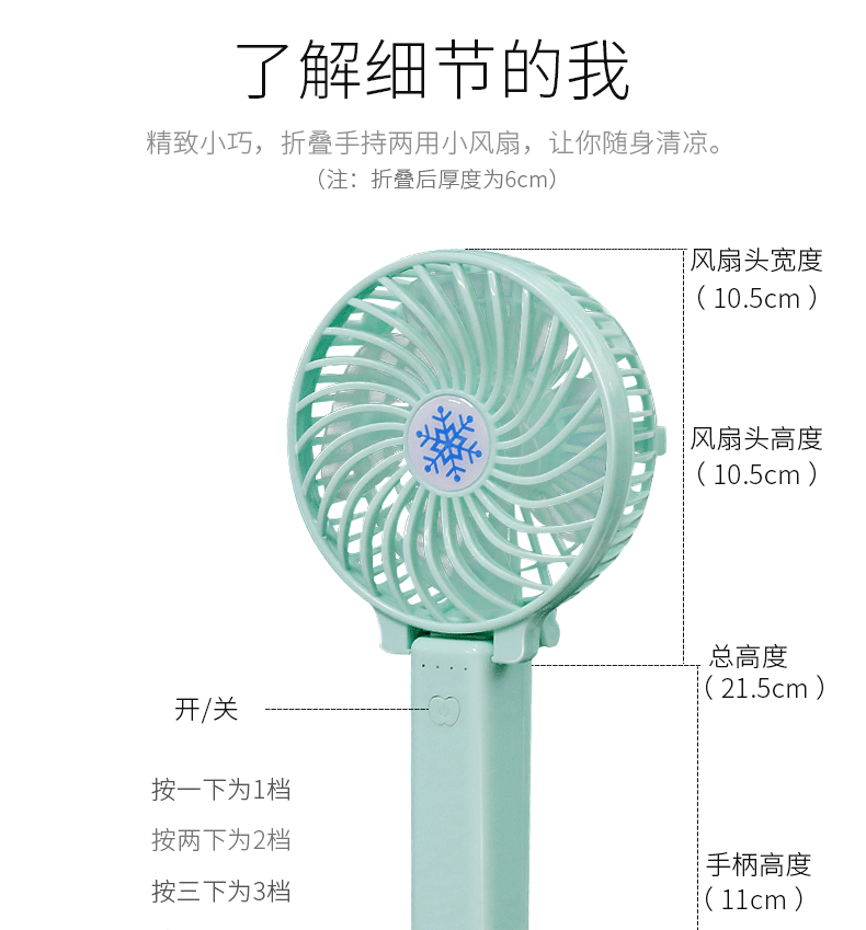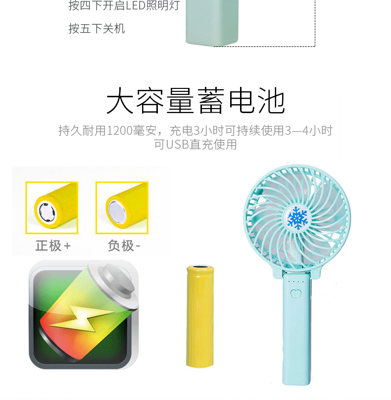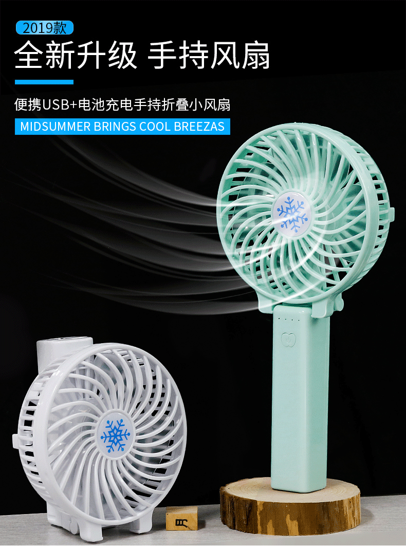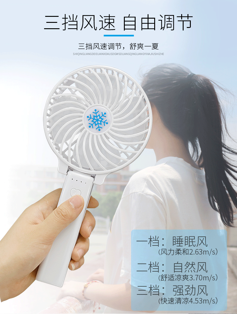 【积分兑换】手持小风扇 可折叠 便携式 可充电+电池