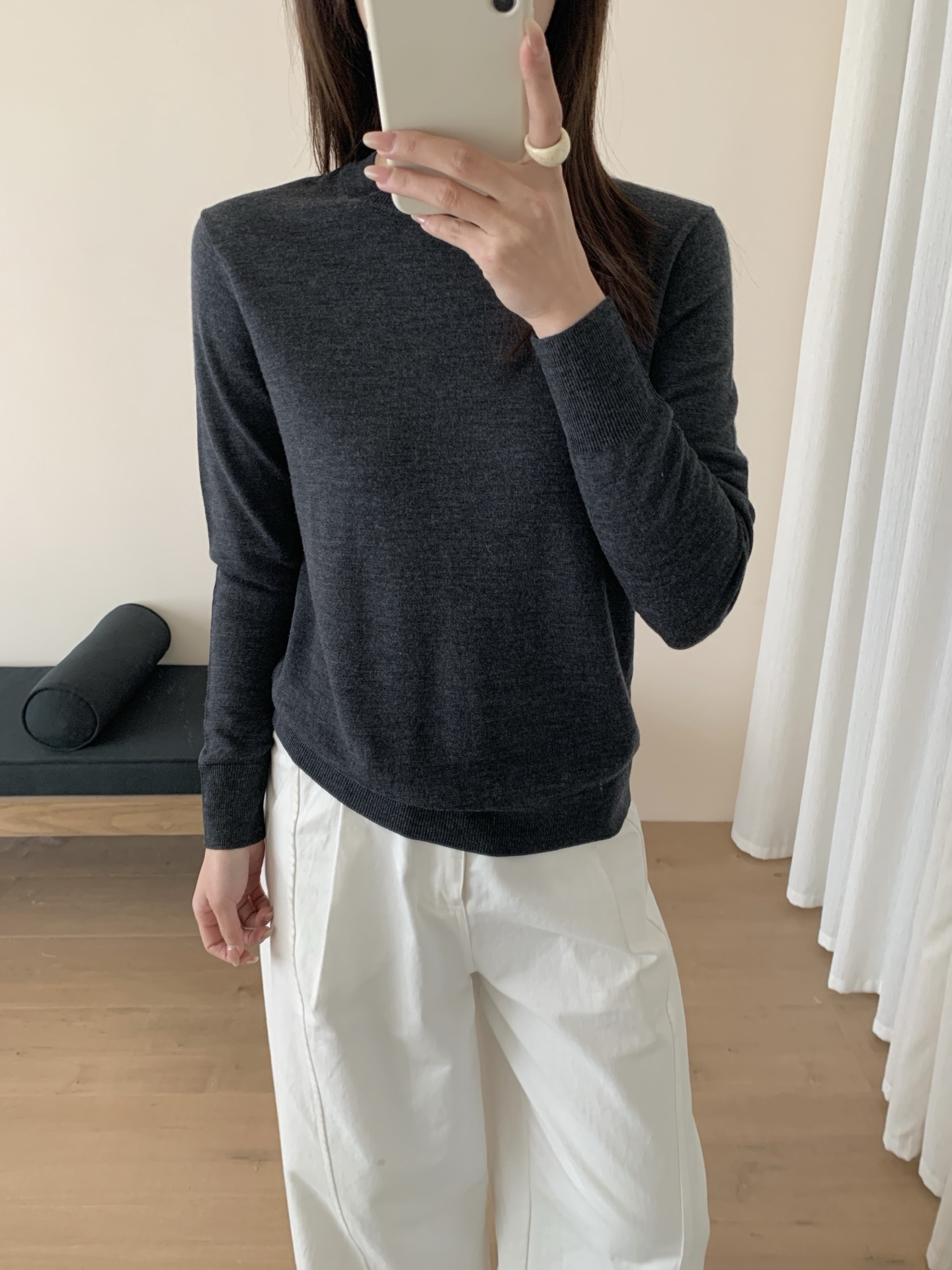 秋冬最烦的就是穿得臃肿又没质感?这件100%美利奴羊毛深灰针织衫,就是为解决这个痛点而生的。
