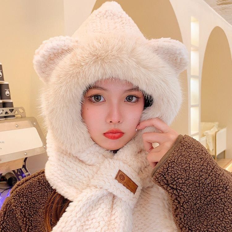 【可爱保暖❗️仿狐狸毛绒帽】一件顶三件,亲肤包裹温暖护颈,加绒加厚循环琐温,柔软温暖不宜掉毛,秋冬季东北骑车冬天围脖保暖2025新款QQ