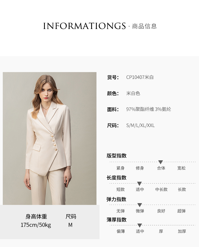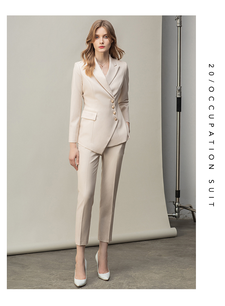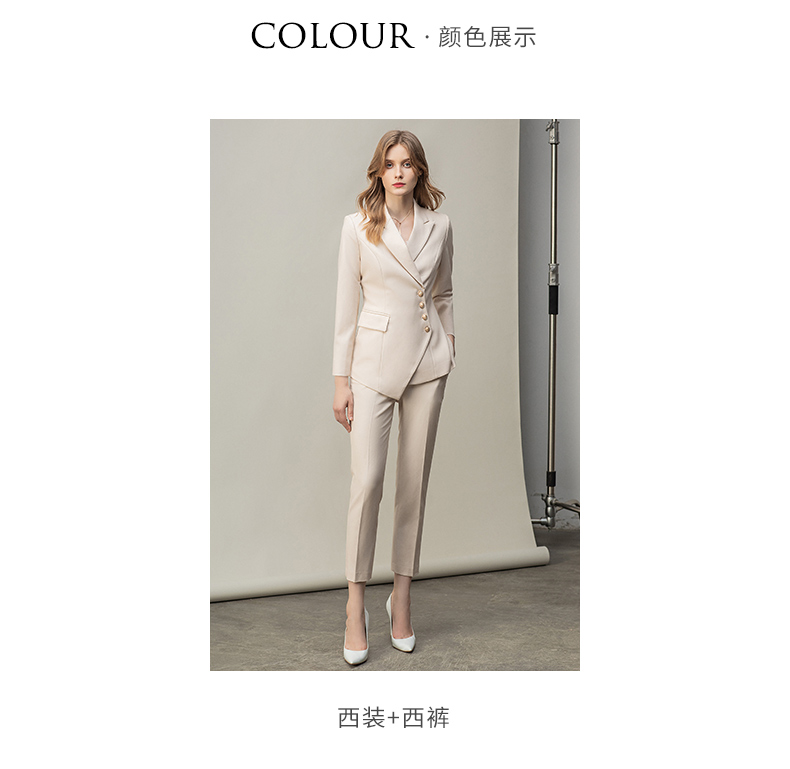 IWY/高级感杏色西装套装女秋冬韩版时尚气质酒店经理工作服职业装正装 CP10407米白