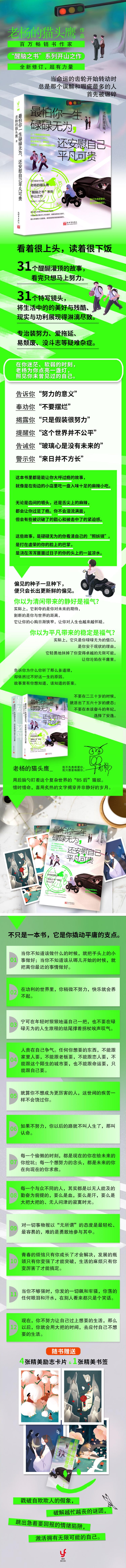 31个故事将生活中的美好与残酷、现实与功利展现得淋漓尽致。告诉你“平庸不是平凡”,奉劝你“不要急着岁月静好”,揭露你“你只是看起来很努力”,提醒你“这个世界并不公平”,告诫你“玻璃心是没有未来的”。涵盖了学习、工作、感情、生活,既解剖了真相,又拆穿了人心。提供了观察生活和审视自己的新视角。告诉你为什么你听了那么多道理却依然过不好这一生的原因。故事里有你想知道、该知道的答案。