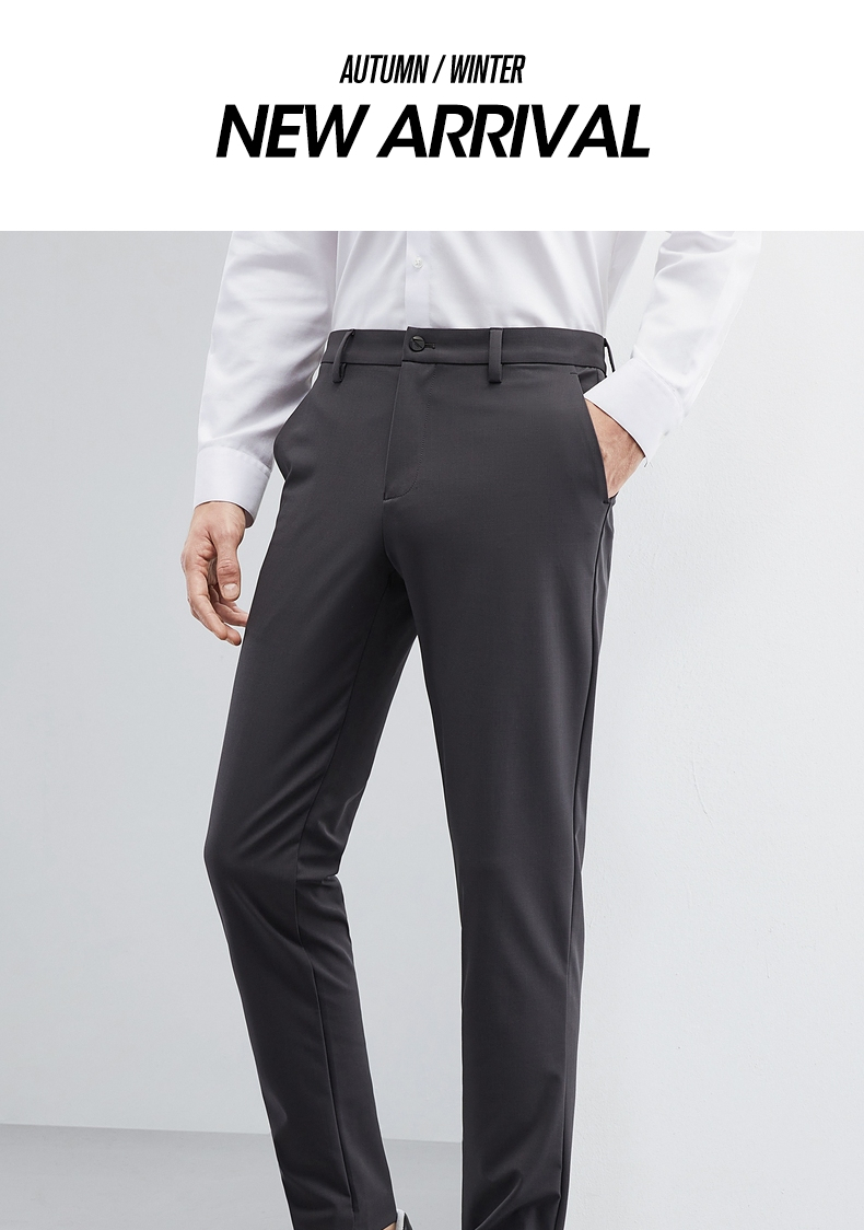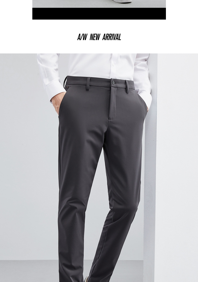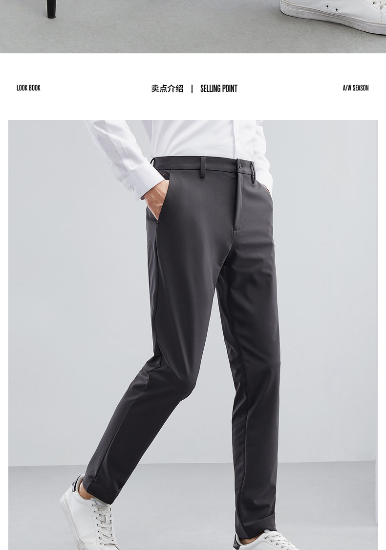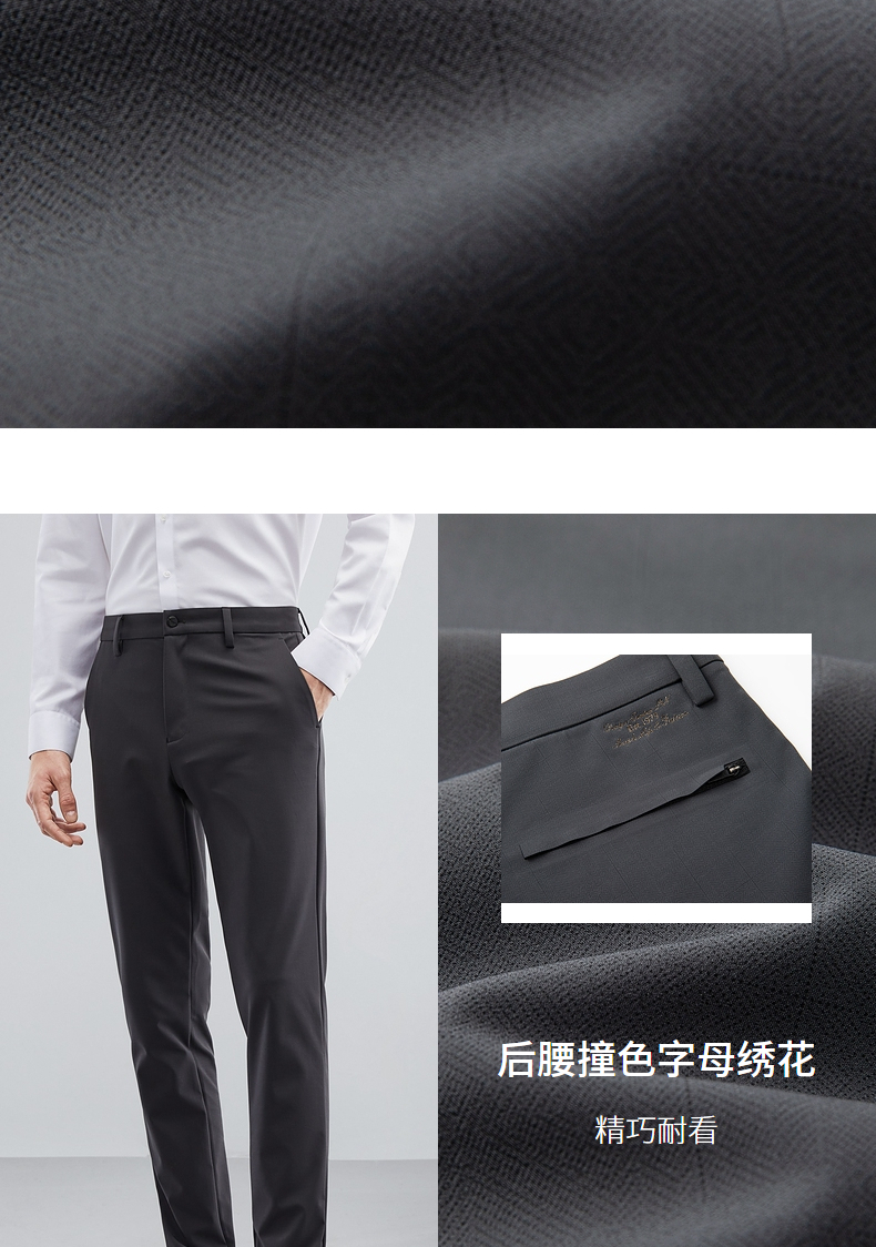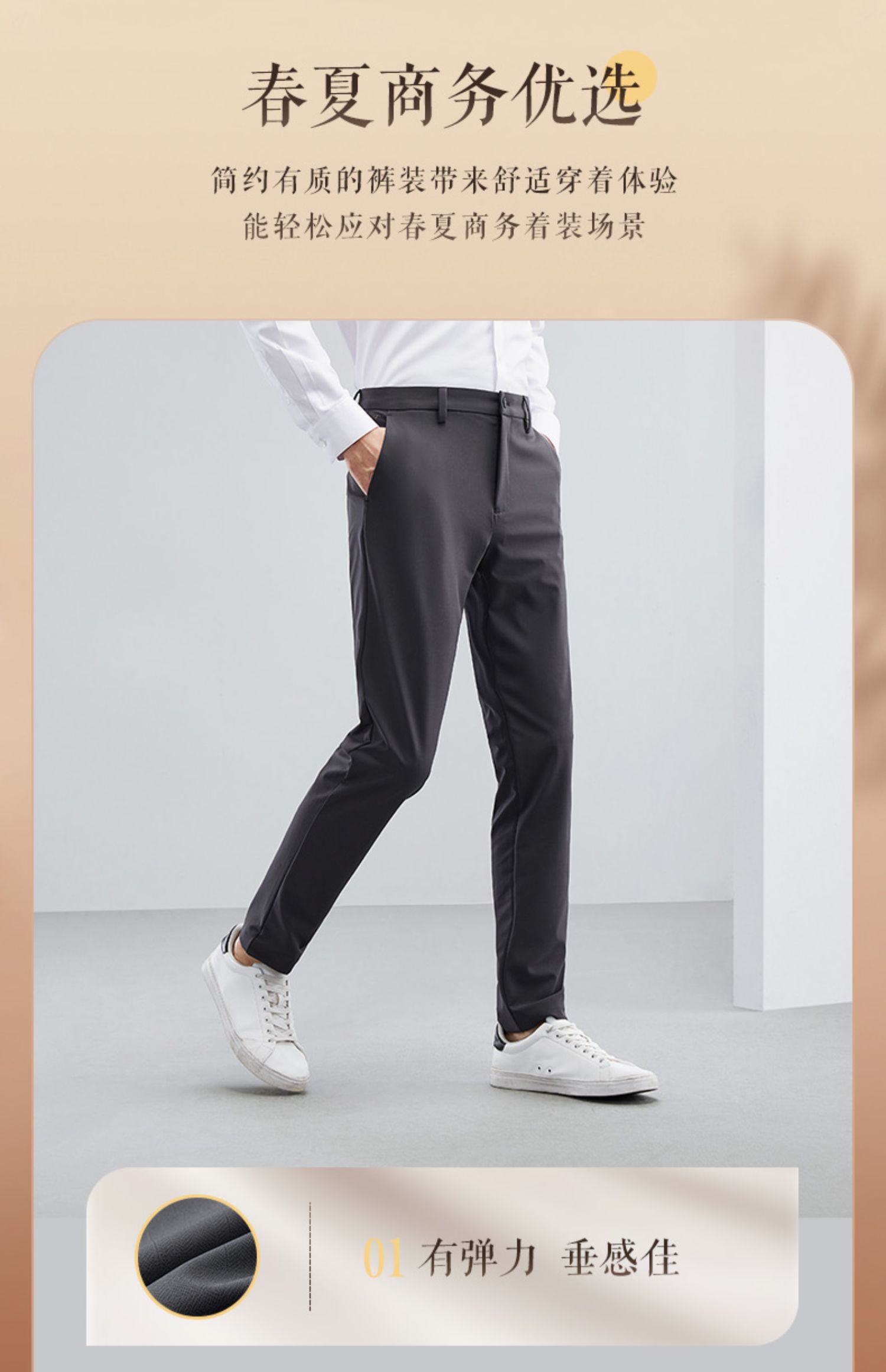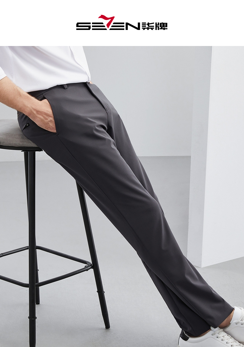 柒牌休闲裤男春夏新款合体直筒中腰时尚百搭中青年灰色长裤子 124H71790