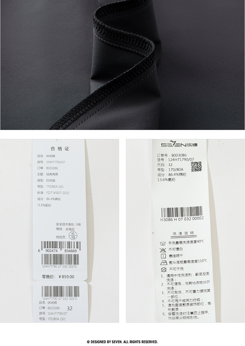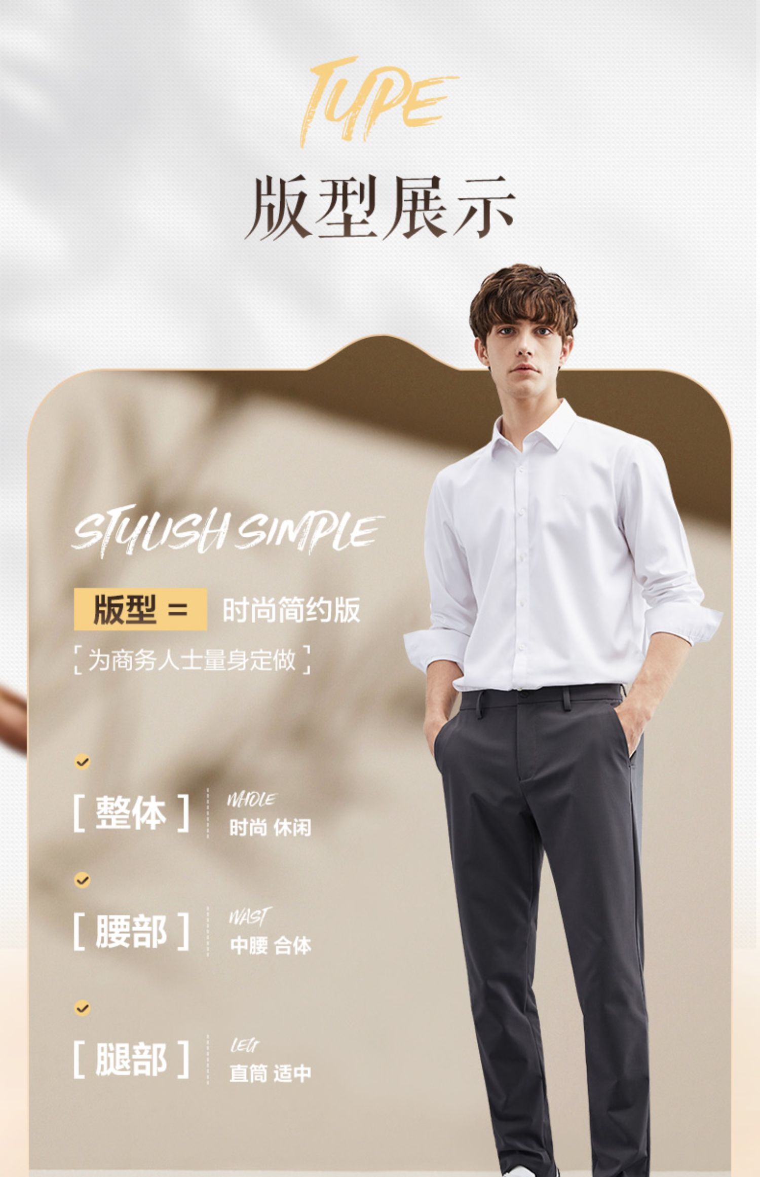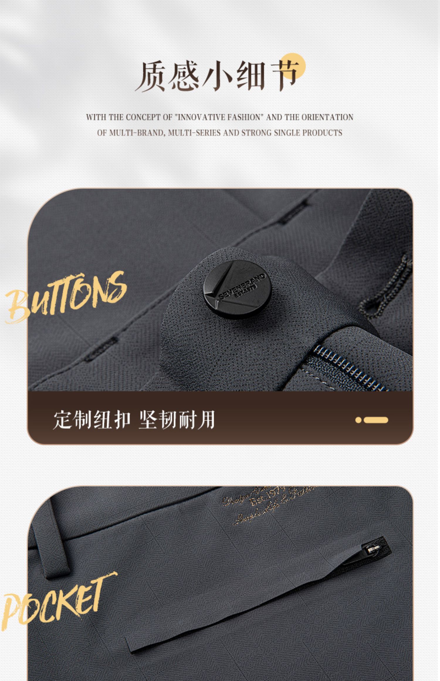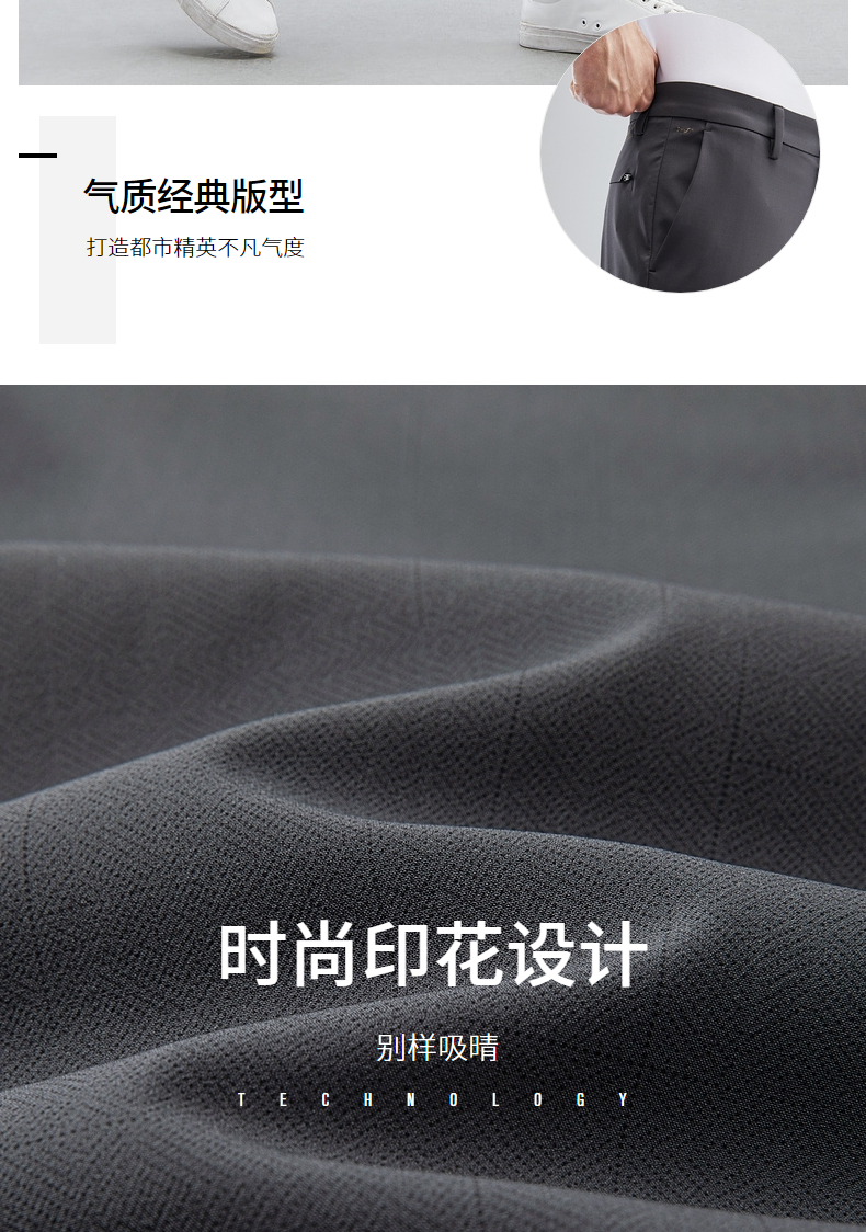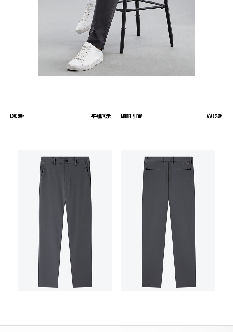 柒牌休闲裤男春夏新款合体直筒中腰时尚百搭中青年灰色长裤子 124H71790