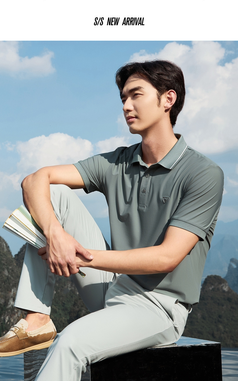 【锦氨高弹/凉感】柒牌短袖Polo衫男夏季新品舒适百搭休闲翻领T恤128T71430