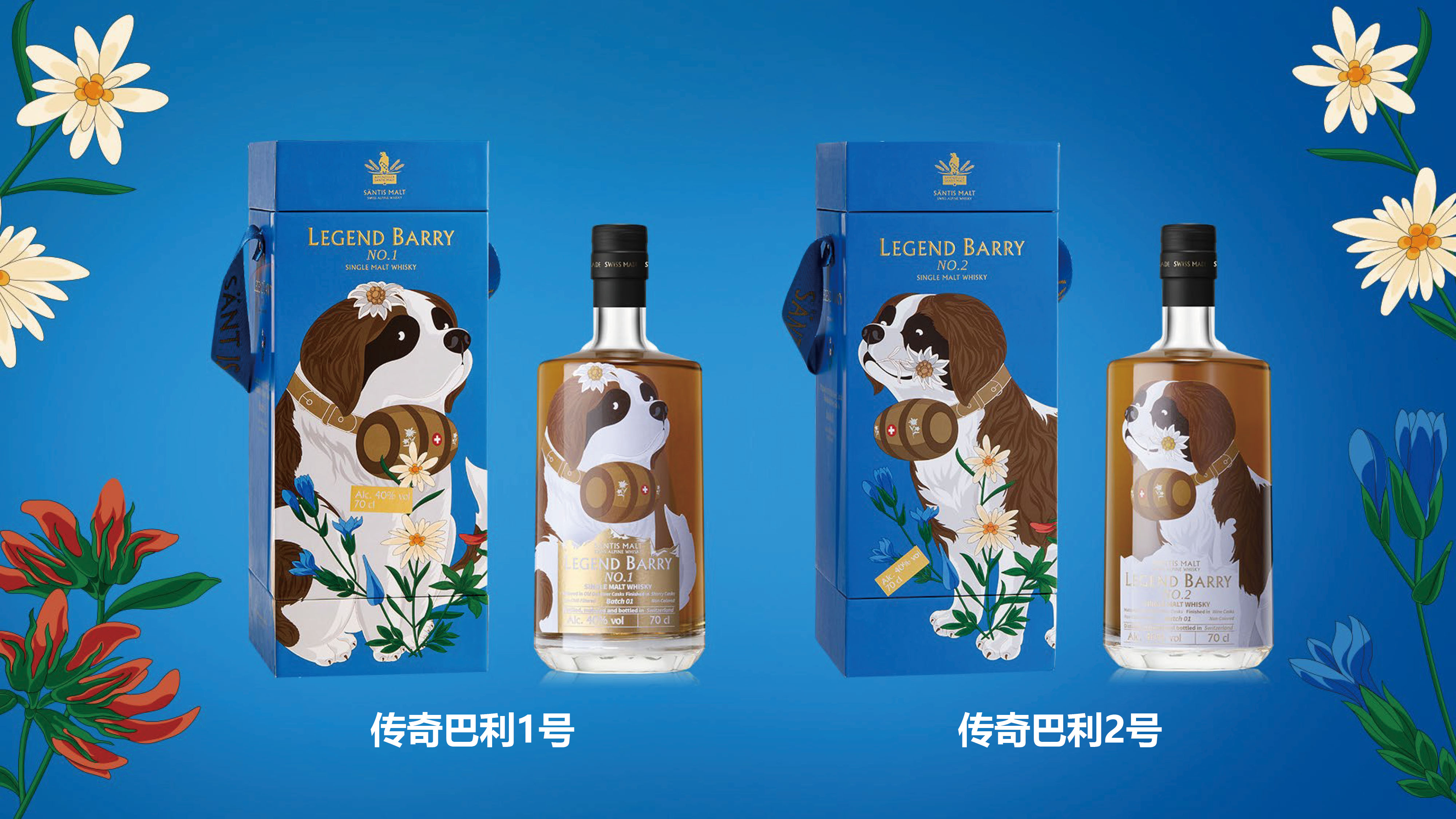 【组合】山帝仕(Santis)传奇巴里1+2号单一麦芽瑞士威士忌(赠官方评鉴杯2支+山帝仕飞盘+山帝仕啤酒)