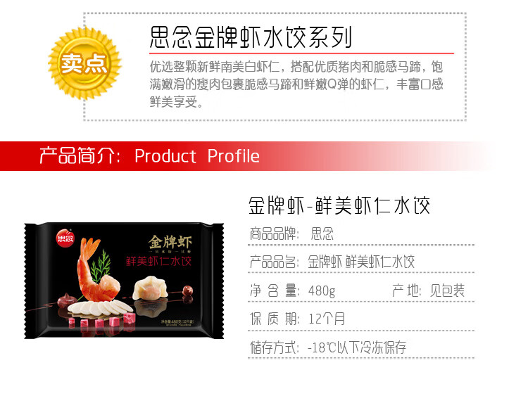 思念 金牌虾鲜美虾仁水饺 480g(32只)