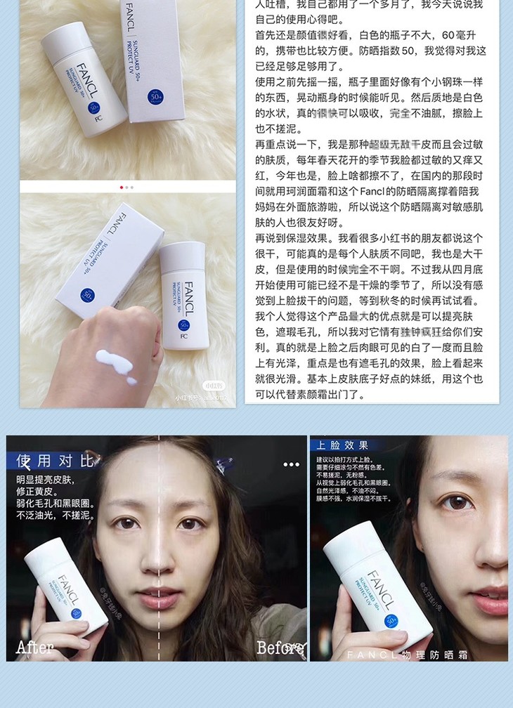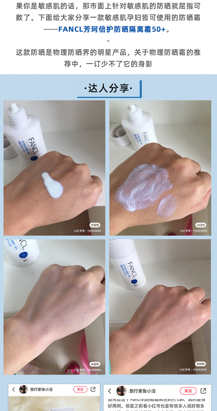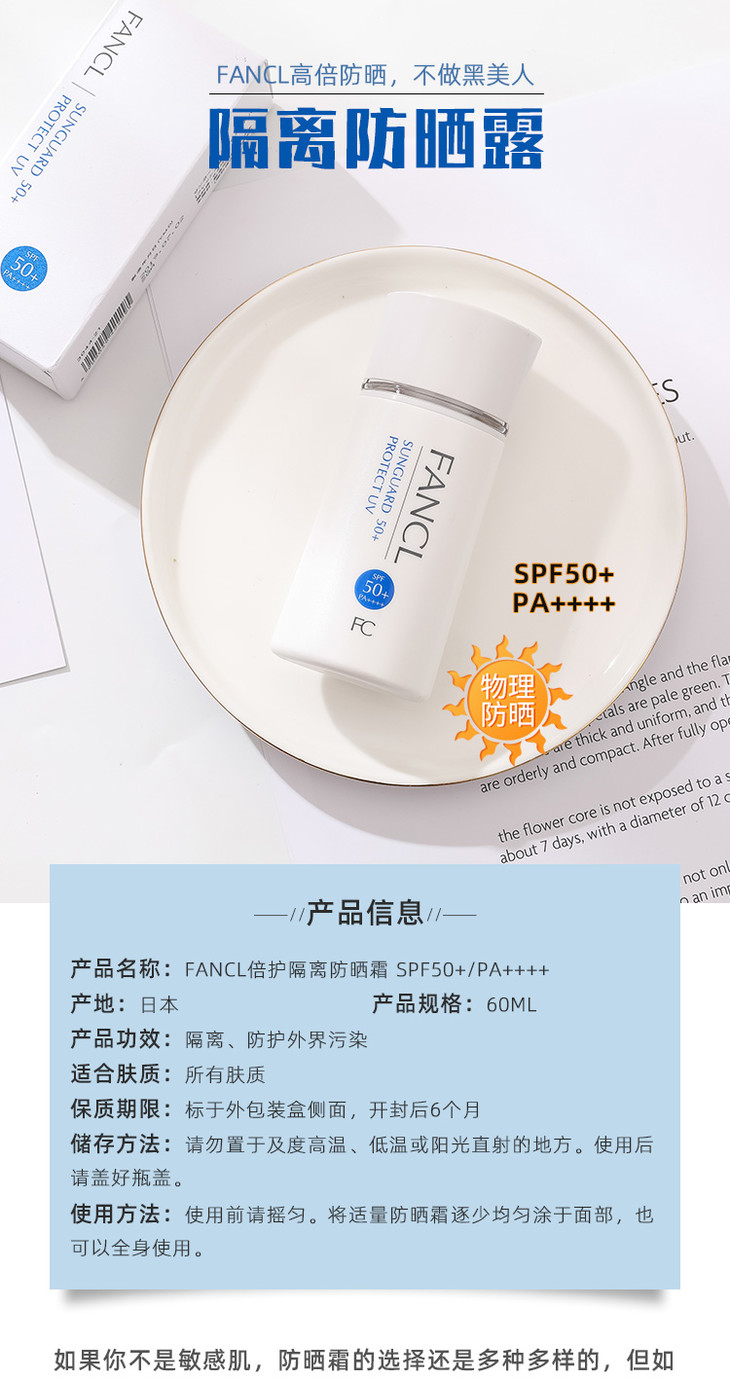 日本FANCL芳珂物理防晒霜/乳60ml孕妇儿童隔离防紫外线SPF50