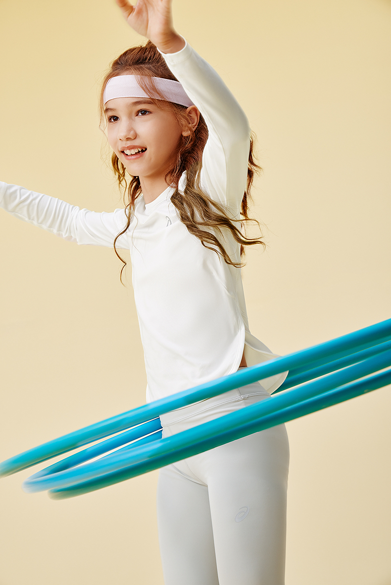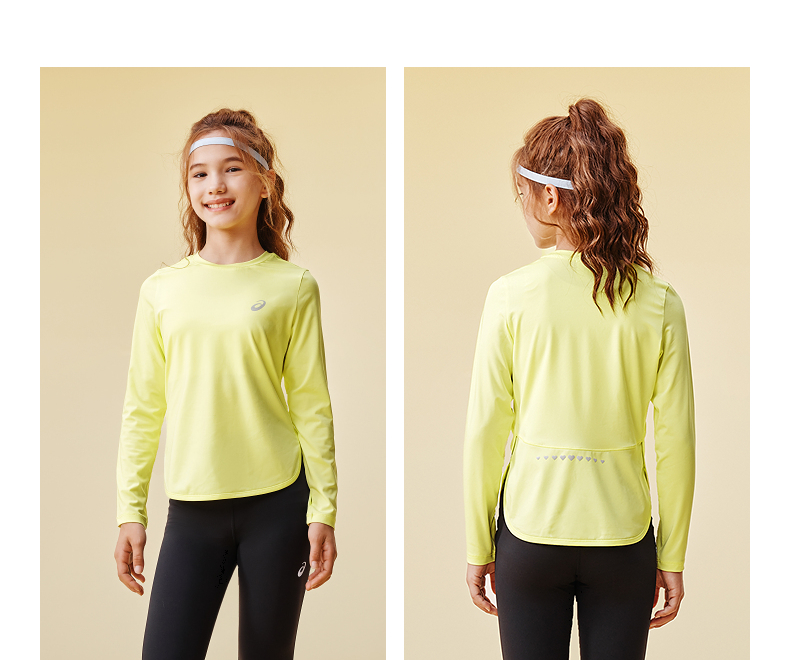 ASICS/亚瑟士童装25年秋季女童运动吸湿长袖弹力有型飓风秒干衣