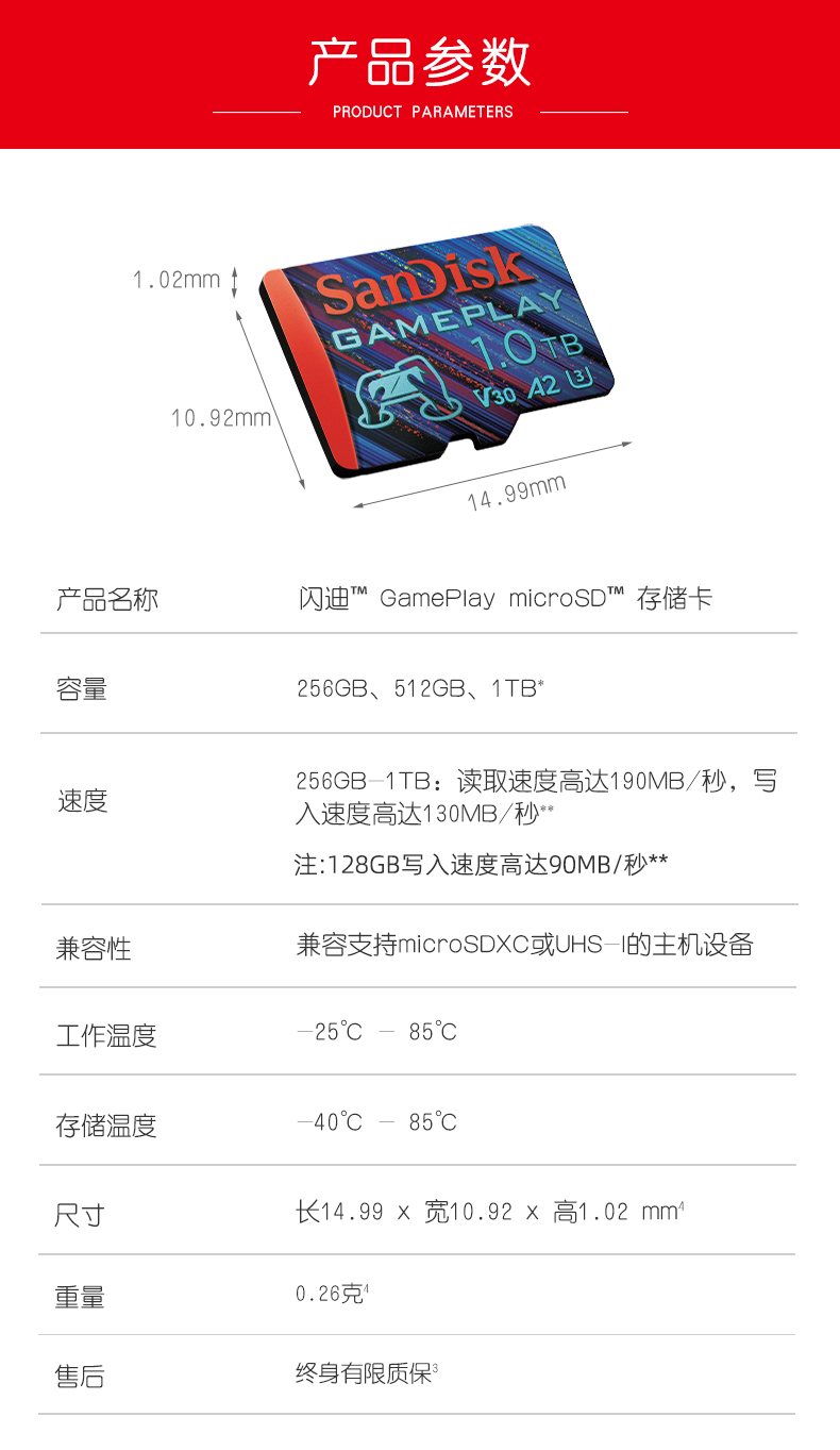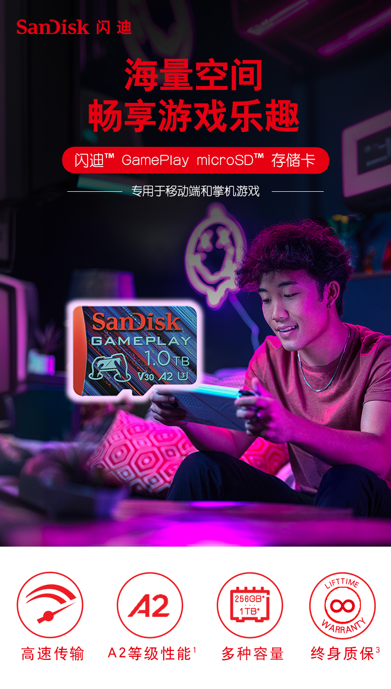 SanDisk闪迪1t内存卡micro sd卡gopro运动相机卡无人机存储卡TF卡