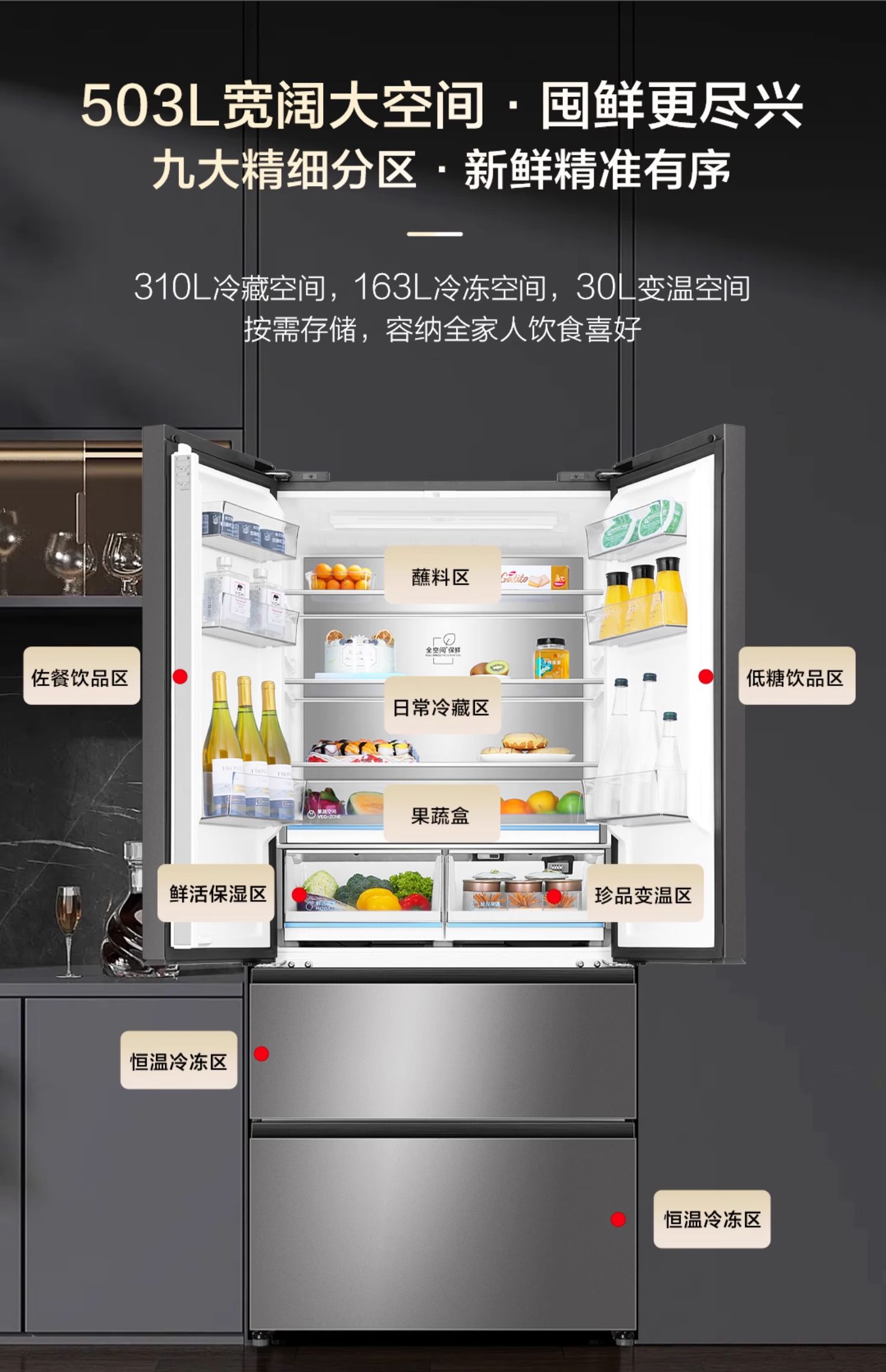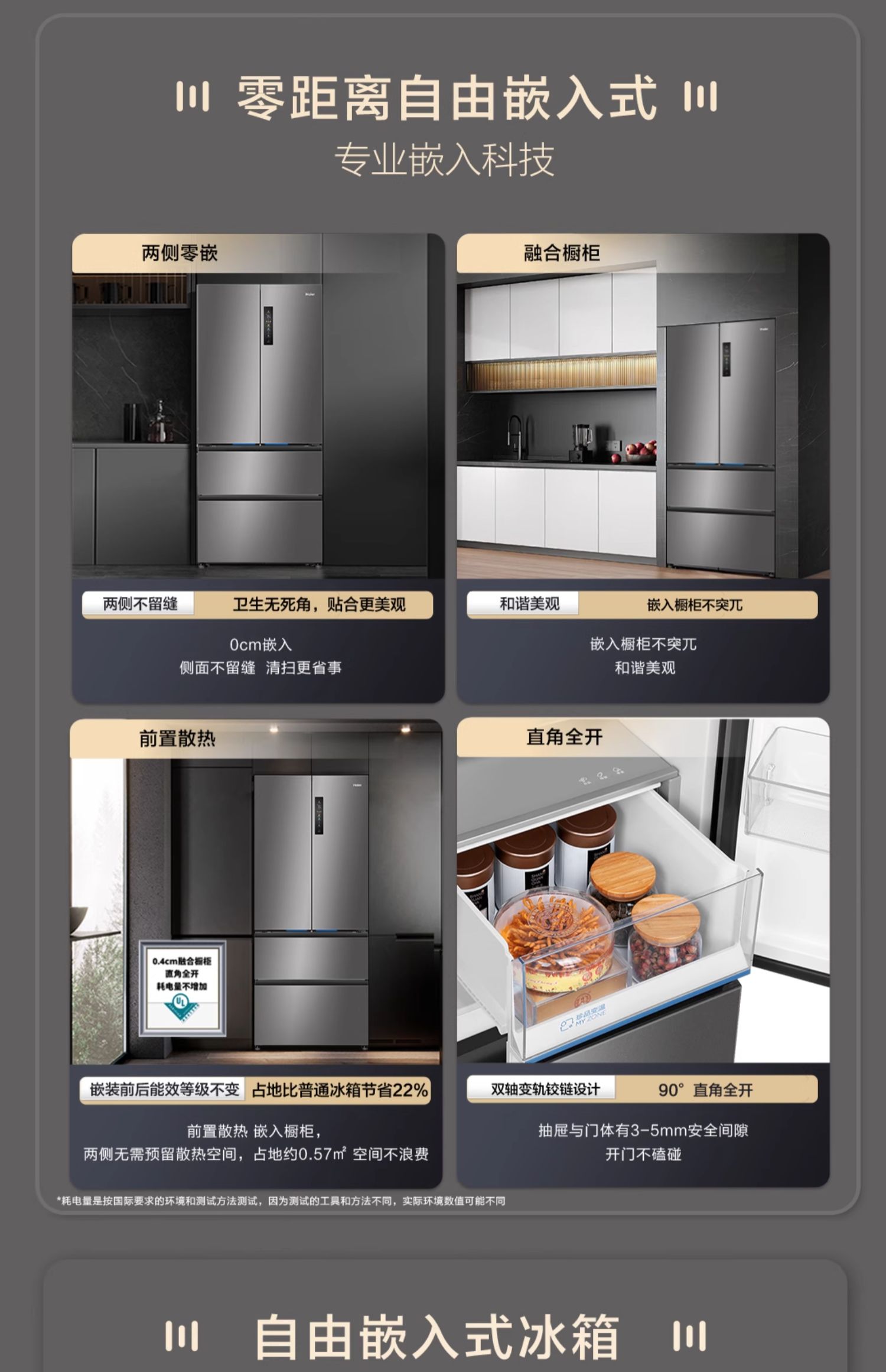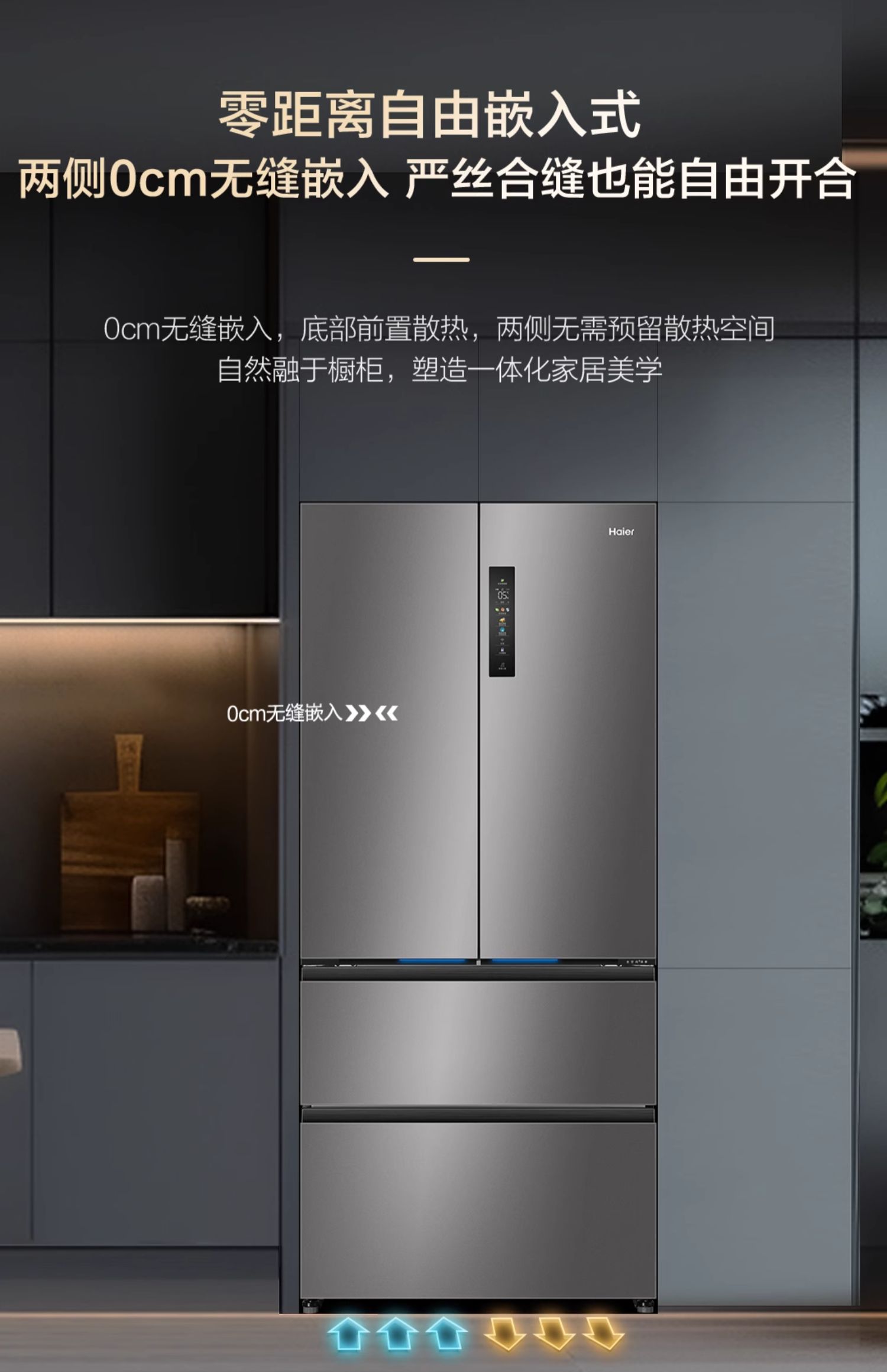 海尔小红花503L法式四门一级超薄零嵌入式家用风冷冰箱BCD-503WGHFD14GYU1灰