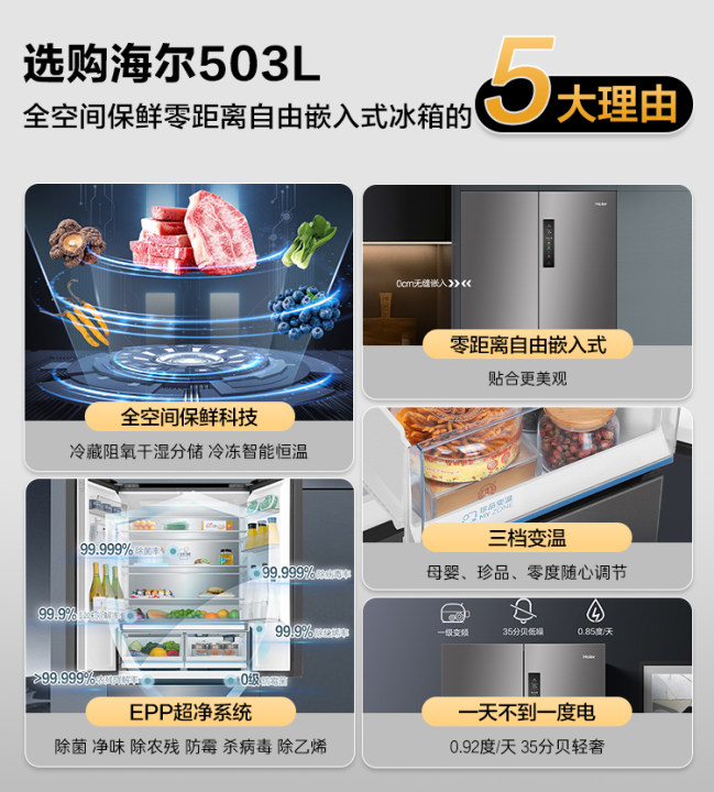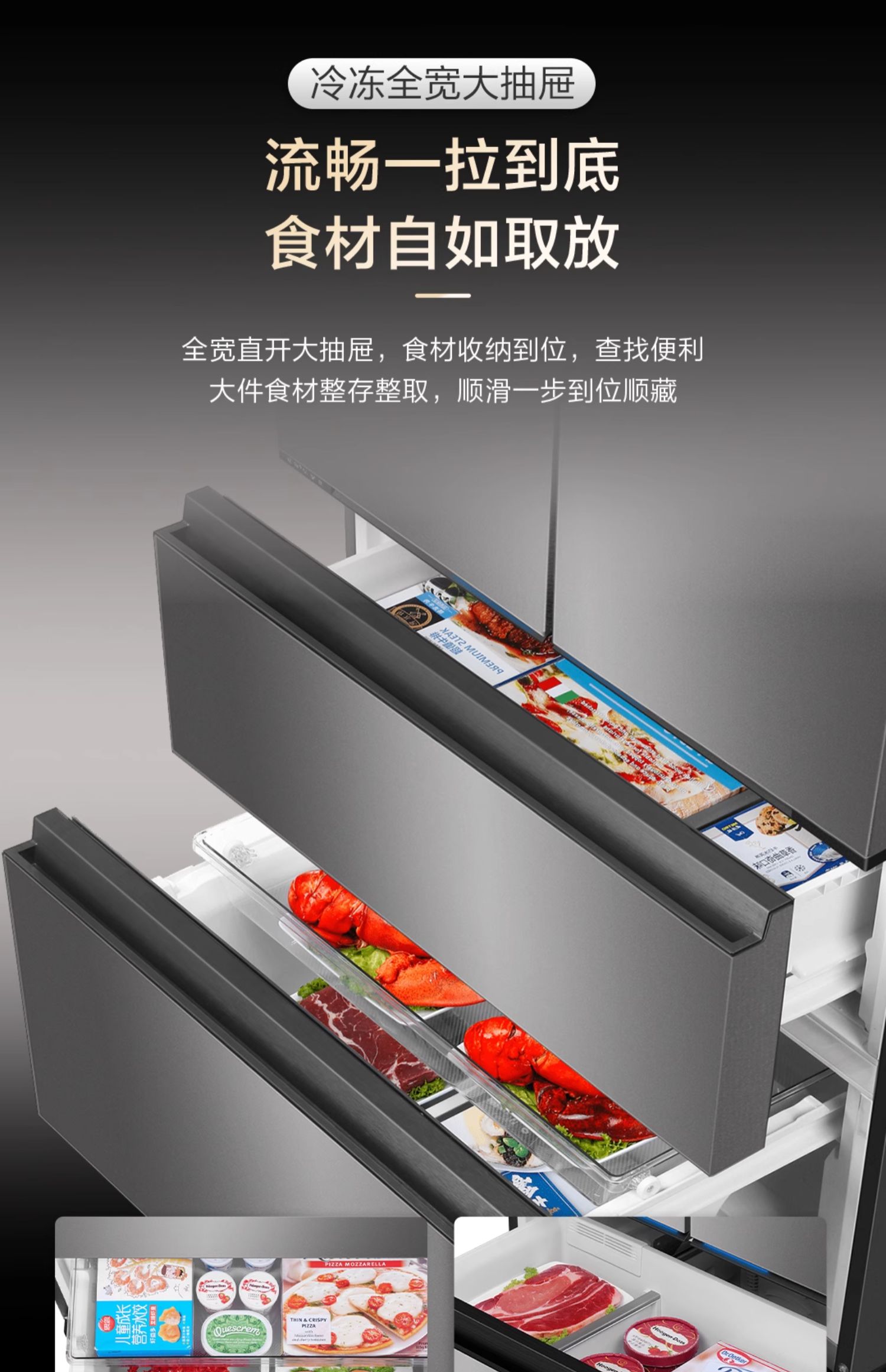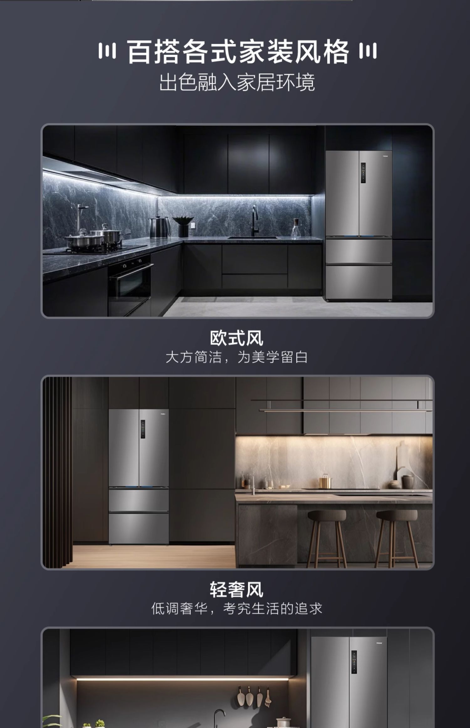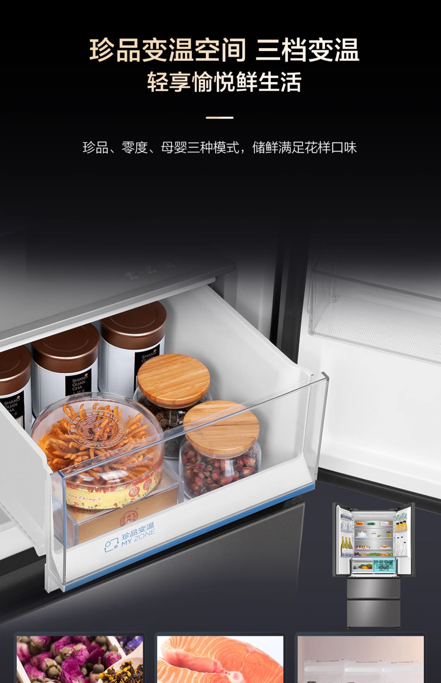 海尔小红花503L法式四门一级超薄零嵌入式家用风冷冰箱BCD-503WGHFD14GYU1灰