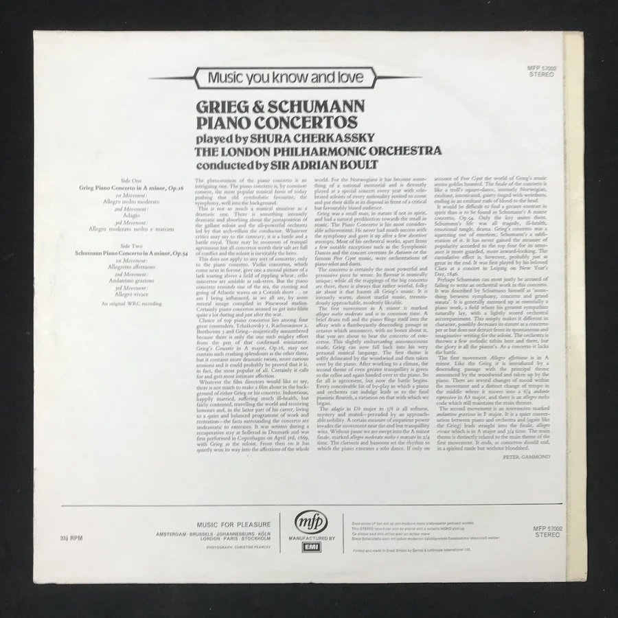 LP黑胶唱片 爱德华·格里格《A小调钢琴协奏曲Op.16》 舒曼《A小调钢琴协奏曲Op.54》 伦敦爱乐乐团 阿德里安厂牌:Music For Pleasure