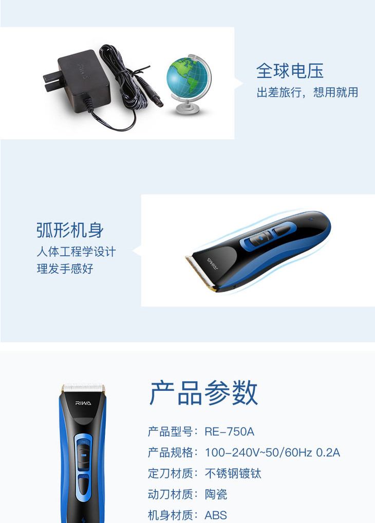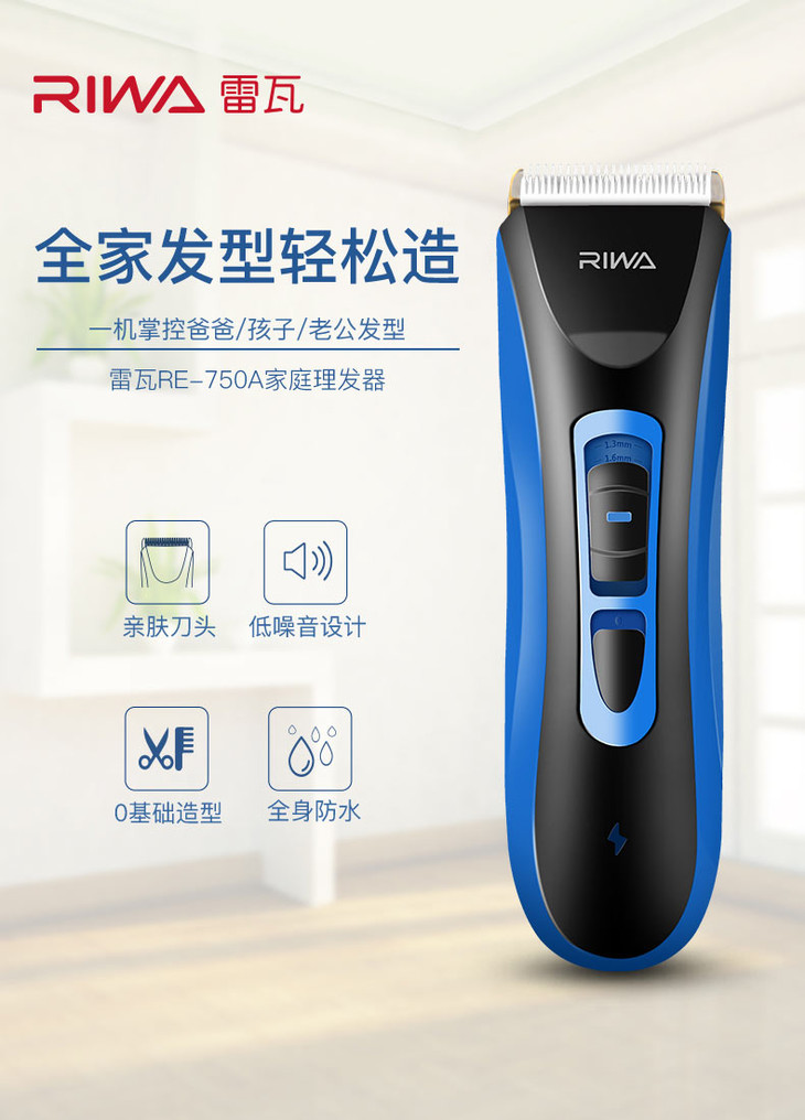 雷瓦(RIWA) 理发器电推剪 全身水洗锂电 专业电动剃头电推子 配理发剪刀RE-750A
