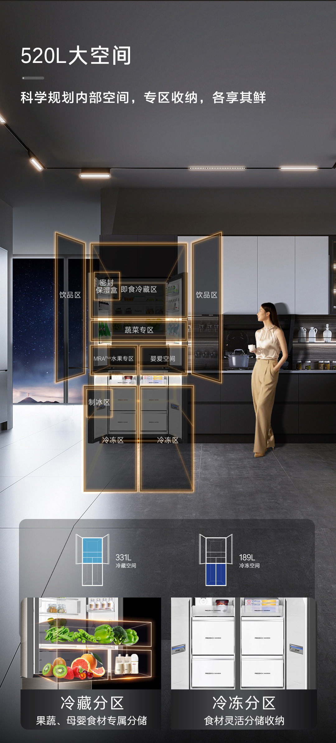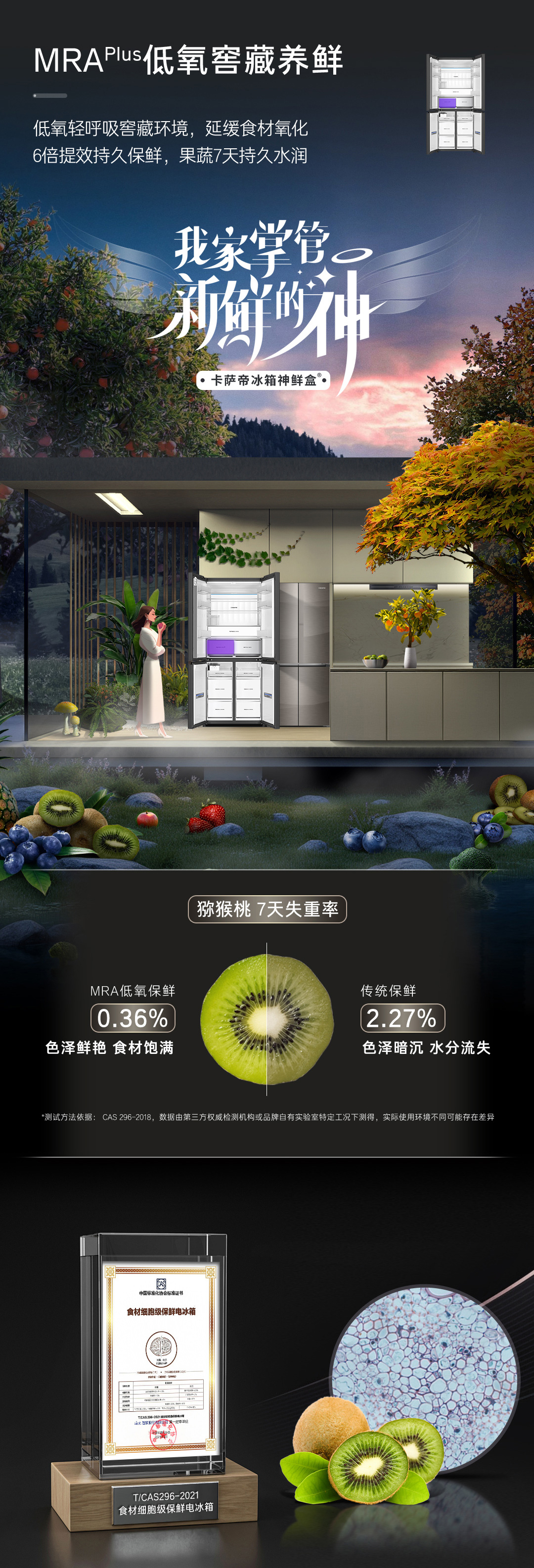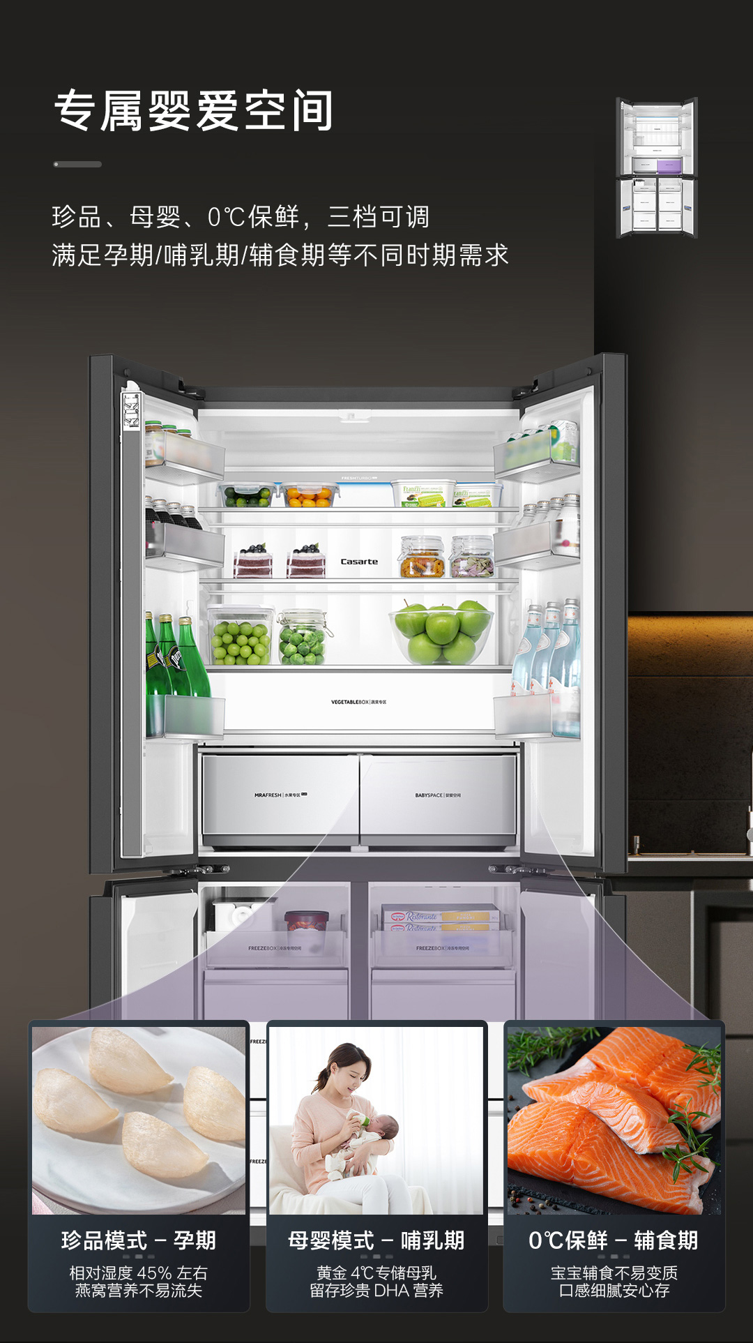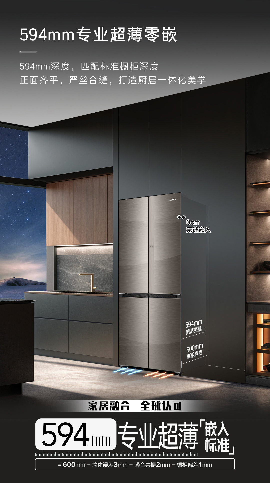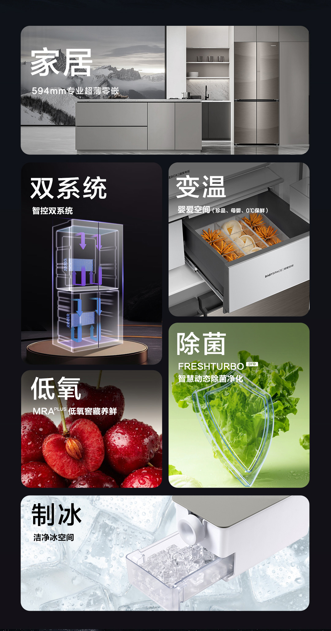 卡萨帝冰箱BCD- 520WGCTDM4CNU1(帛) 专业594mm超薄嵌入MRA Plus低氧窖藏养鲜 冷藏&冷冻双重杀菌净化双系统手动洁净冰