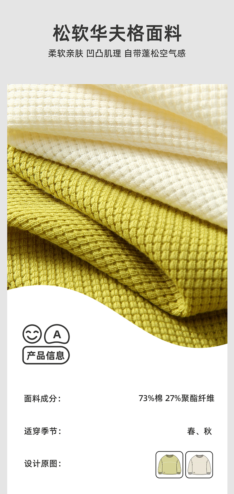【100元任选5件】【柔软亲肤 松软华夫格】休闲圆领卫衣PCWY2309