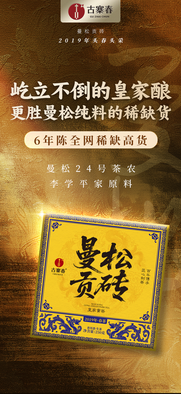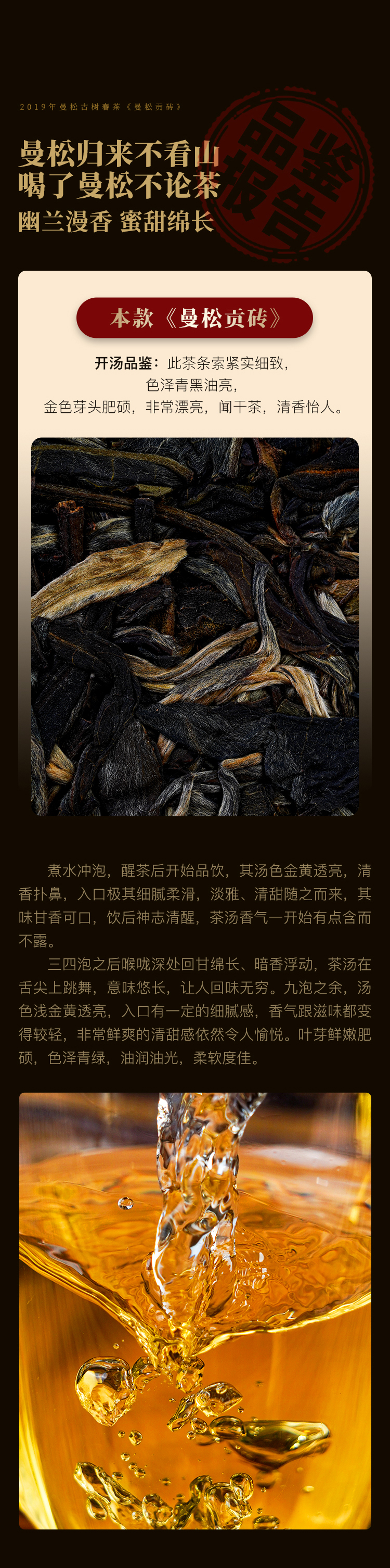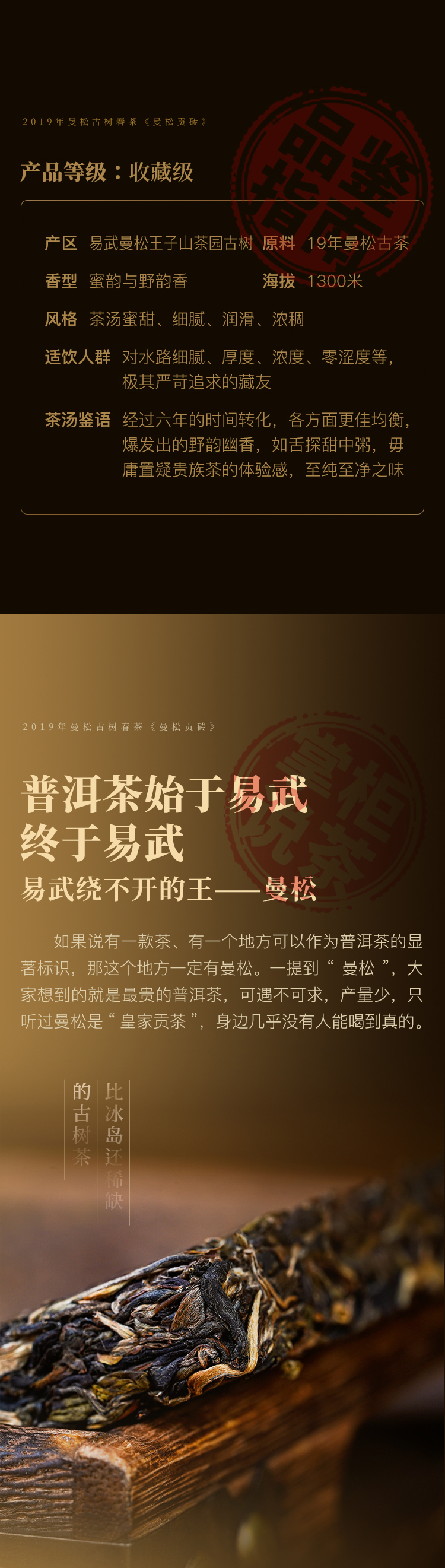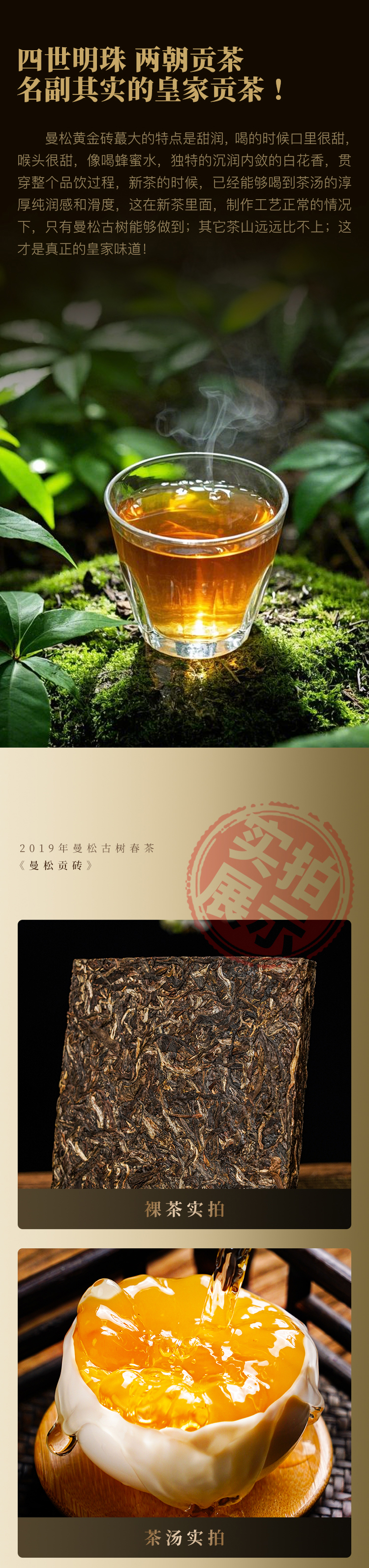 【曼松贡砖】2019年头春头采易武茶区曼松王子山古树,全网稀缺高货,250克/砖,拍5发7。只有70砖左右