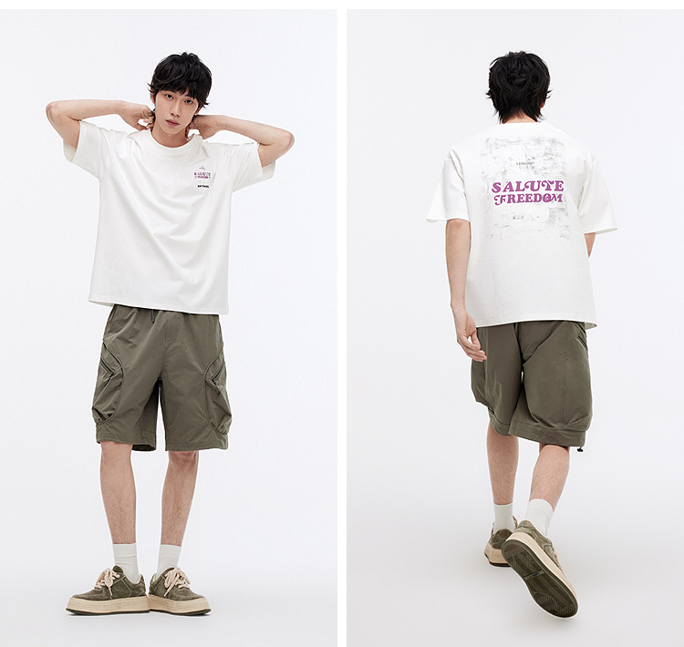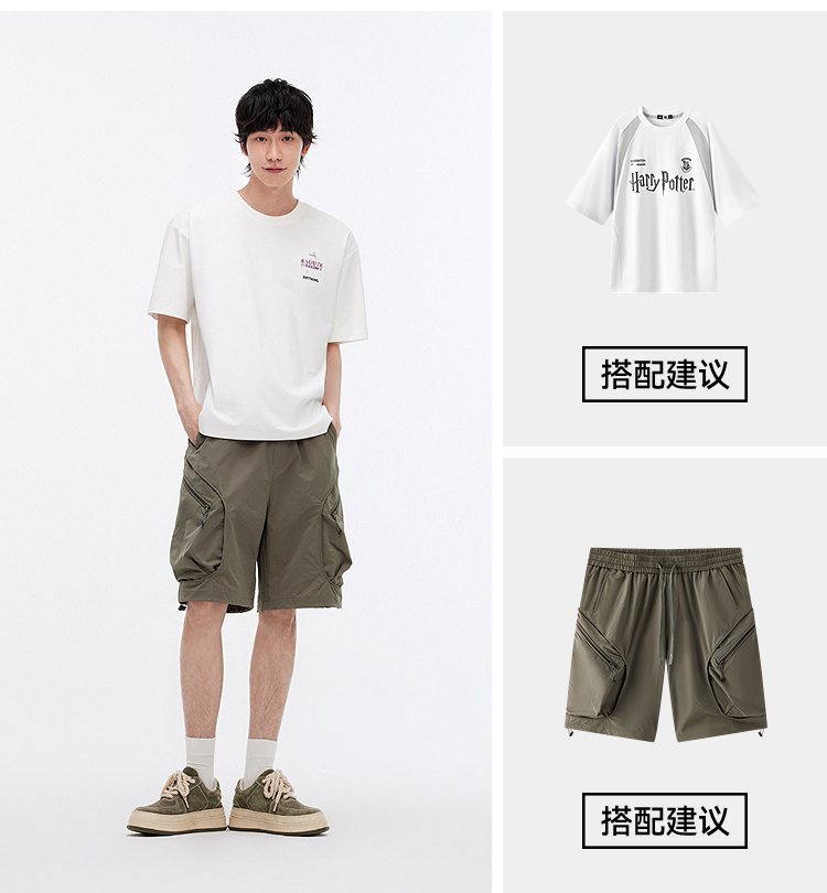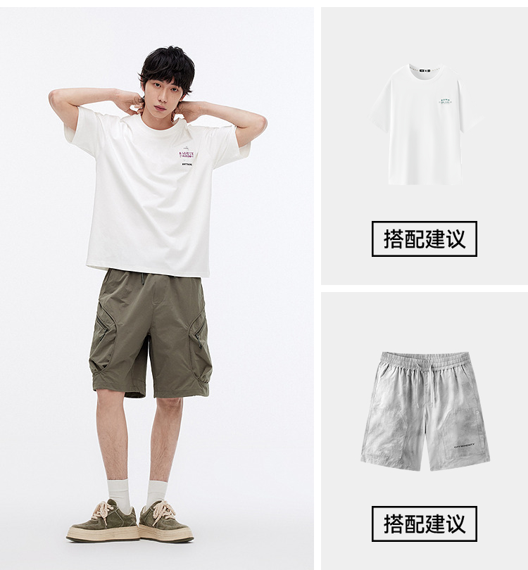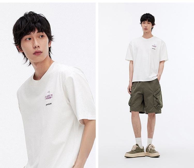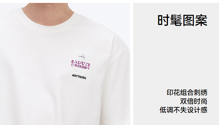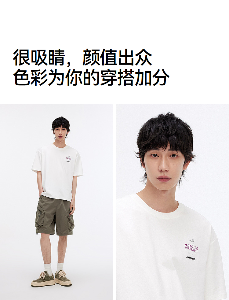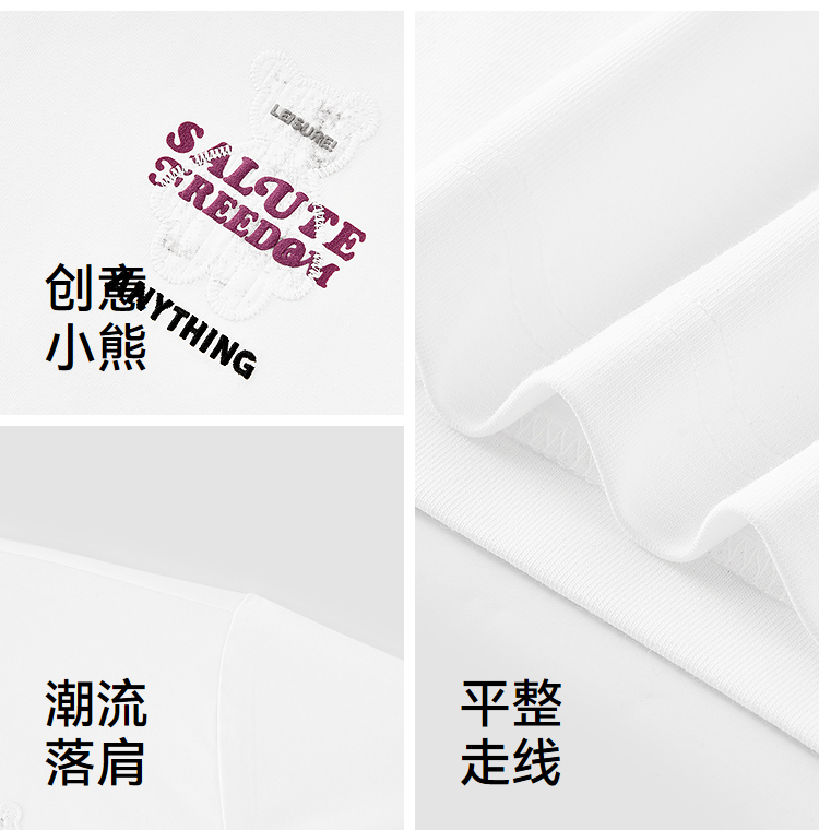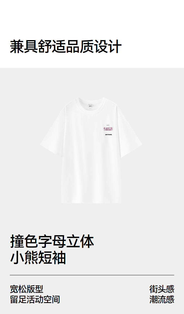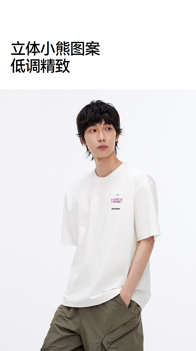 森马短袖T恤男夏季街头创意小熊针织衫字母撞色绣花流行宽松上衣
