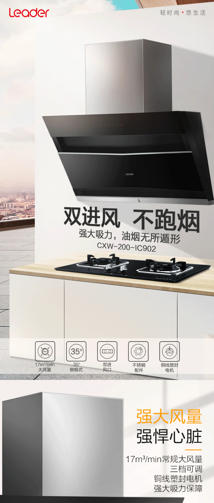 cdfh0031pfj 海尔Leader双进风 不跑烟 触屏控制 三分钟延时关机 CXW-200-IC902
