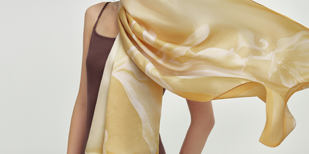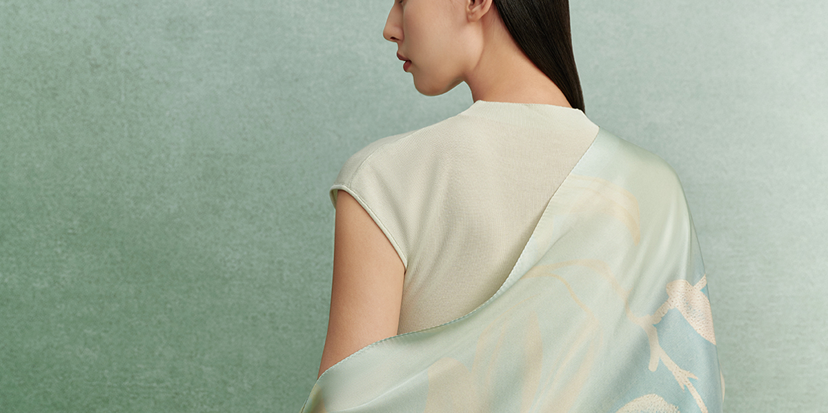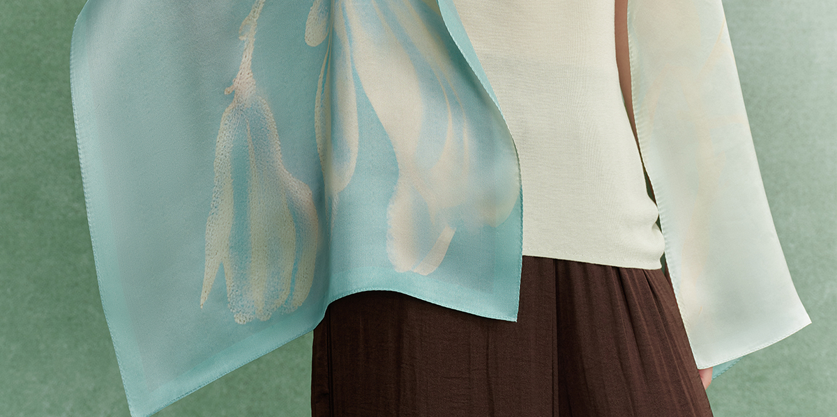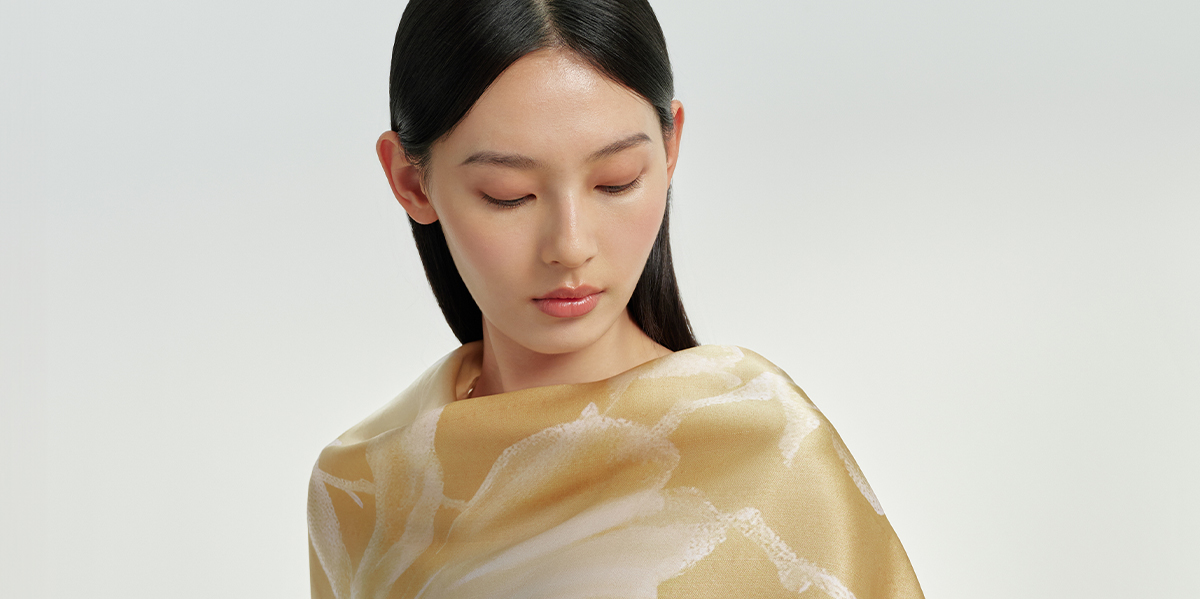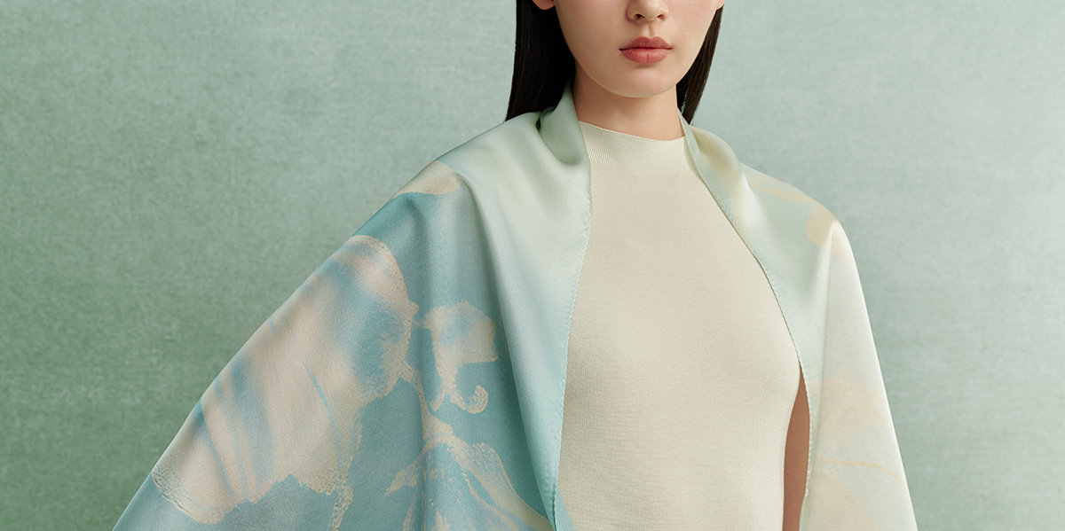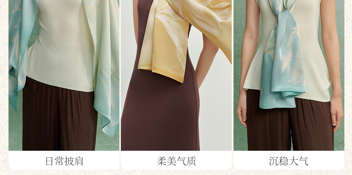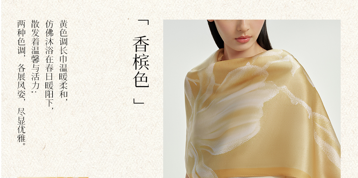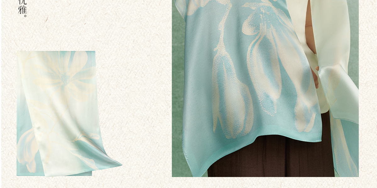 万事利×故宫文化联名款十二花神系列真丝长巾-春风染