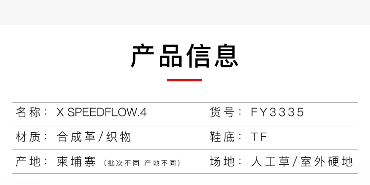 ADIDAS/阿迪达斯 X SPEEDFLOW.4入门级TF碎钉足球鞋FY3335