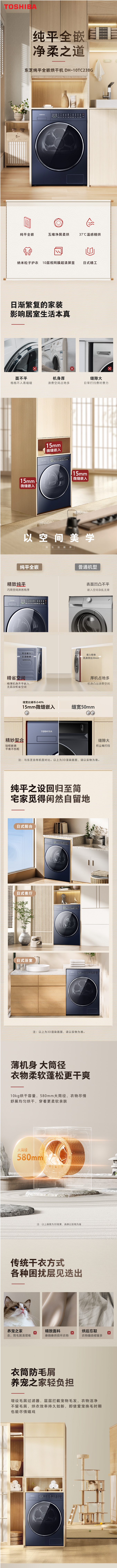 东芝(252122)纯平全嵌10公斤干衣机五维净屑柔烘 精细烘干 37℃温感精烘更护衣DH-10TC23BG