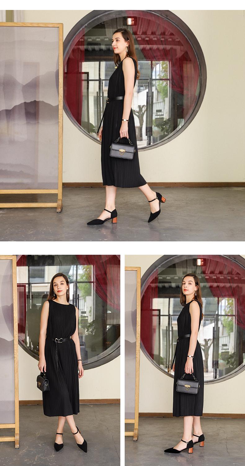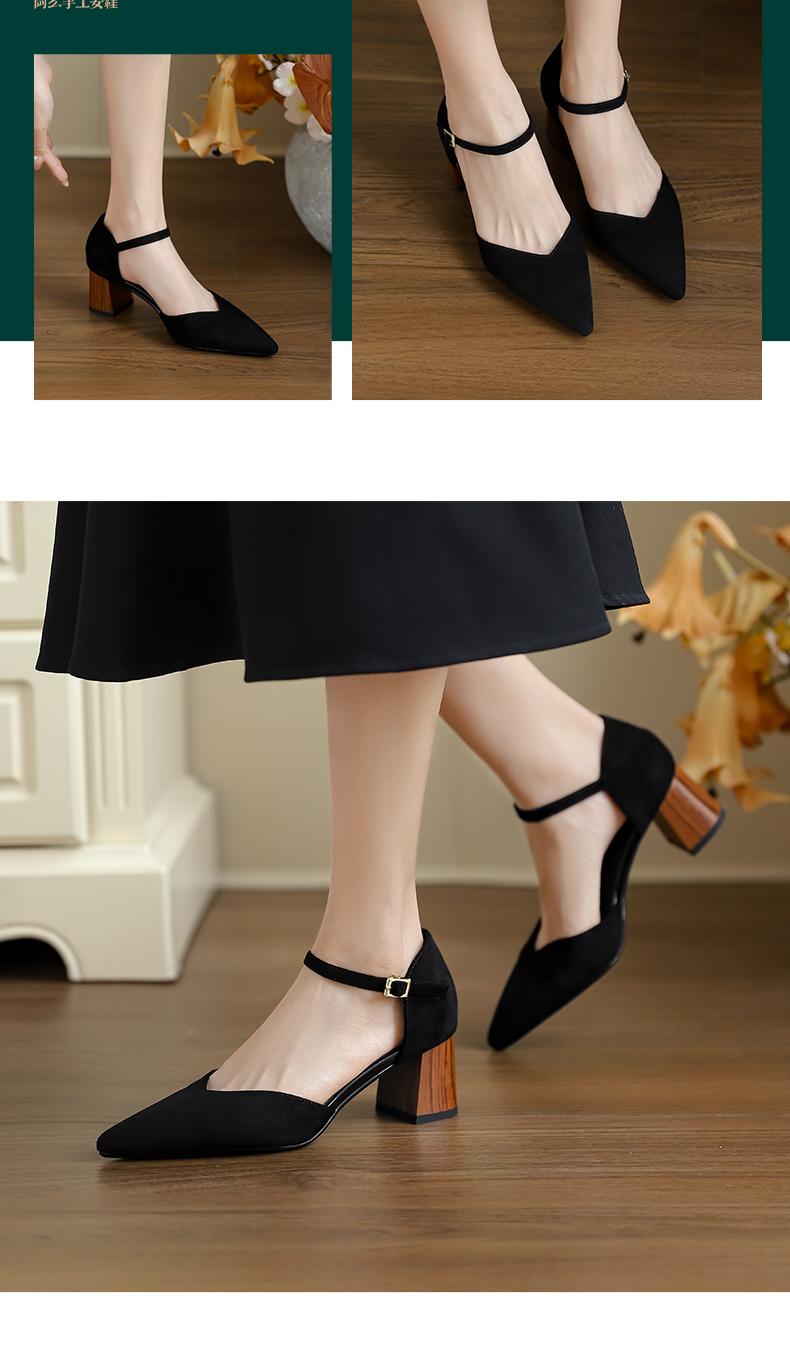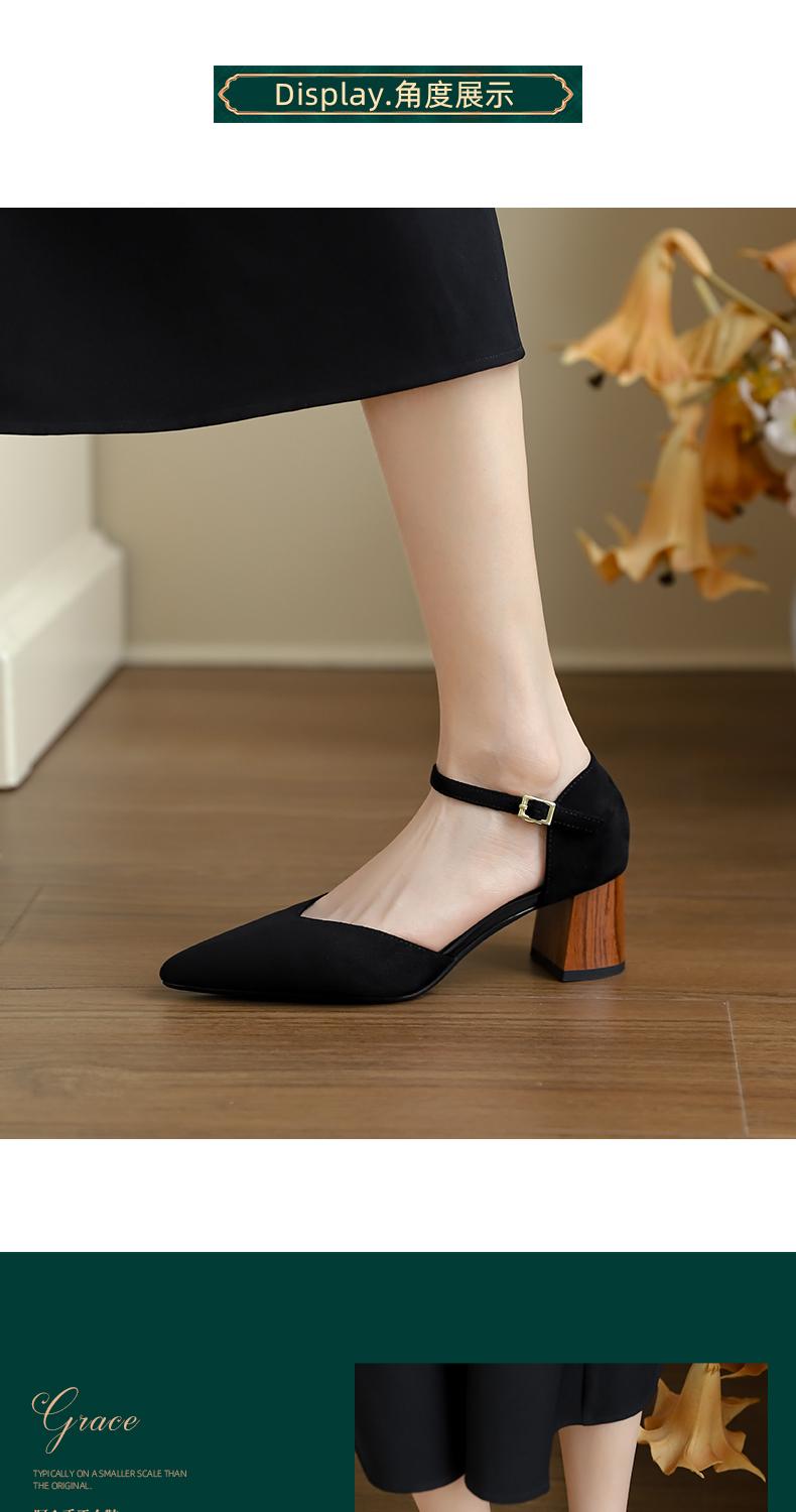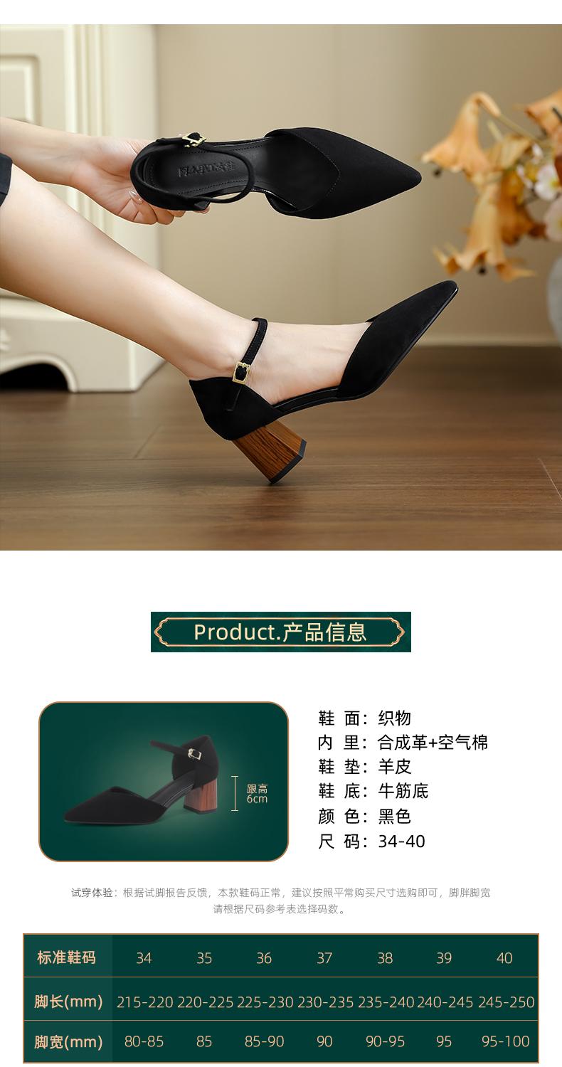 阿么手工女鞋2025新款气质黑色一字带包头凉鞋外穿复古木纹跟6CM