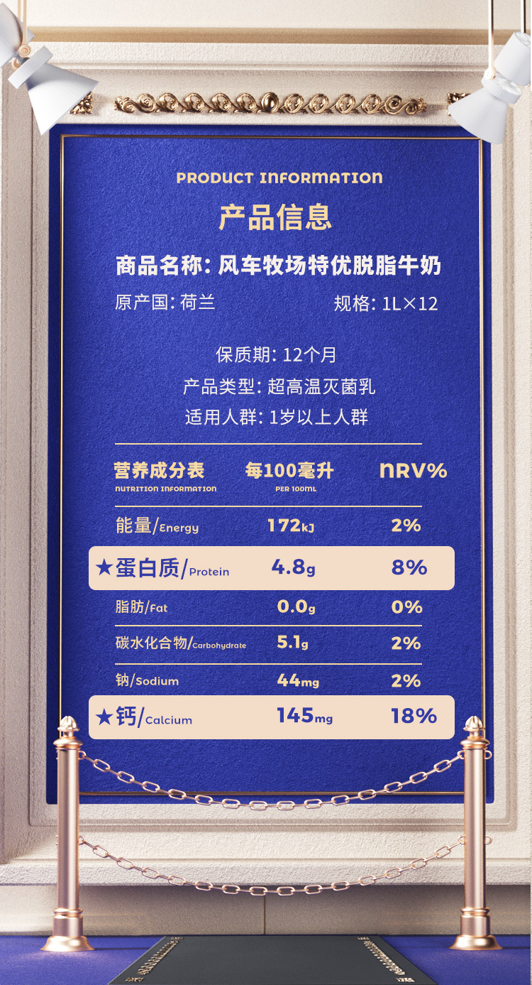 风车牧场 4.5g高钙 草饲娟姗特优纯牛奶 全脂荷兰原装进口