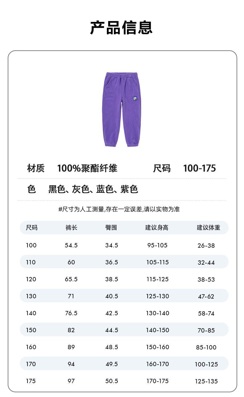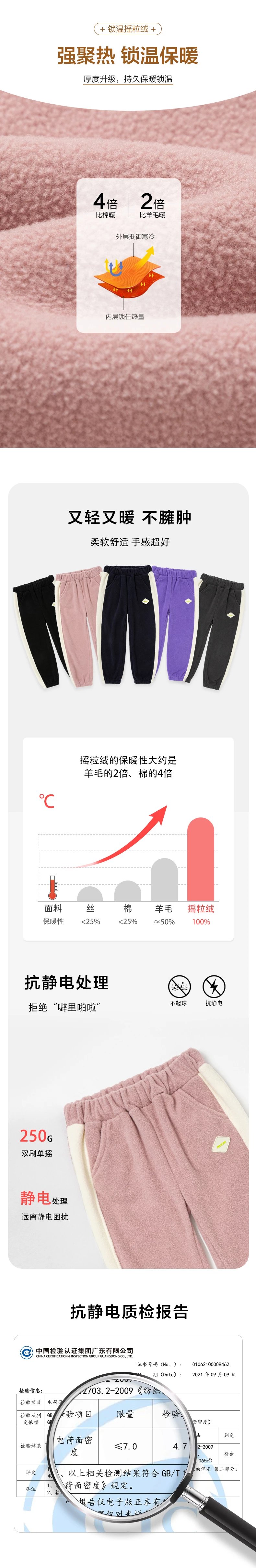 产品五:儿童罗纹束口摇粒绒休闲裤