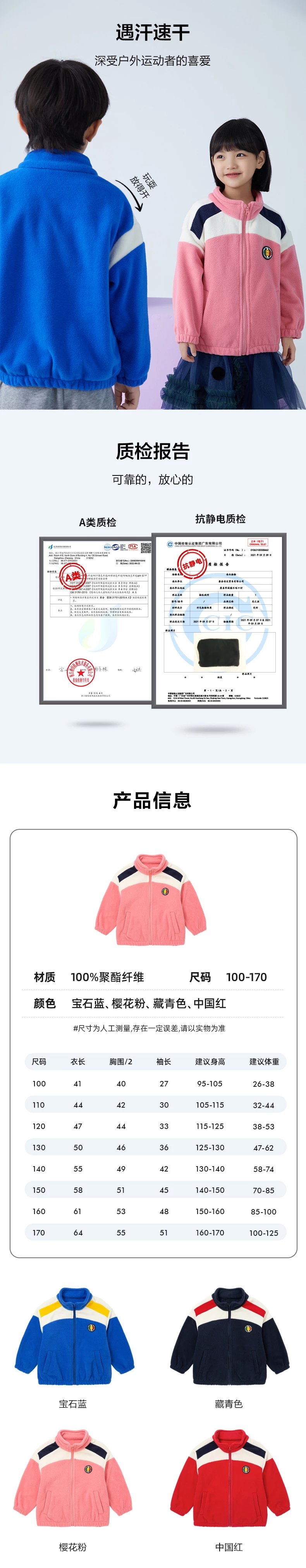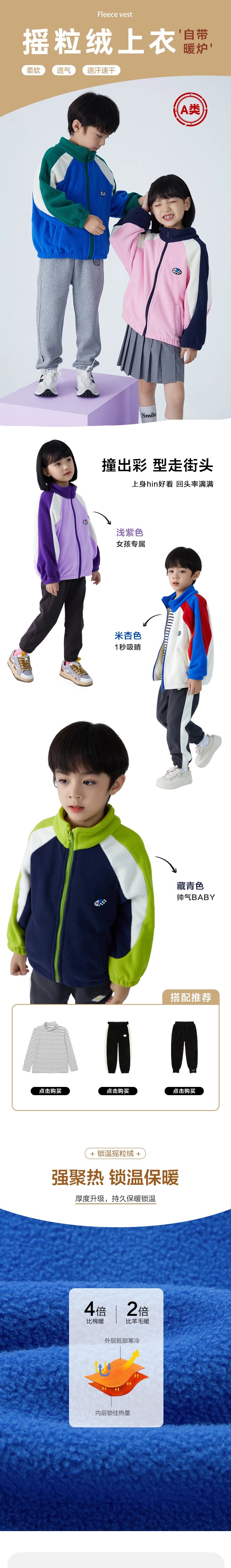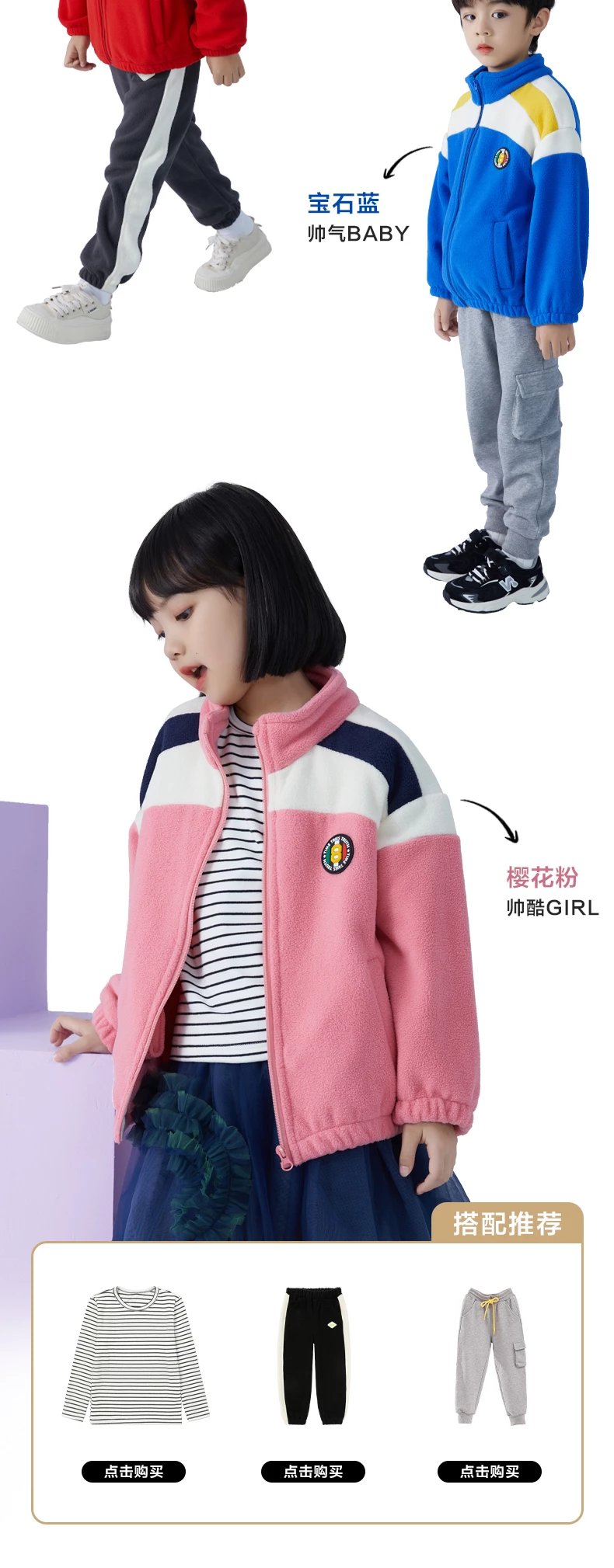 产品三:亲子款少年色彩摇粒绒彩肩款上衣