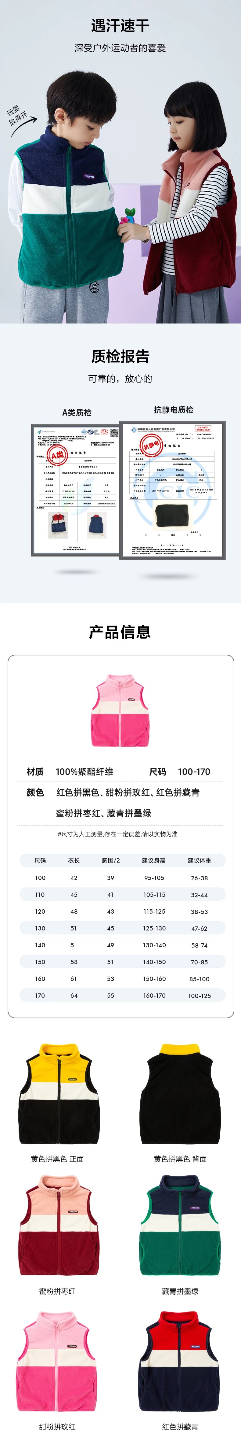 产品一:亲子款少年色彩摇粒绒马甲