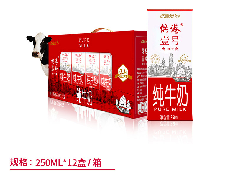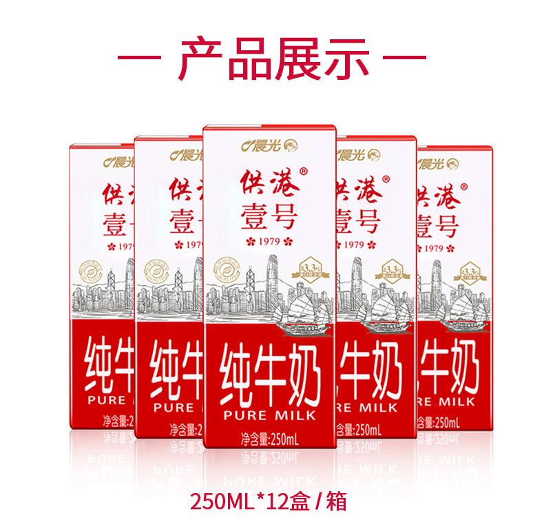 晨光牛奶 供港壹号纯牛奶250ml*12盒 整箱礼盒装 营养常温奶